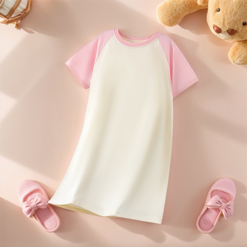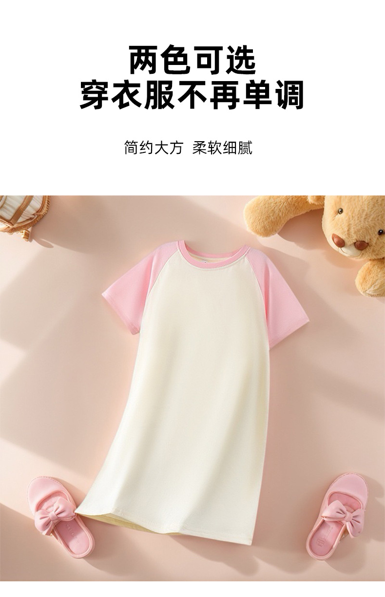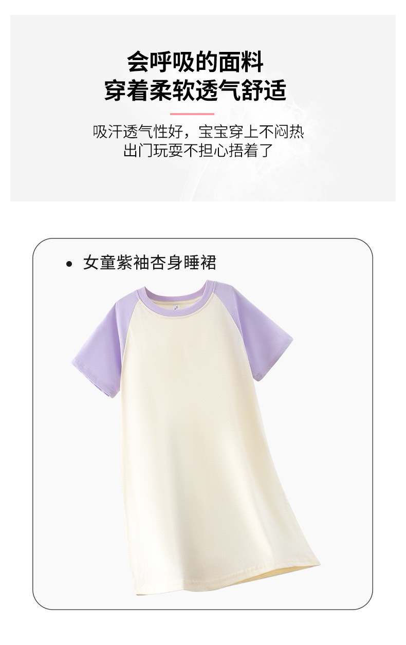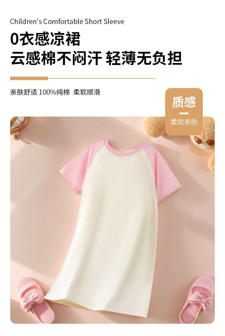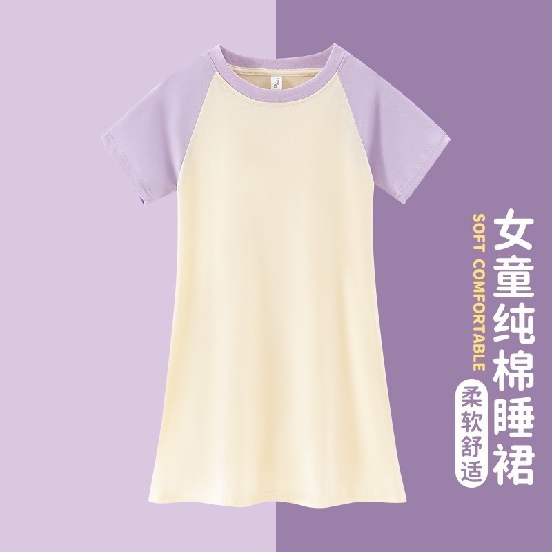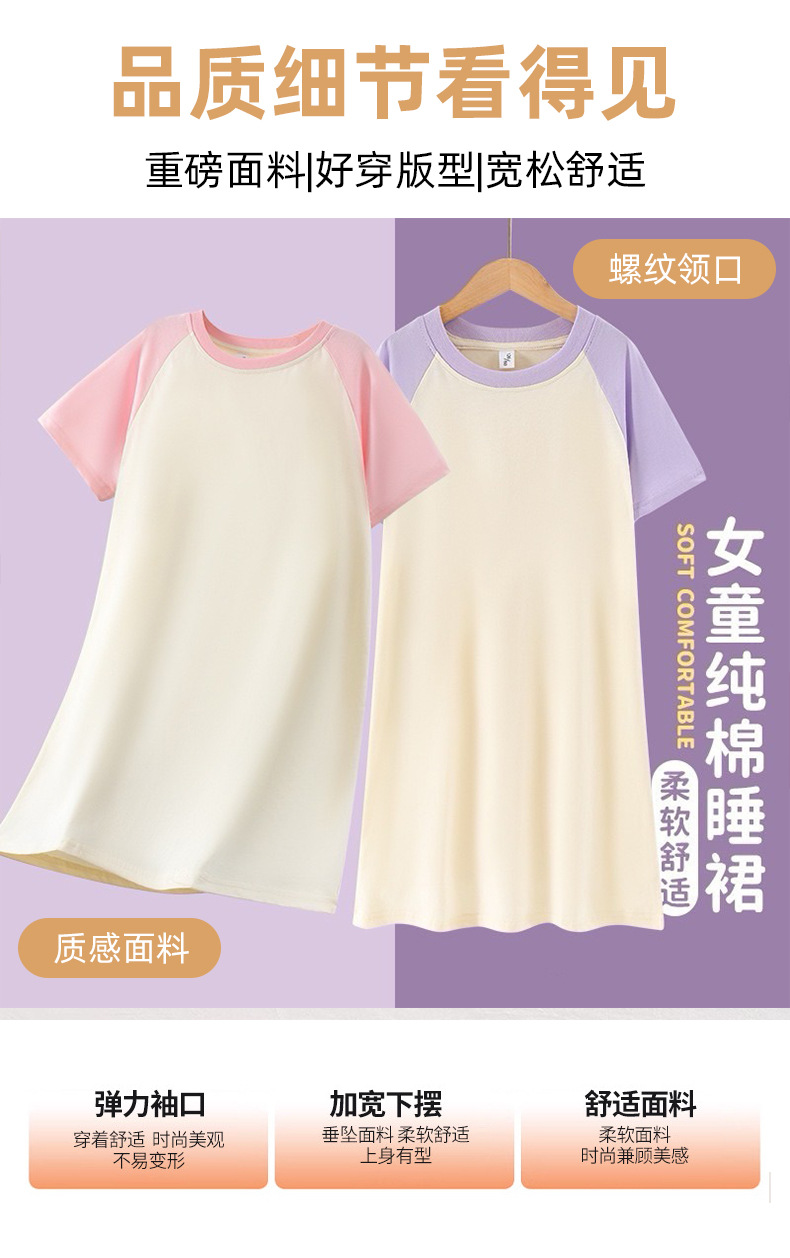 2025 새로운 홈웨어 소녀 잠옷 순수 코튼 여름 어린이 잠옷 드레스 라글란 슬리브 어린 소녀 큰 어린이 여름스토어 가기