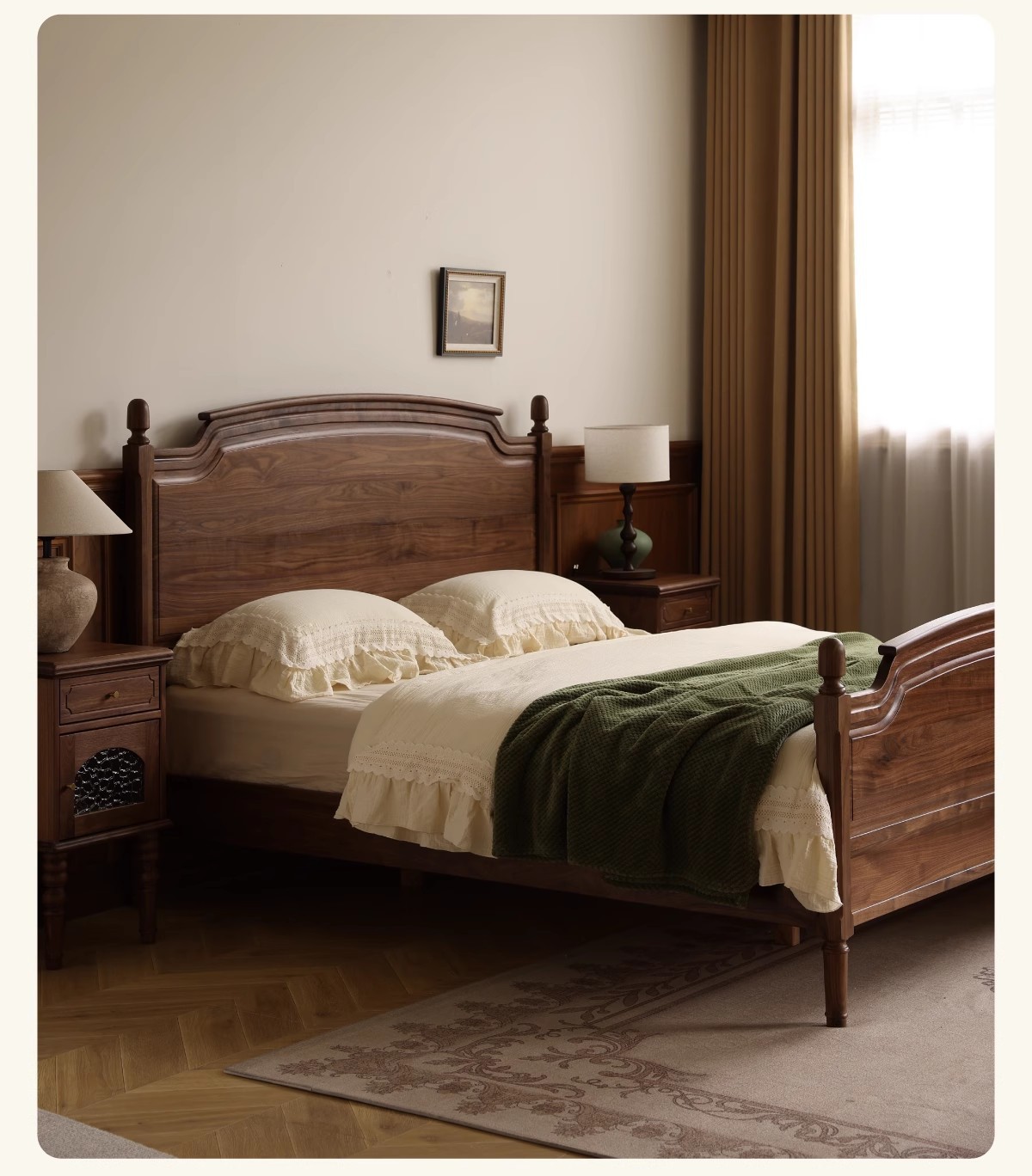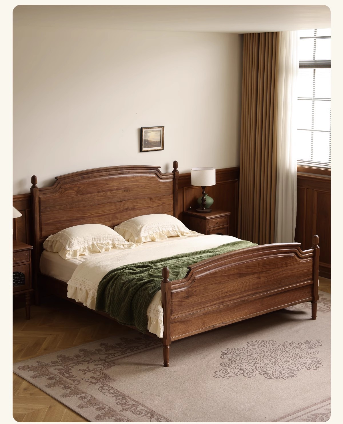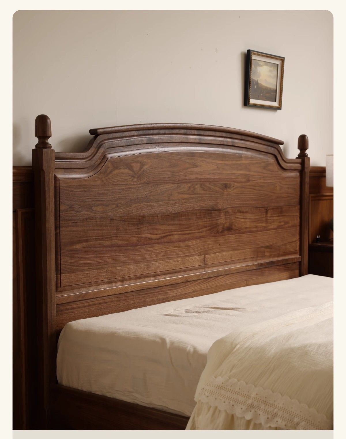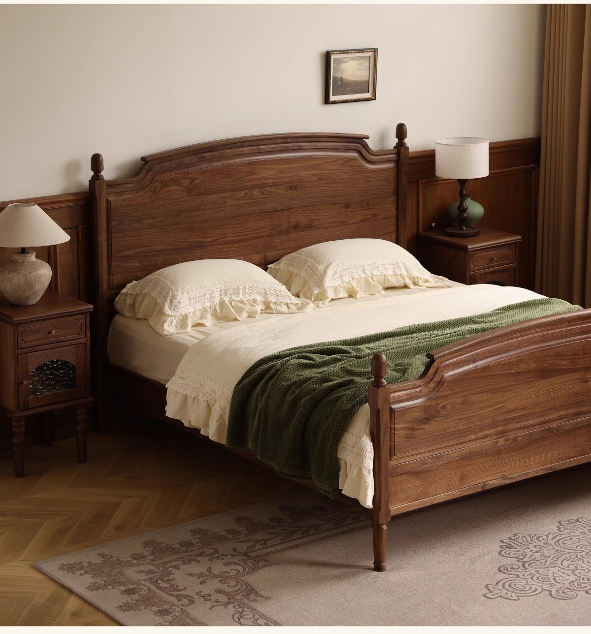 블랙 호두 미국 단단한 나무 침대 프랑스 복고풍 1.8m 더블 침대 가구 가정용 작은 아파트 1.5m 싱글 침대
