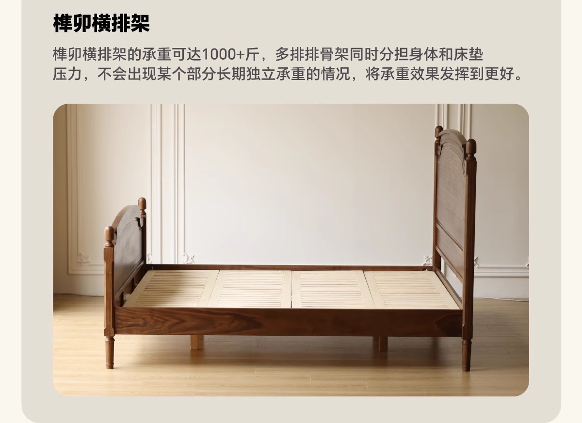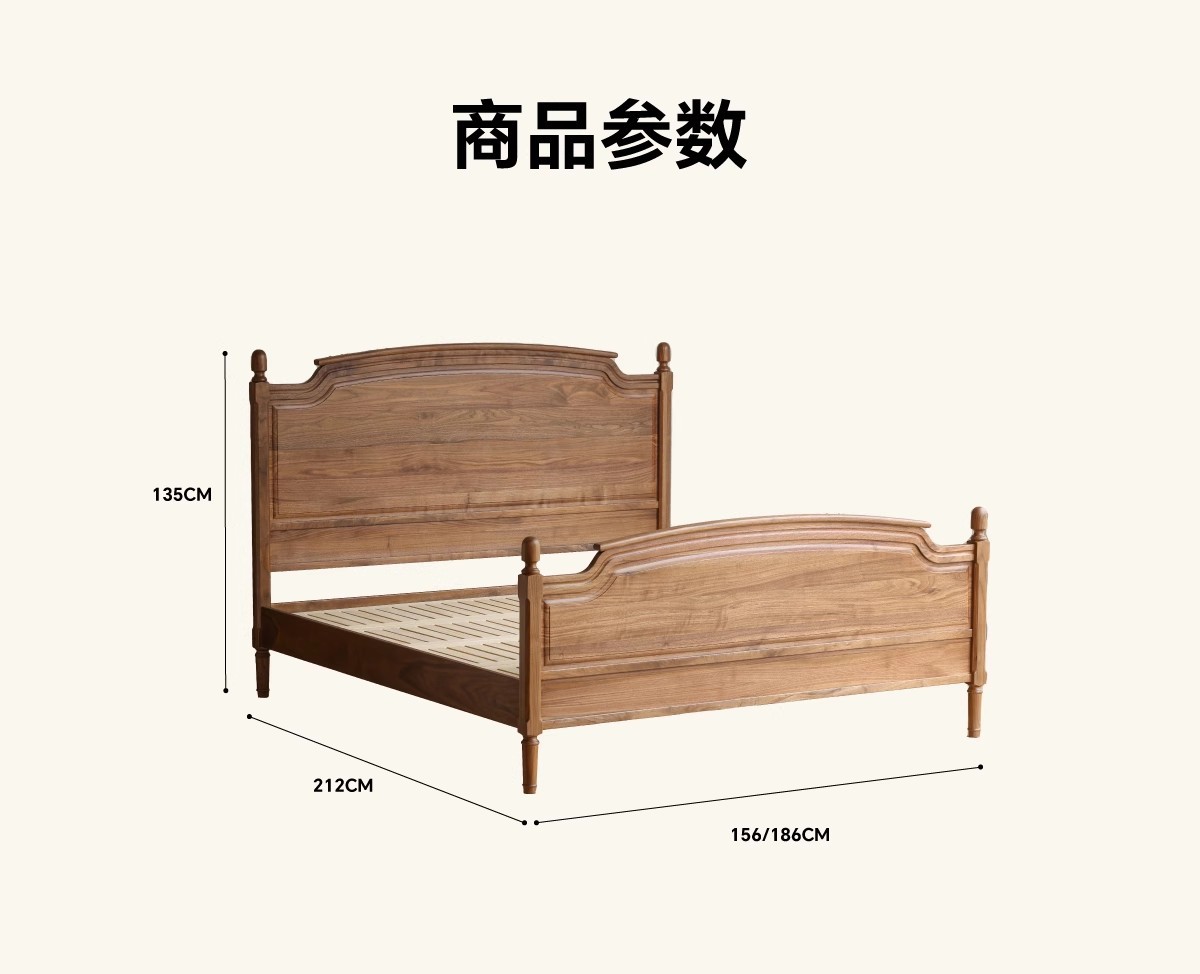 블랙 호두 미국 단단한 나무 침대 프랑스 복고풍 1.8m 더블 침대 가구 가정용 작은 아파트 1.5m 싱글 침대스토어 가기