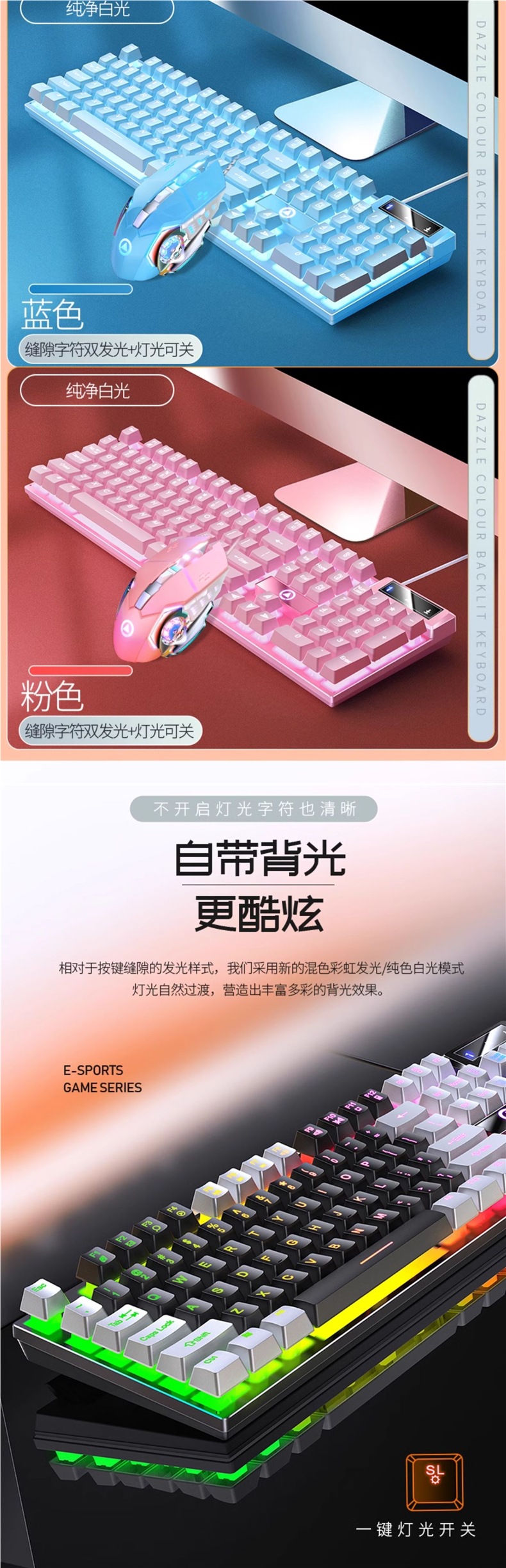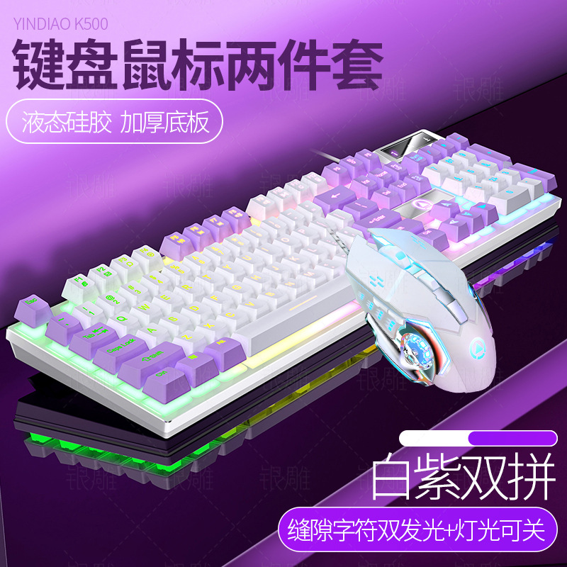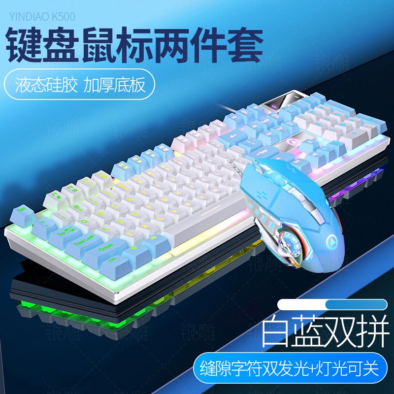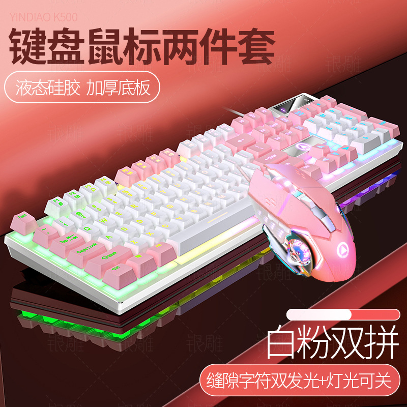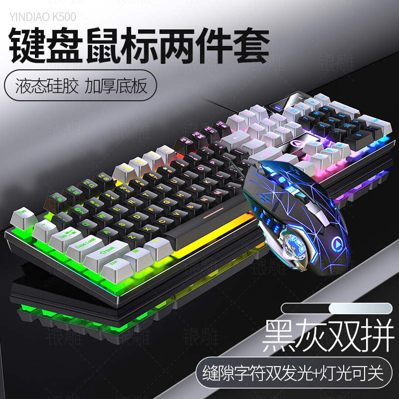 K500 기계식 키보드 USB 유선 컴퓨터 데스크탑 라이트 사운드 오피스 e-스포츠 게임 마우스 세트