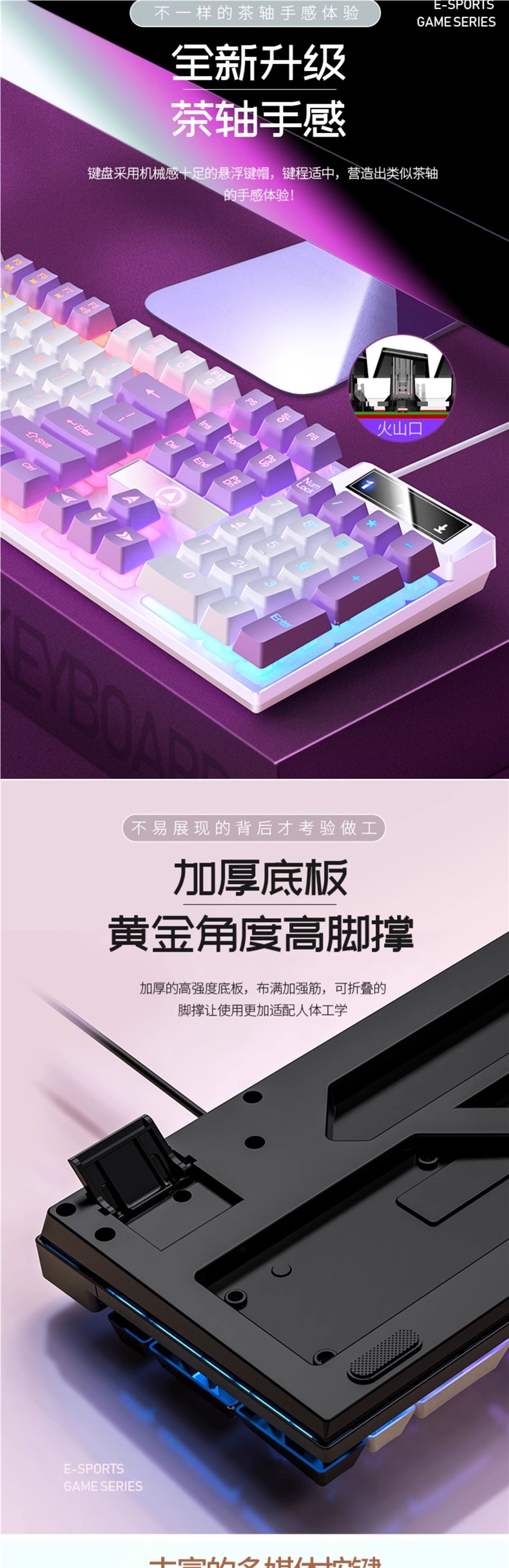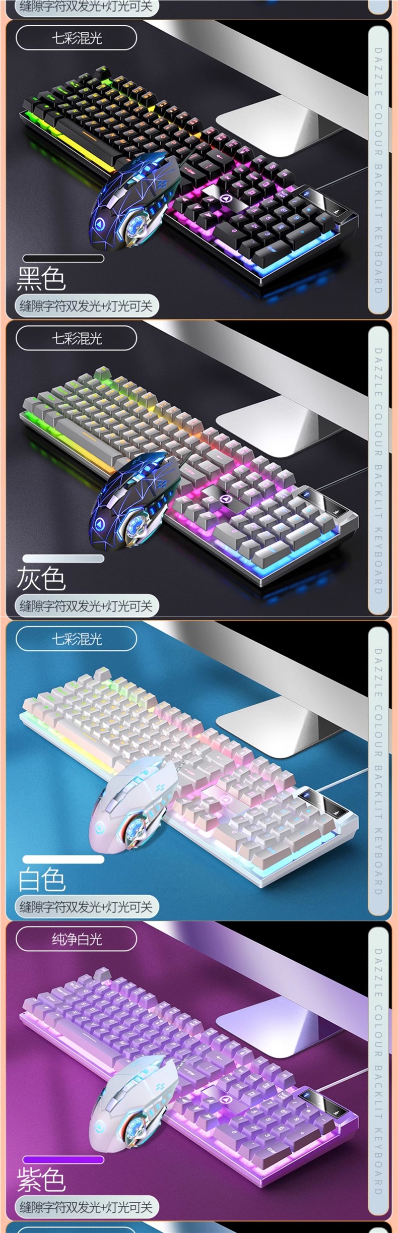 • K500 흰색과 보라색 혼합 조명 + G15 마우스 + Q7 헤드폰 + 마우스 패드