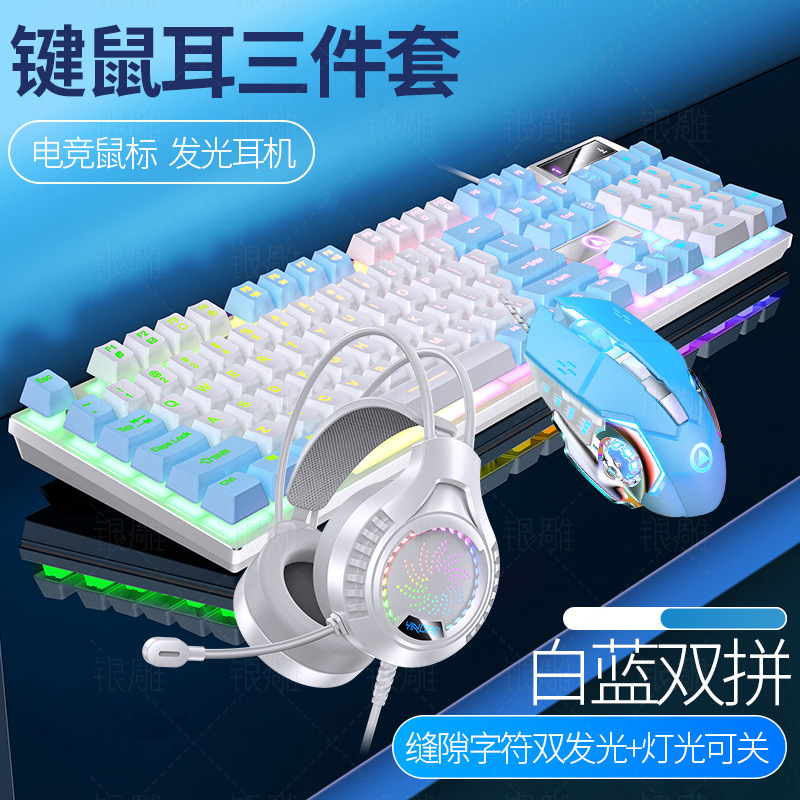 • K500 파란색과 흰색 조명 + G15 마우스 + Q7 헤드폰 + 마우스 패드