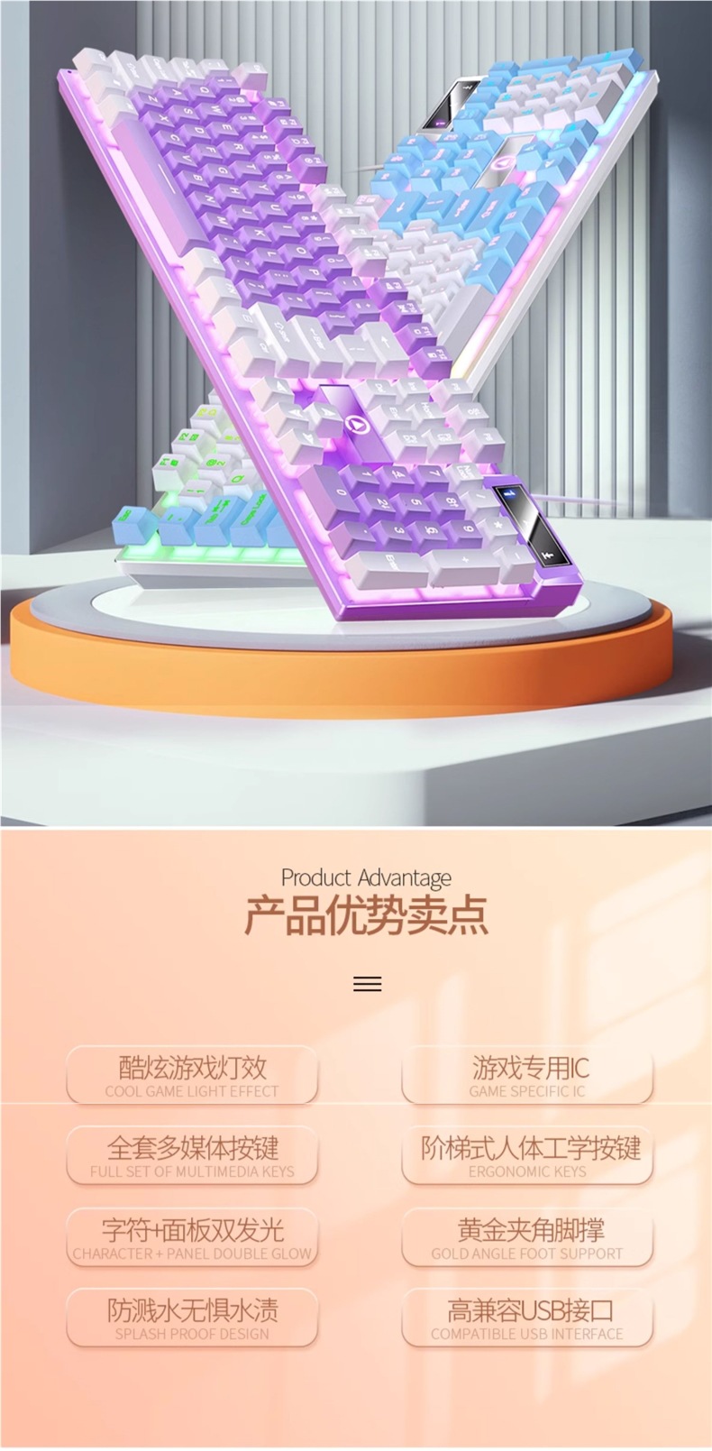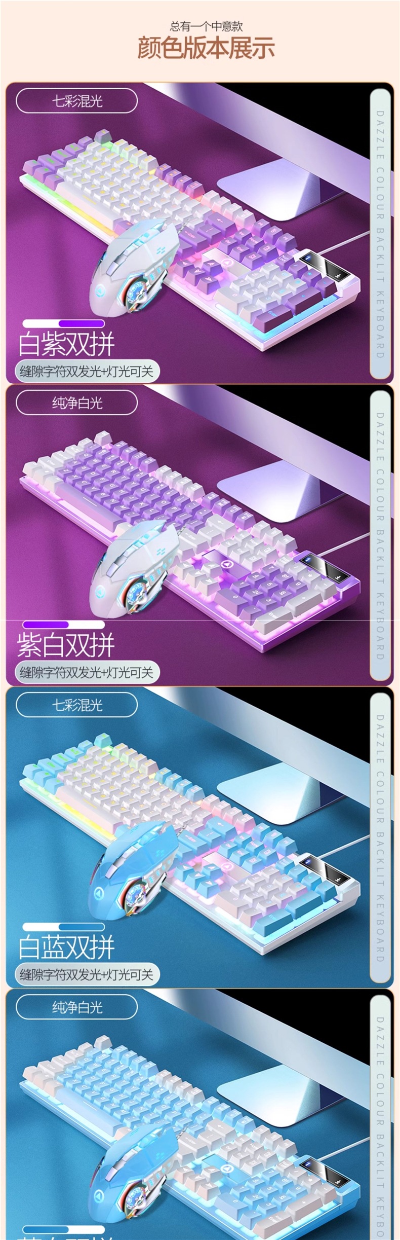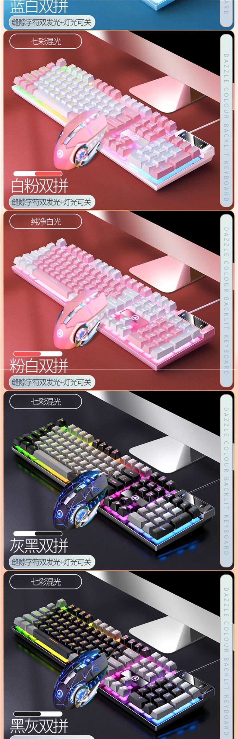• K500 화이트 파우더 혼합 조명 + G15 마우스 + Q7 헤드폰 + 마우스 패드