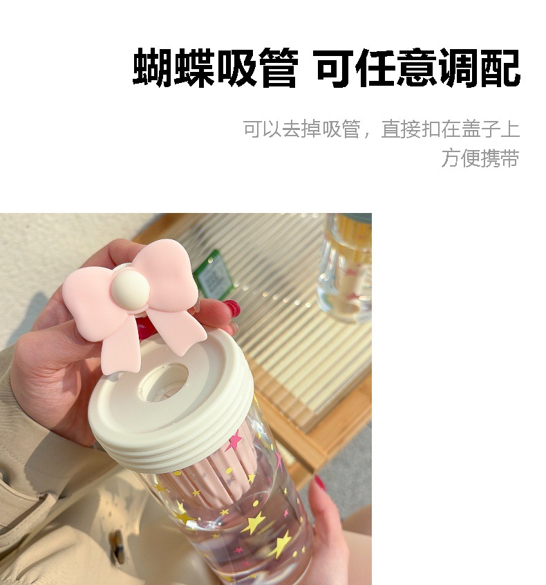 여름 신작 유리 대용량 밀짚 컵 물컵 소녀의 고급스러운 가정용 유리 물컵 차 분리기 포함스토어 가기