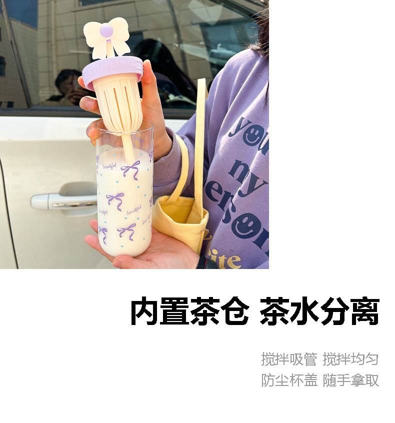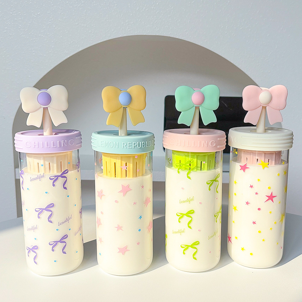여름 신작 유리 대용량 밀짚 컵 물컵 소녀의 고급스러운 가정용 유리 물컵 차 분리기 포함