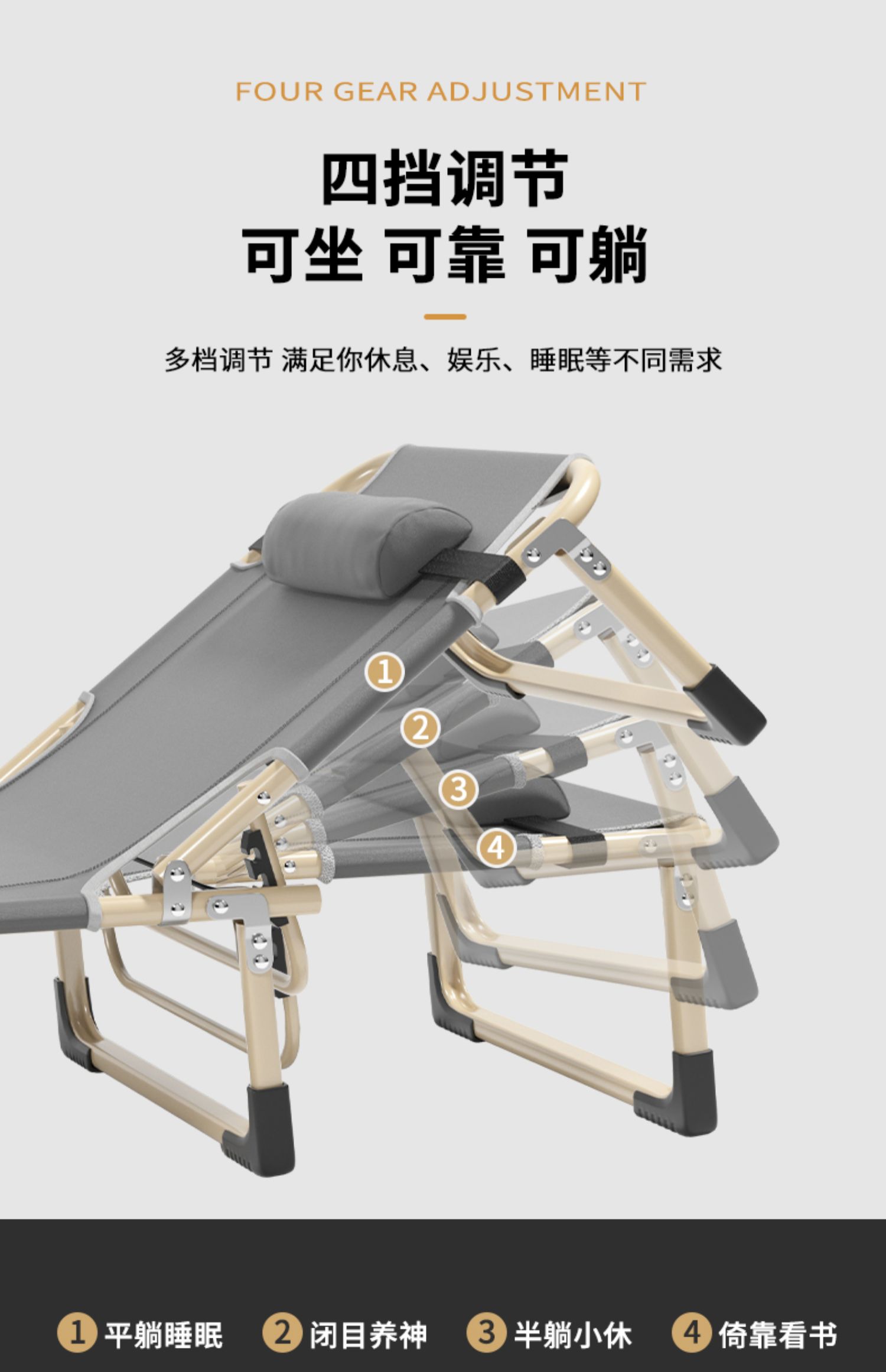 다기능 가정용 접이식 침대, 1인용 사무실, 간이 캠프 동반자, 성인 점심 시간 안락 의자, 낮잠 침대, 휴대용스토어 가기