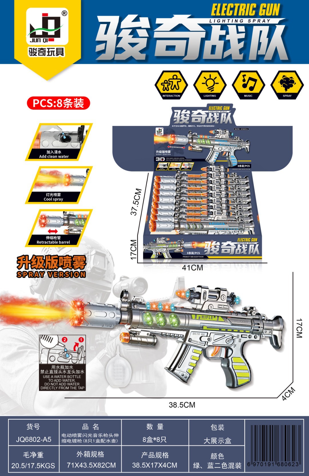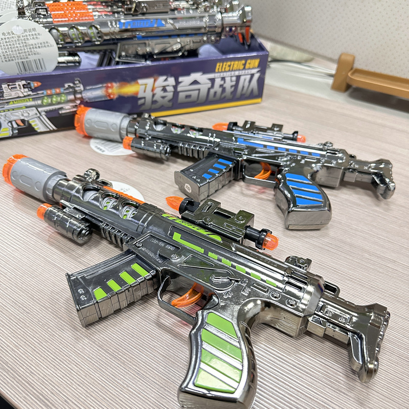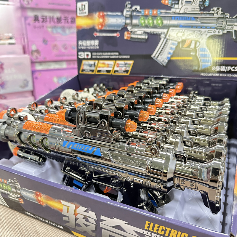 8개의 연기 스프레이 전기 기관단총, 플래시, 진동 음악, 8음총, 소년 및 어린이 장난감, 야시장 매점스토어 가기