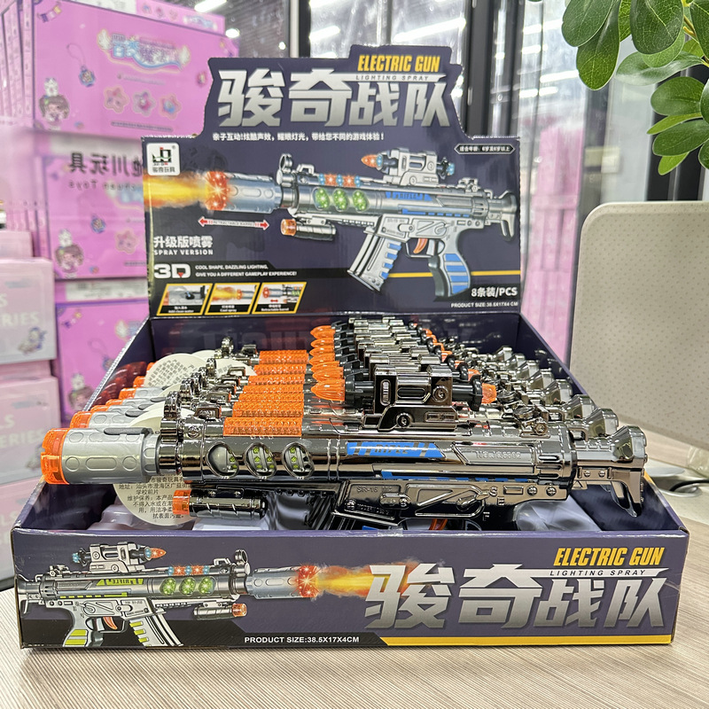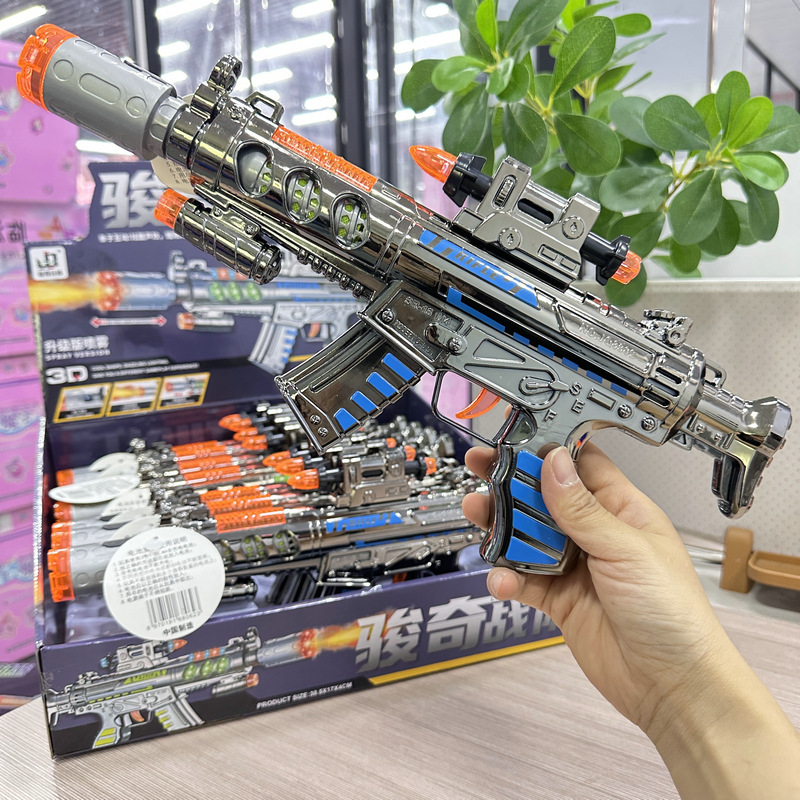 8개의 연기 스프레이 전기 기관단총, 플래시, 진동 음악, 8음총, 소년 및 어린이 장난감, 야시장 매점