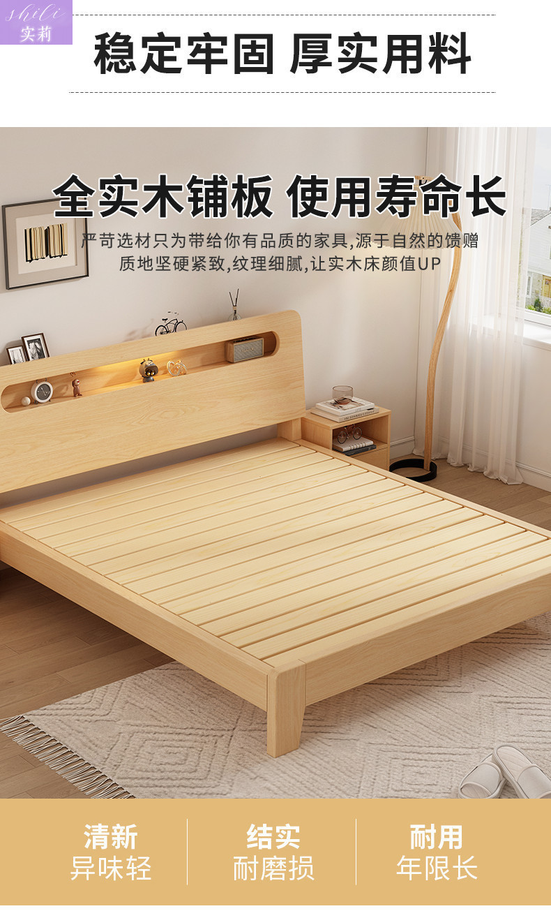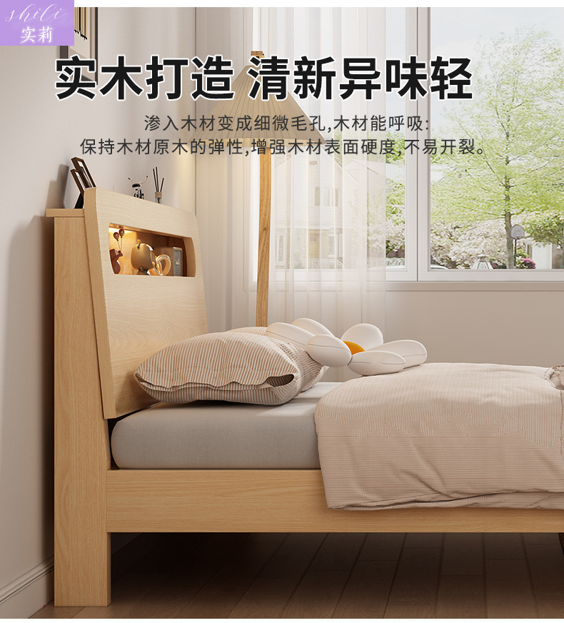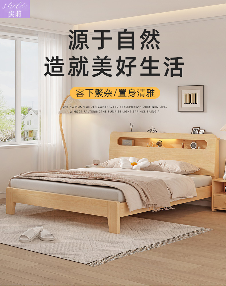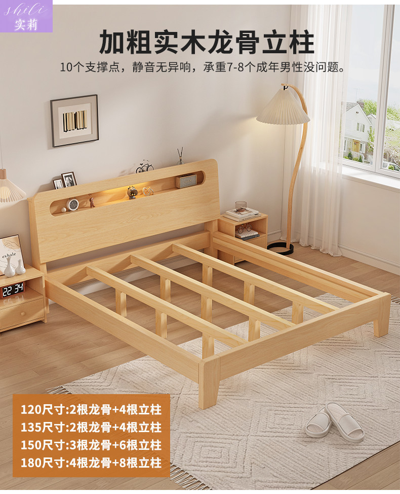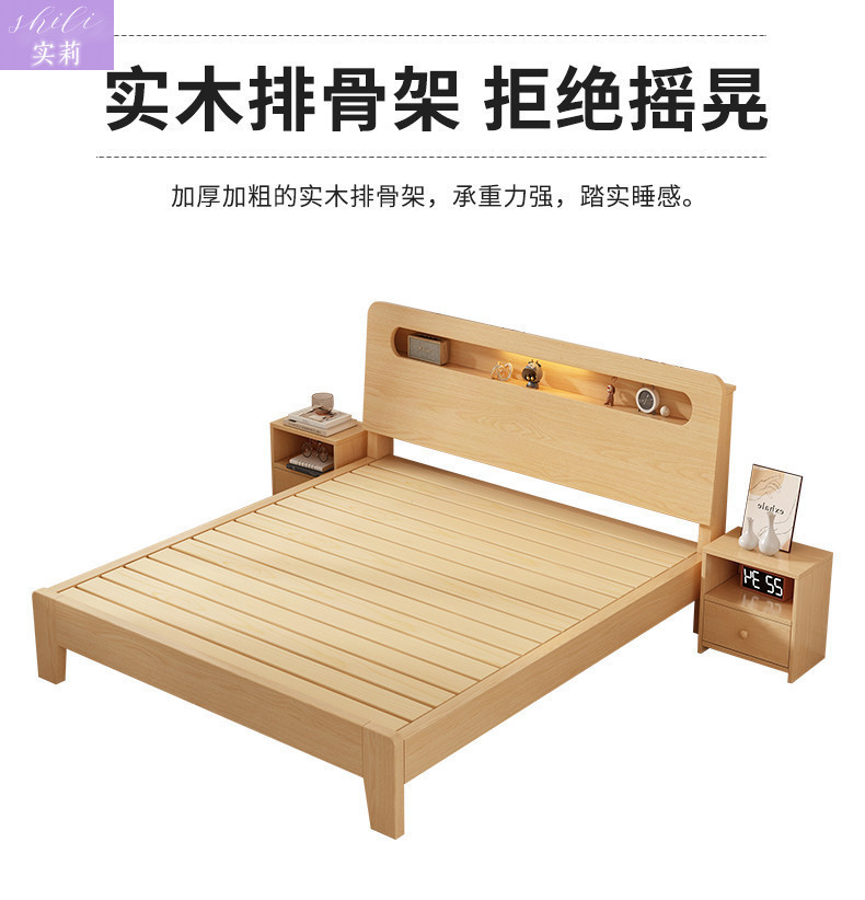 원목 침대 1.5m 더블 침대 홈 1.8m 심플 임대실 경제적인 1.2m 싱글 침대 프레임 Amazon스토어 가기