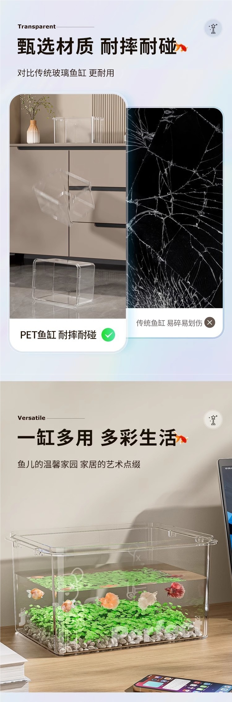 투명 모조 유리 수조 작은 데스크탑 홈 오피스 금붕어 거북이 미니 사각형 아크릴 수조
