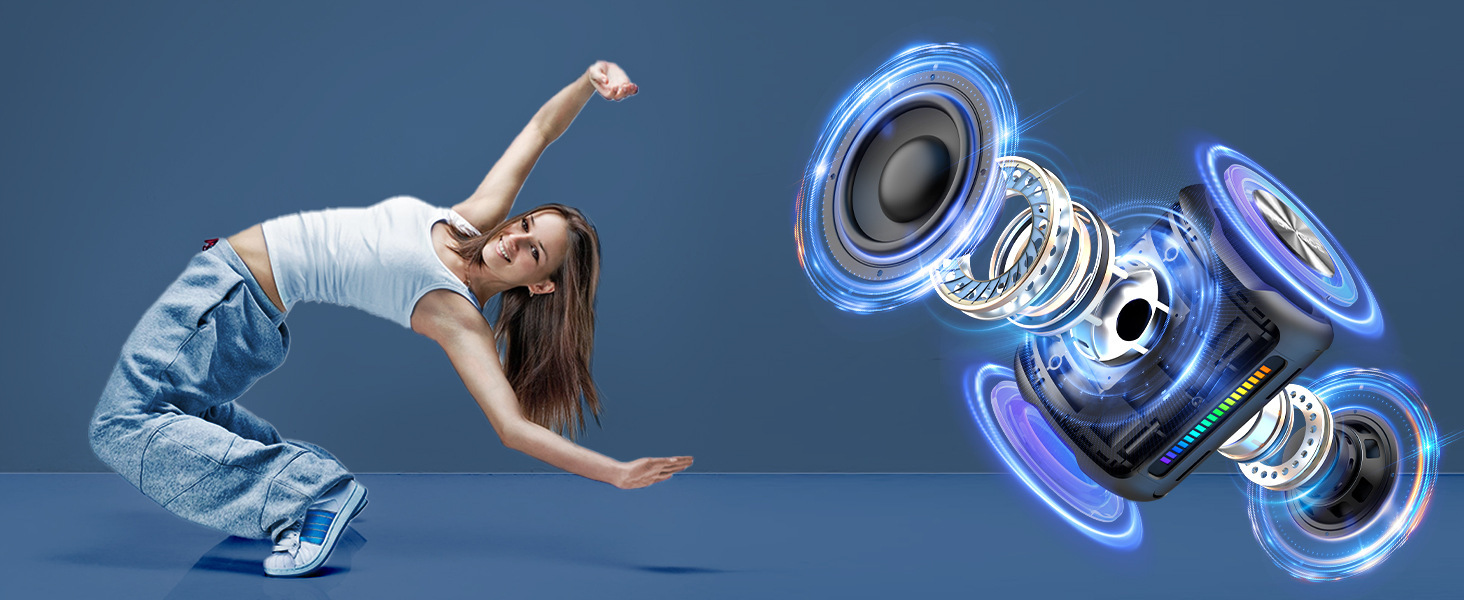 국경 간 인기 판매 방수 무선 블루투스 음성 통화 실내 및 실외 휴대용 고출력 볼륨 서브우퍼 사운드스토어 가기