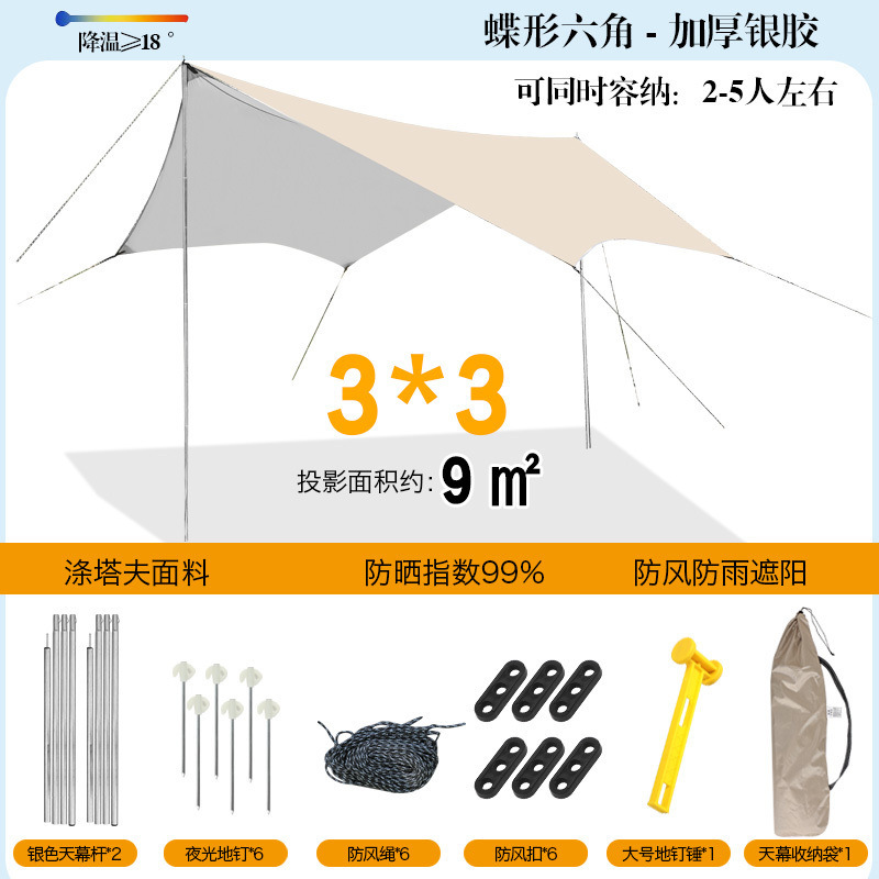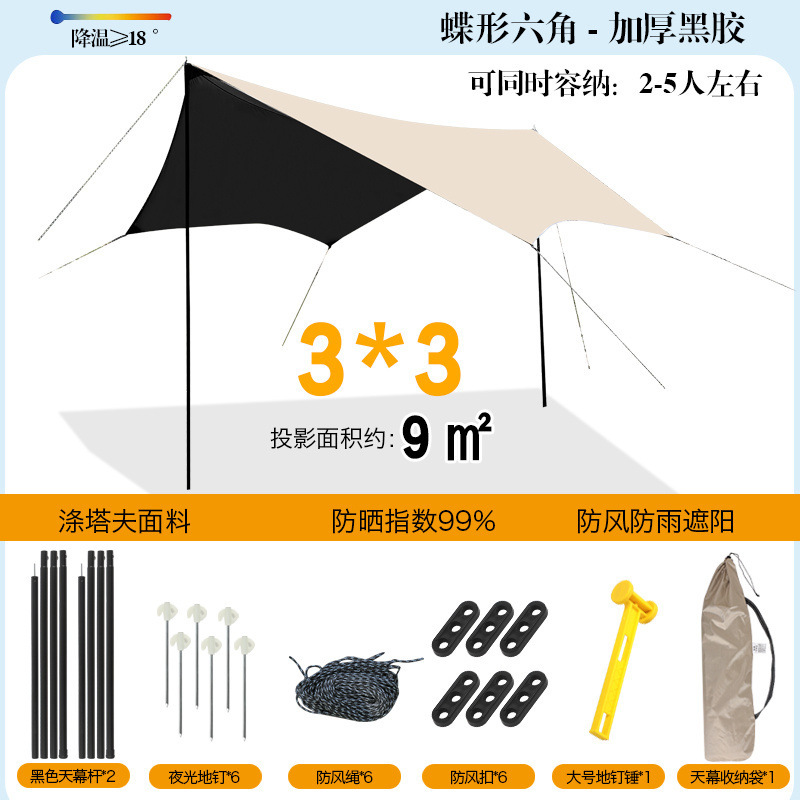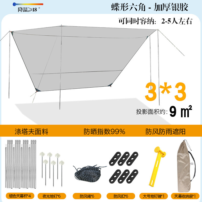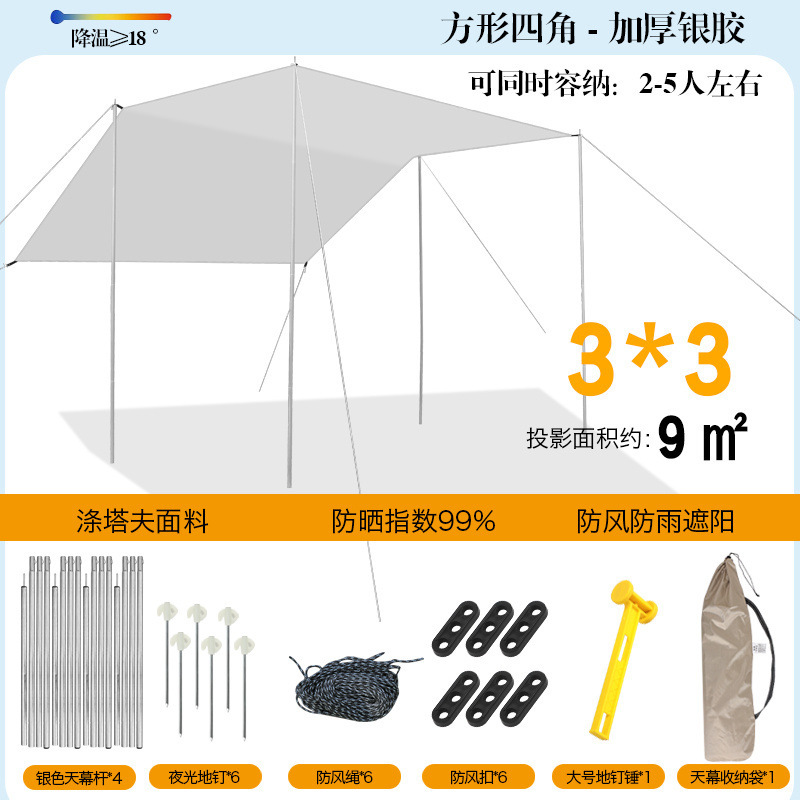 야외 캐노피 텐트 천막 두꺼운 실버 플라스틱 블랙 플라스틱 캐노피 캠핑 캠핑 피크닉 바베큐 피크닉 도매스토어 가기