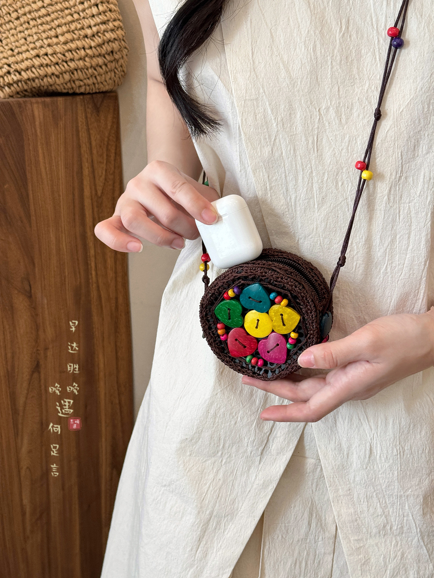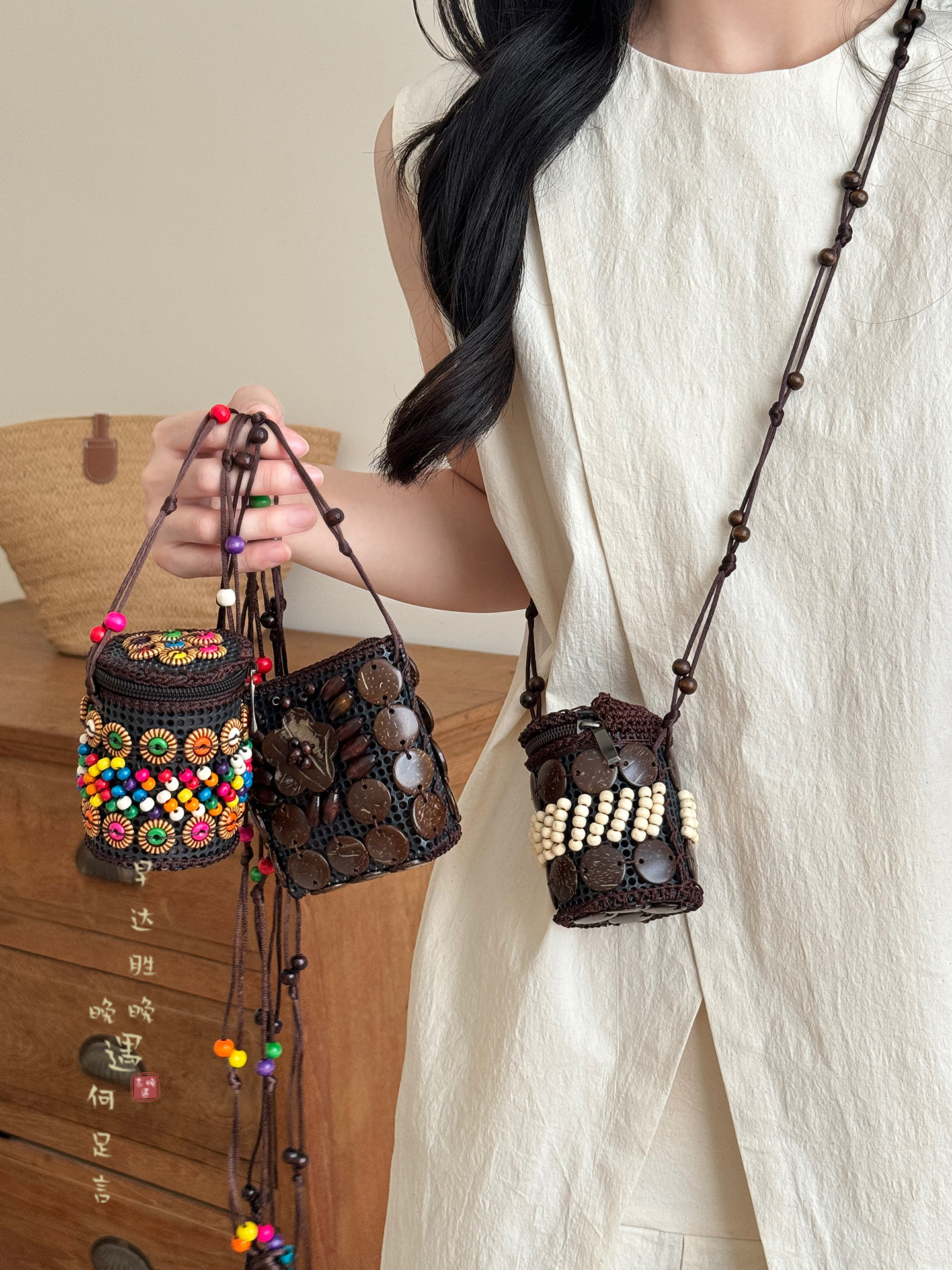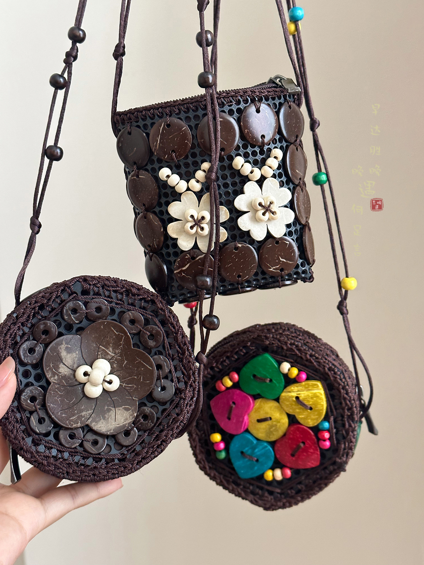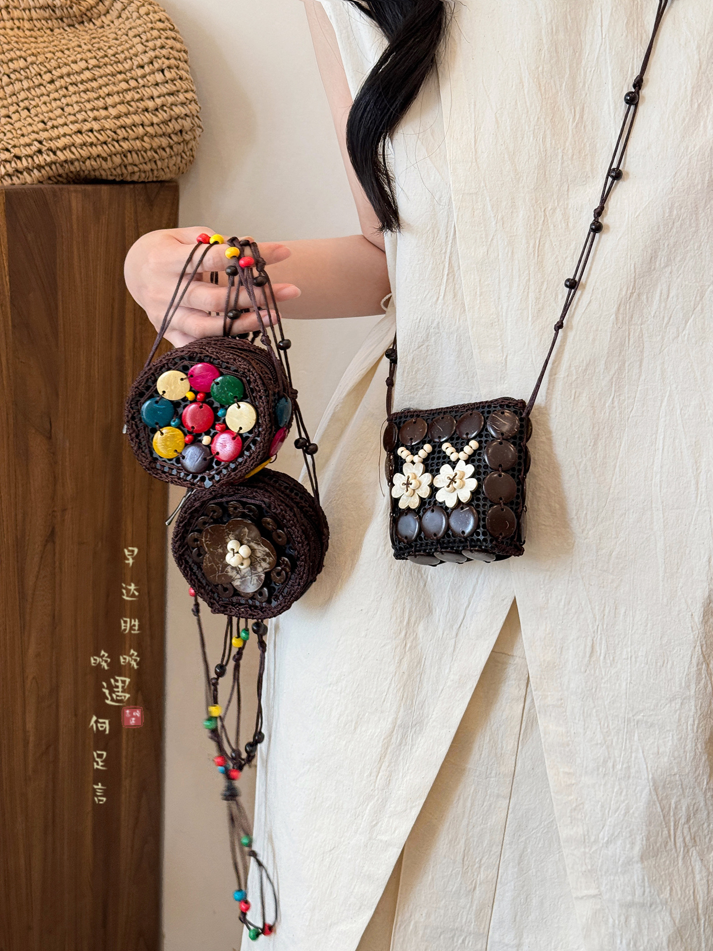 2025新款波西米亚民族风椰壳包包复古小众设计手工编织迷你零钱包