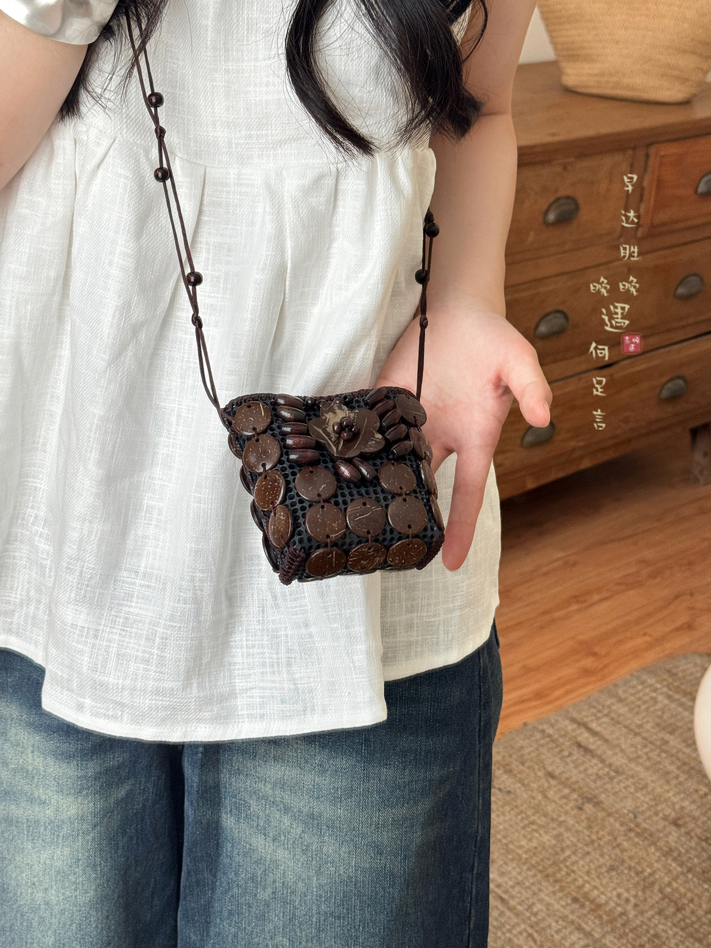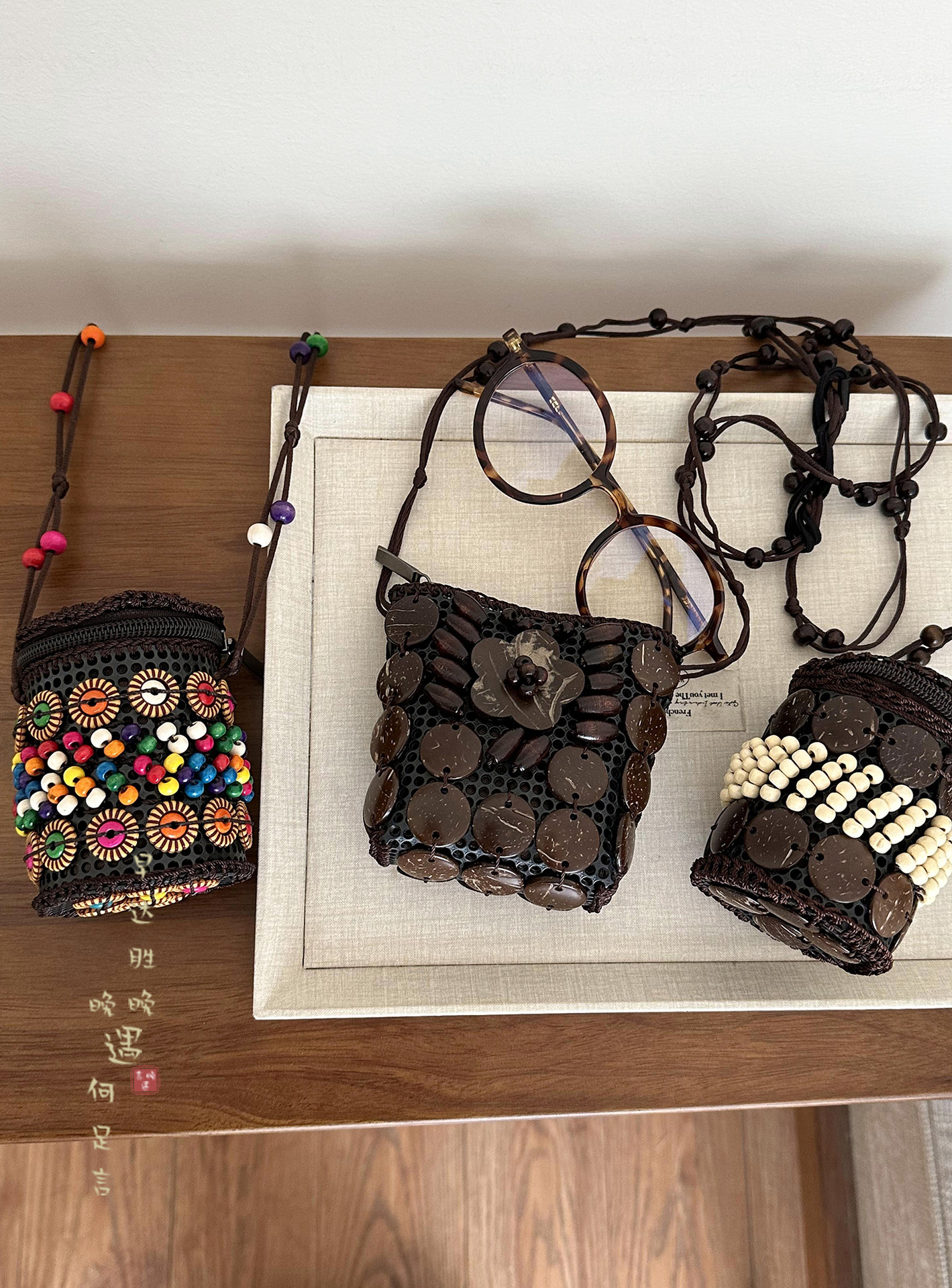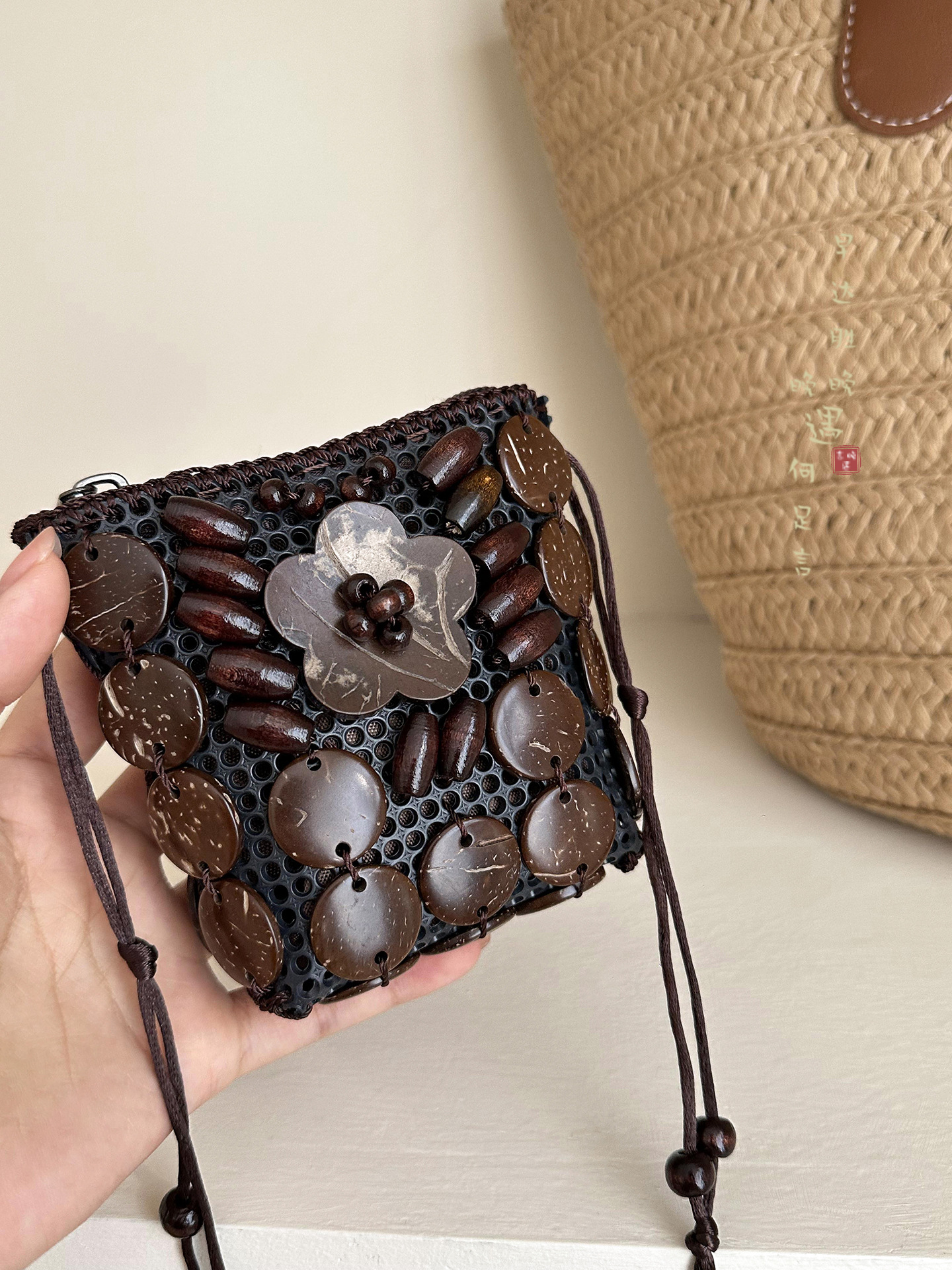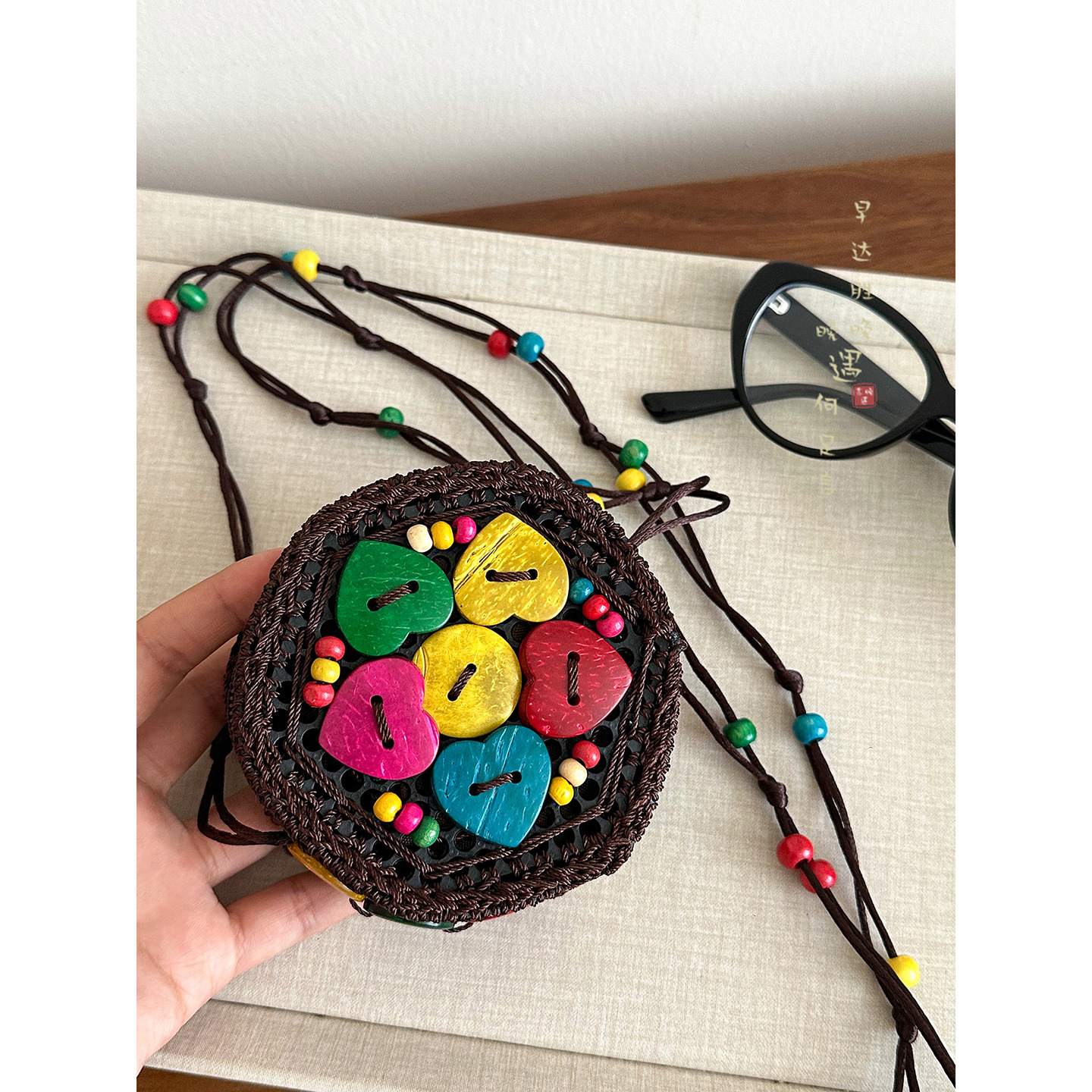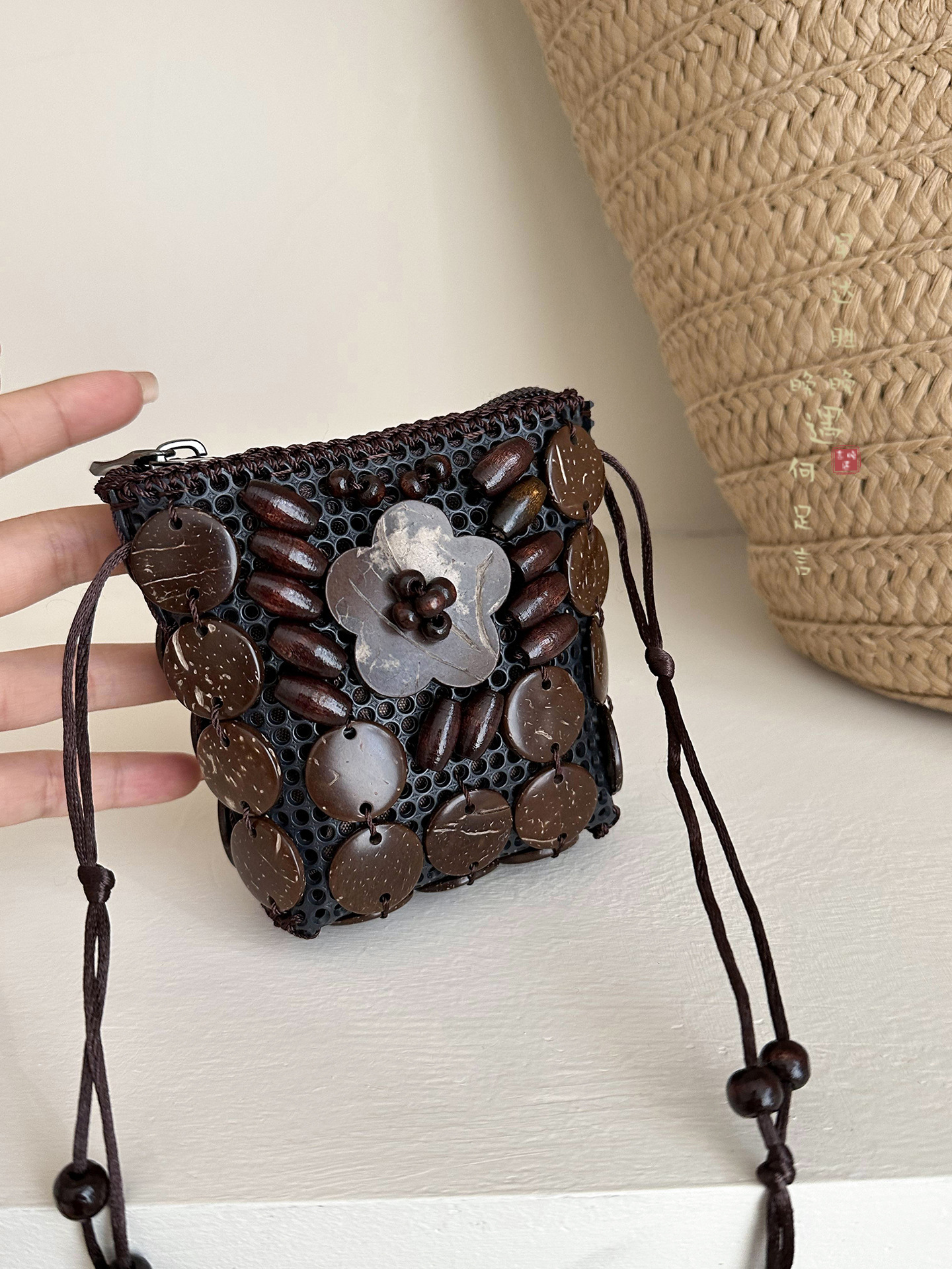 2025新款波西米亚民族风椰壳包包复古小众设计手工编织迷你零钱包