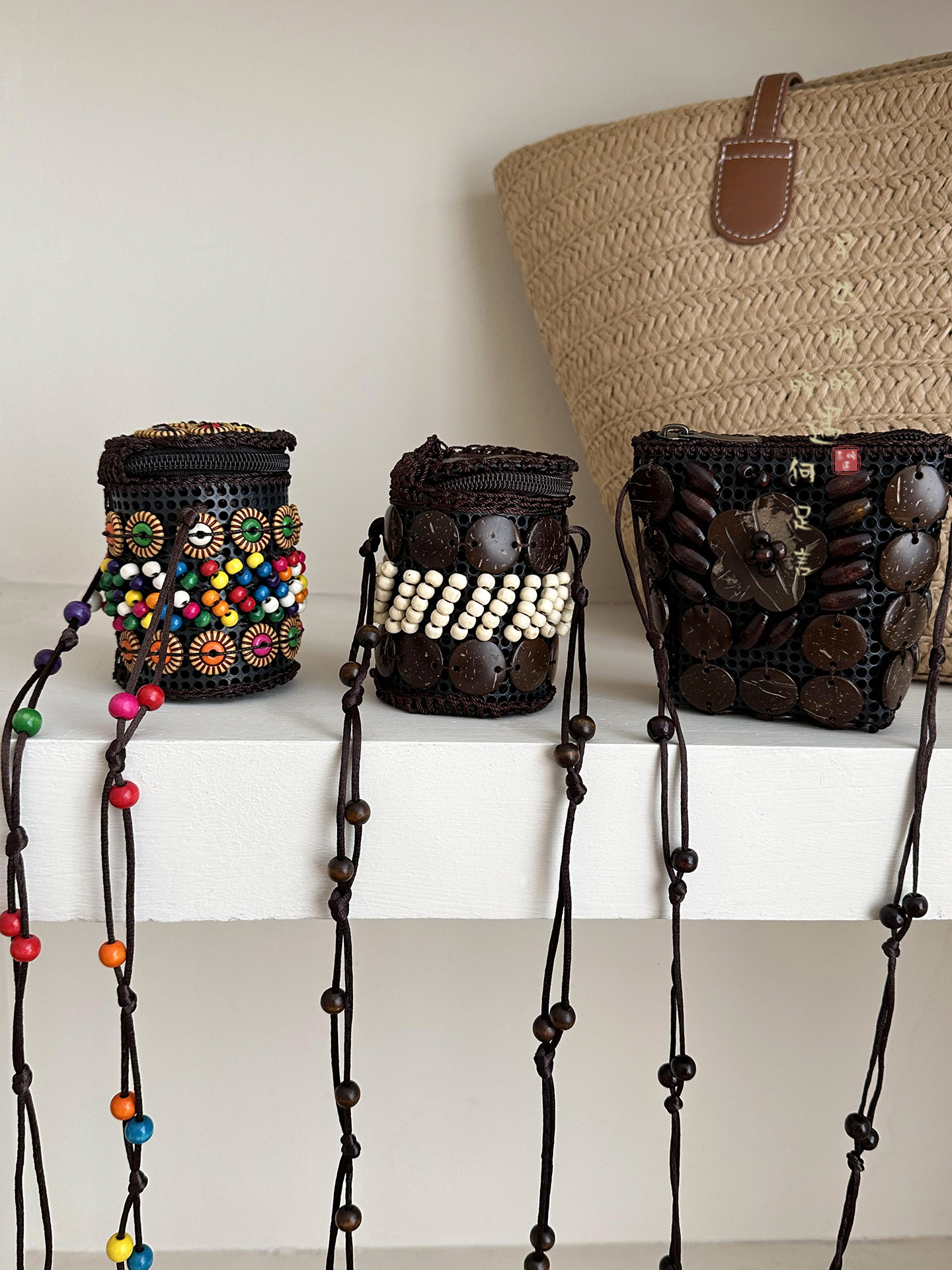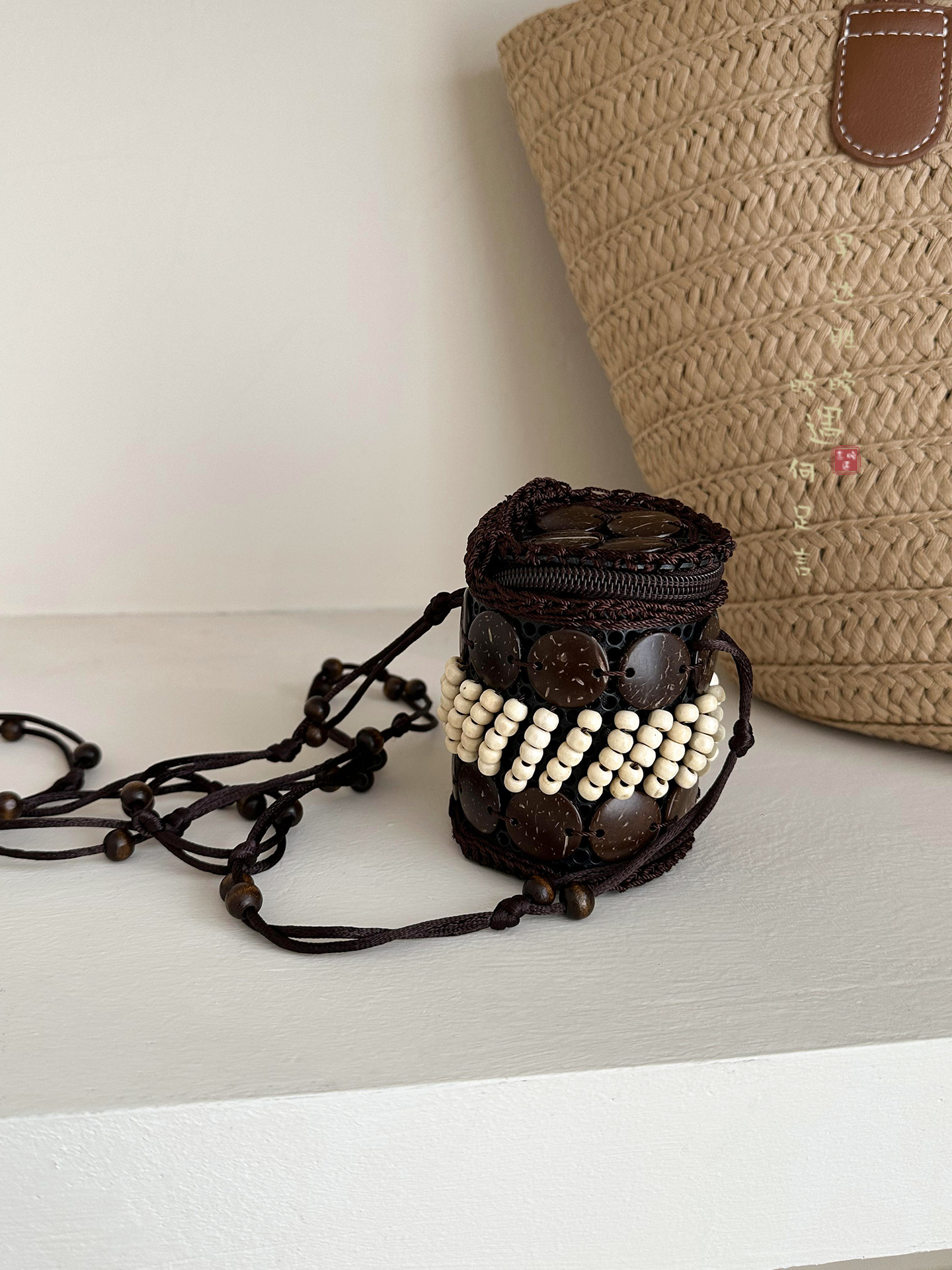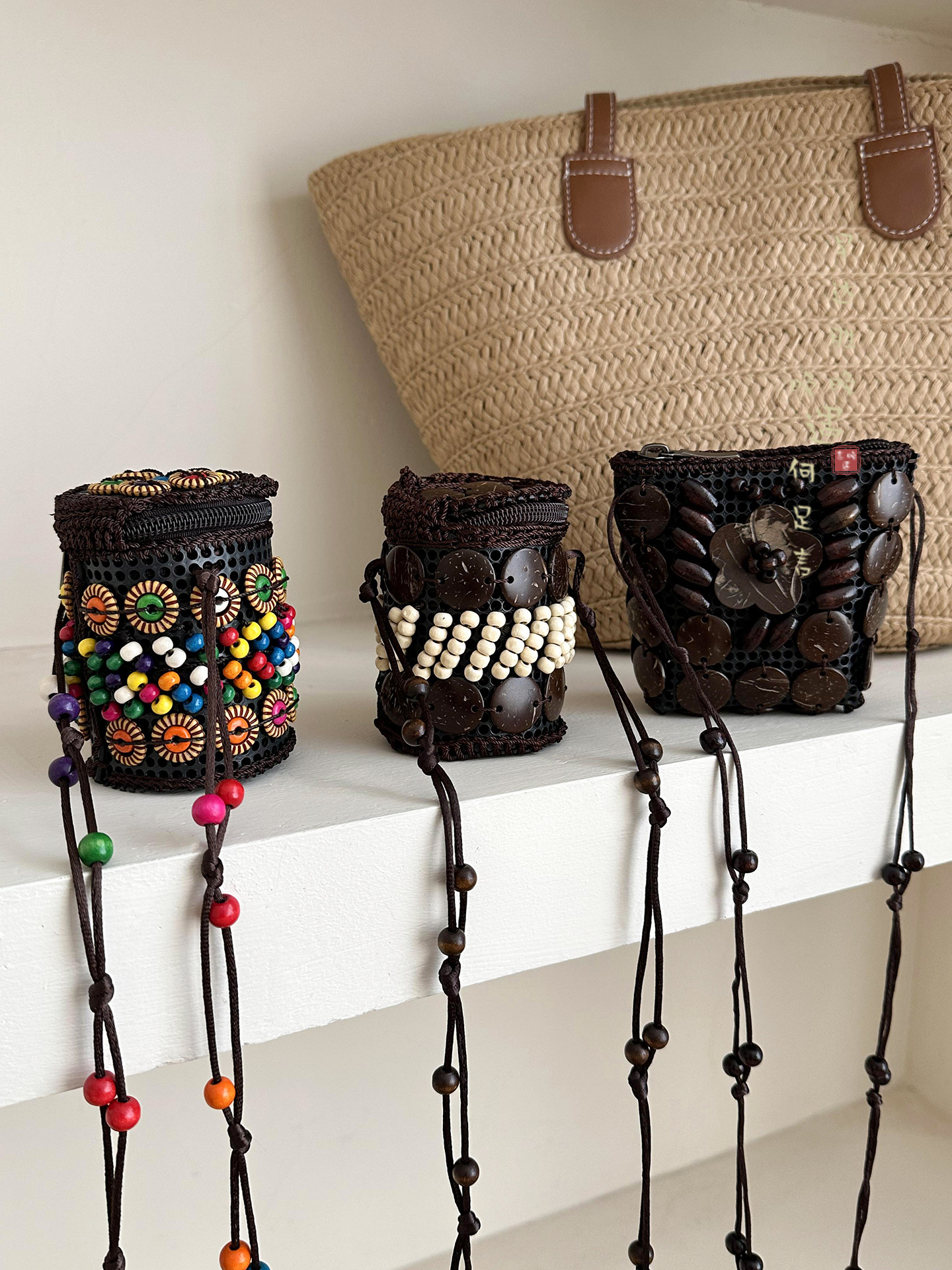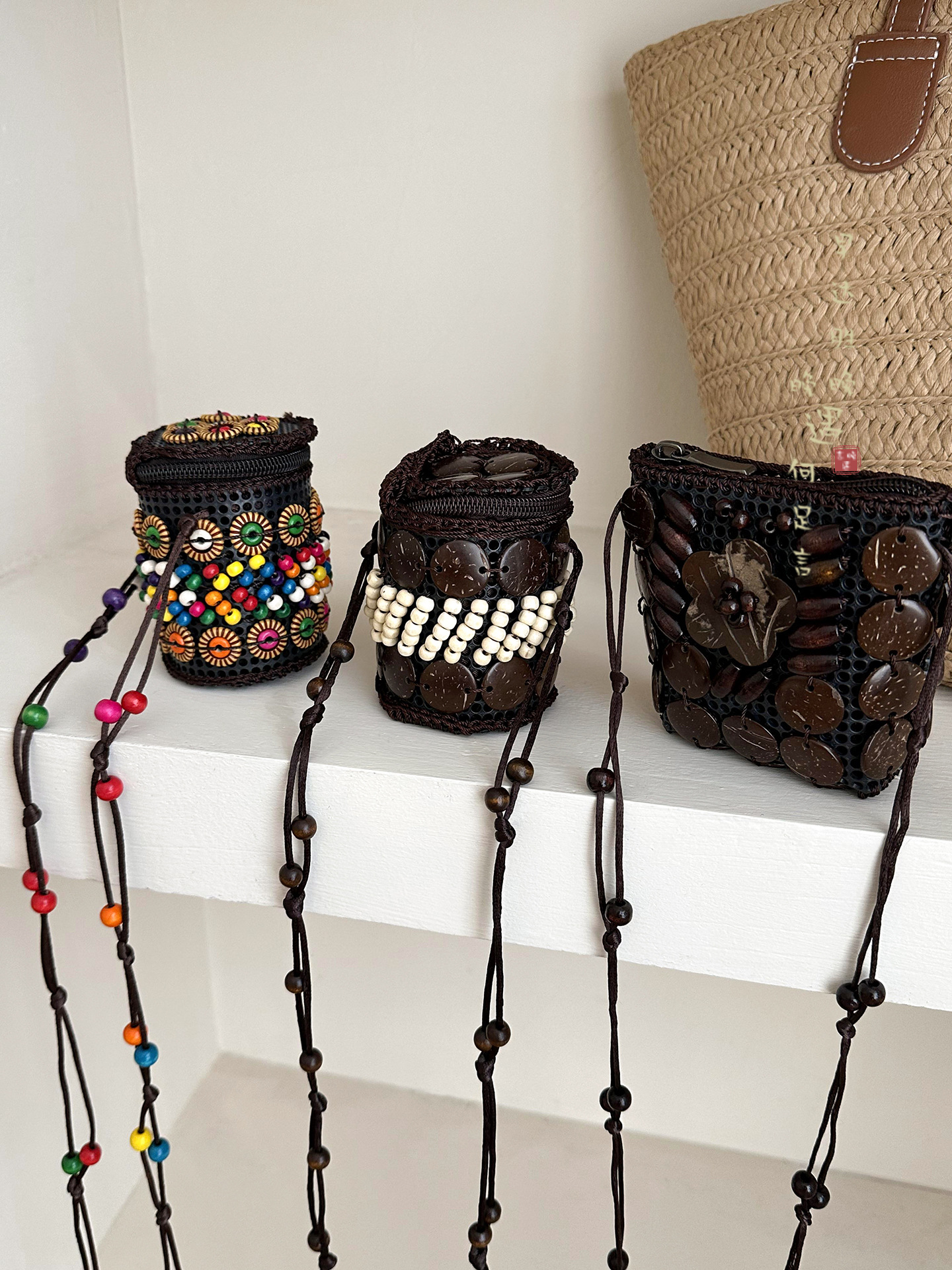 2025新款波西米亚民族风椰壳包包复古小众设计手工编织迷你零钱包