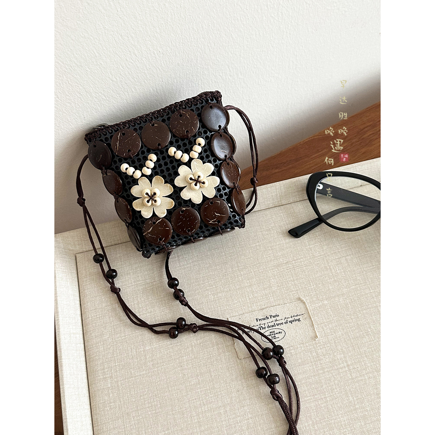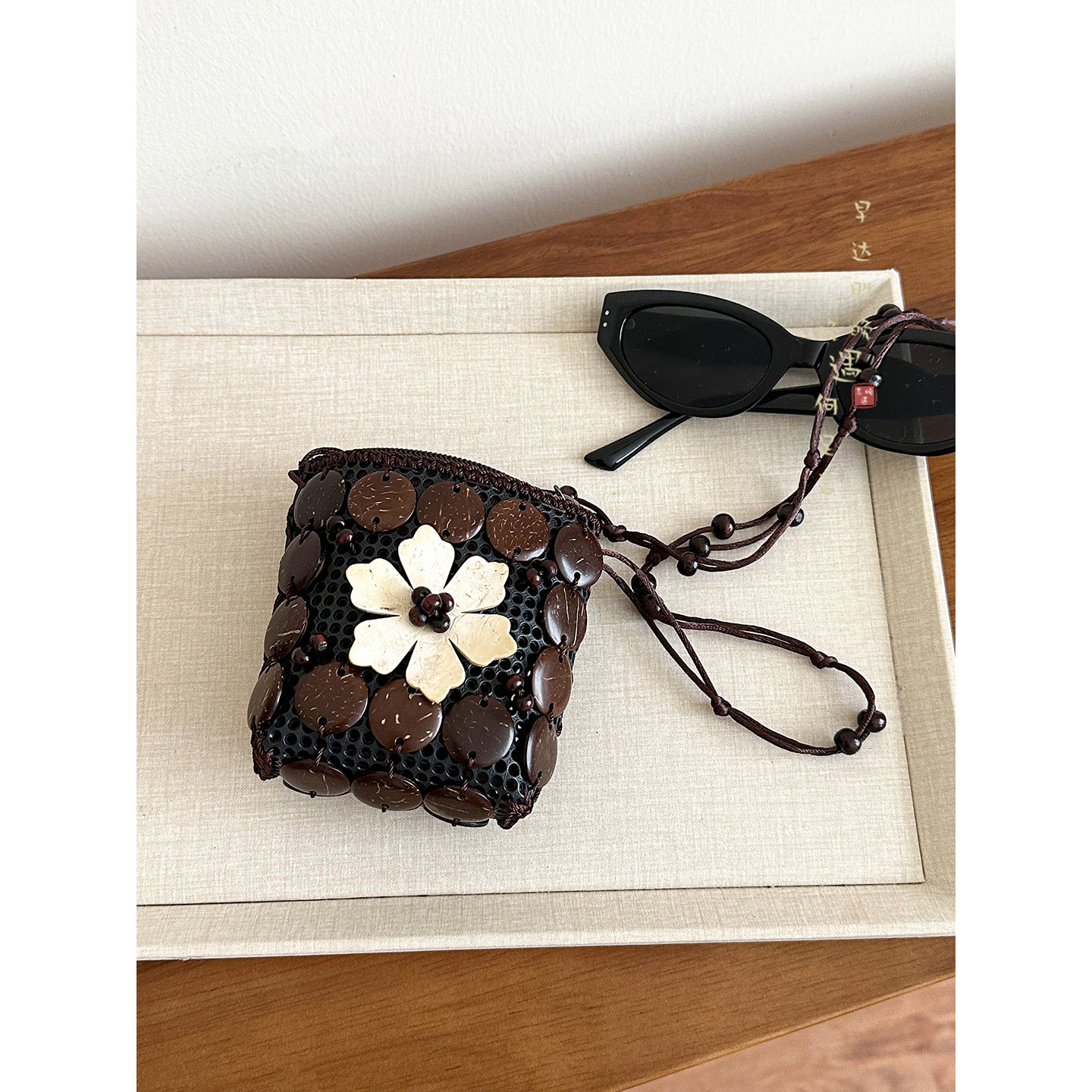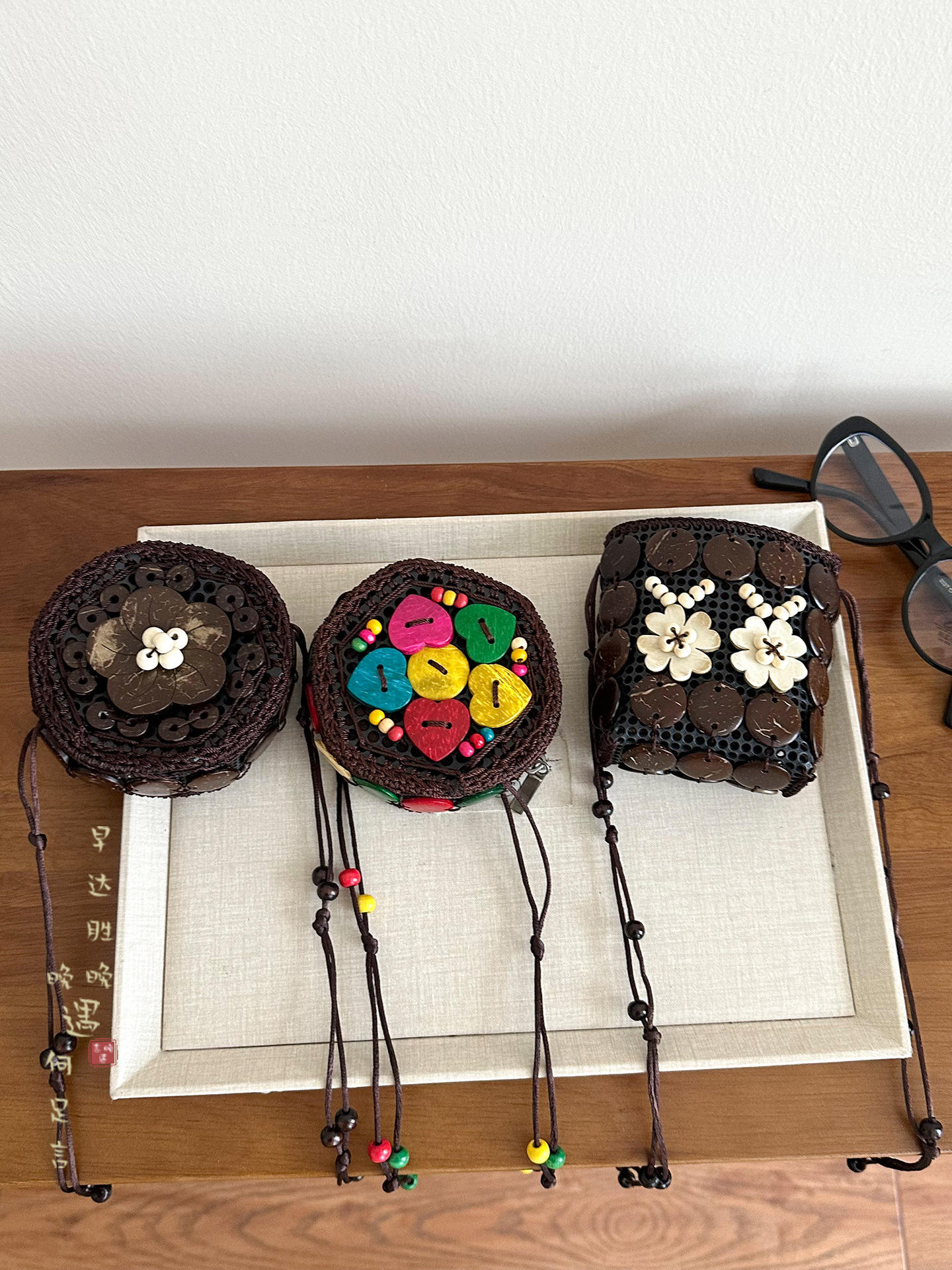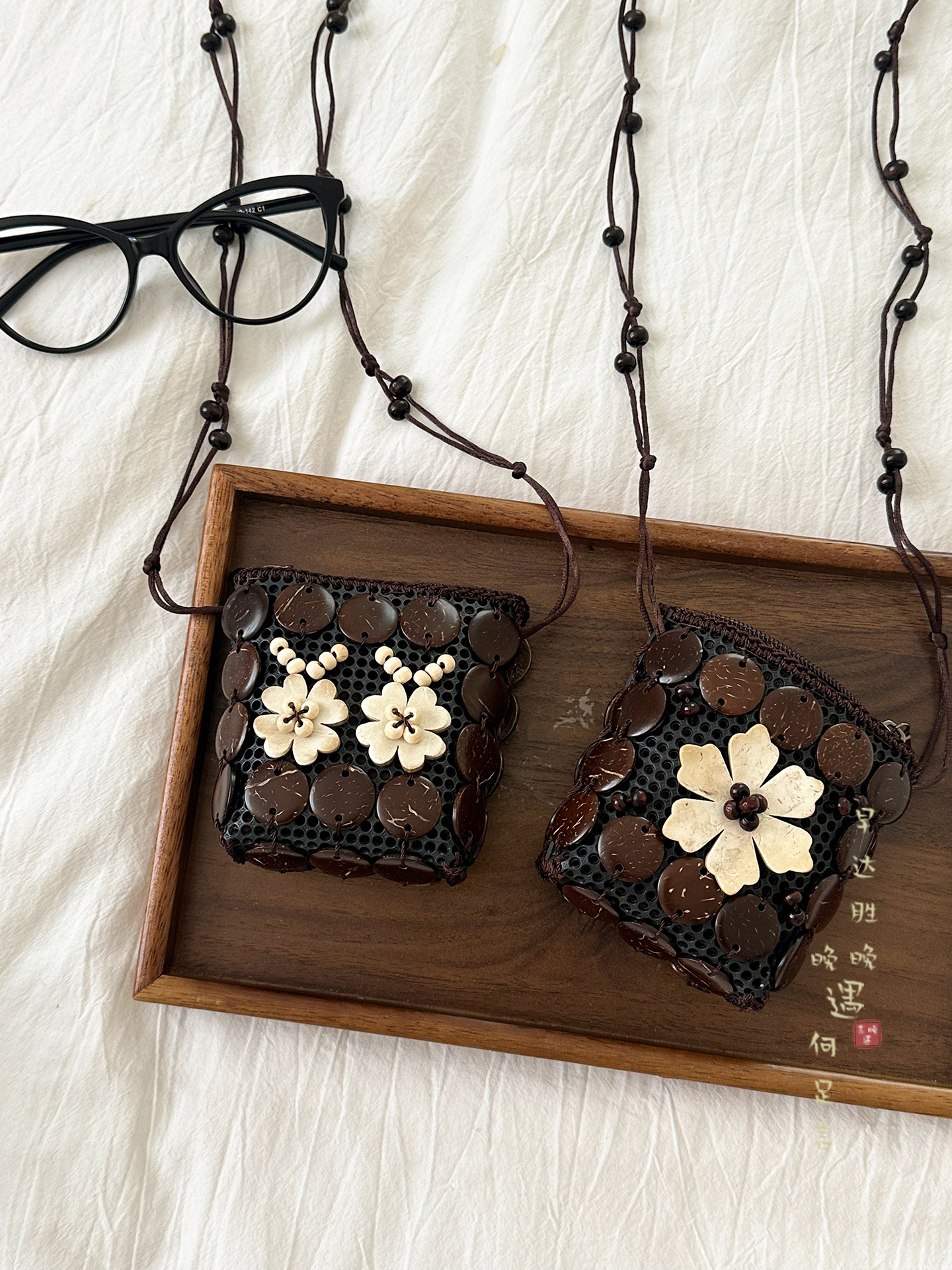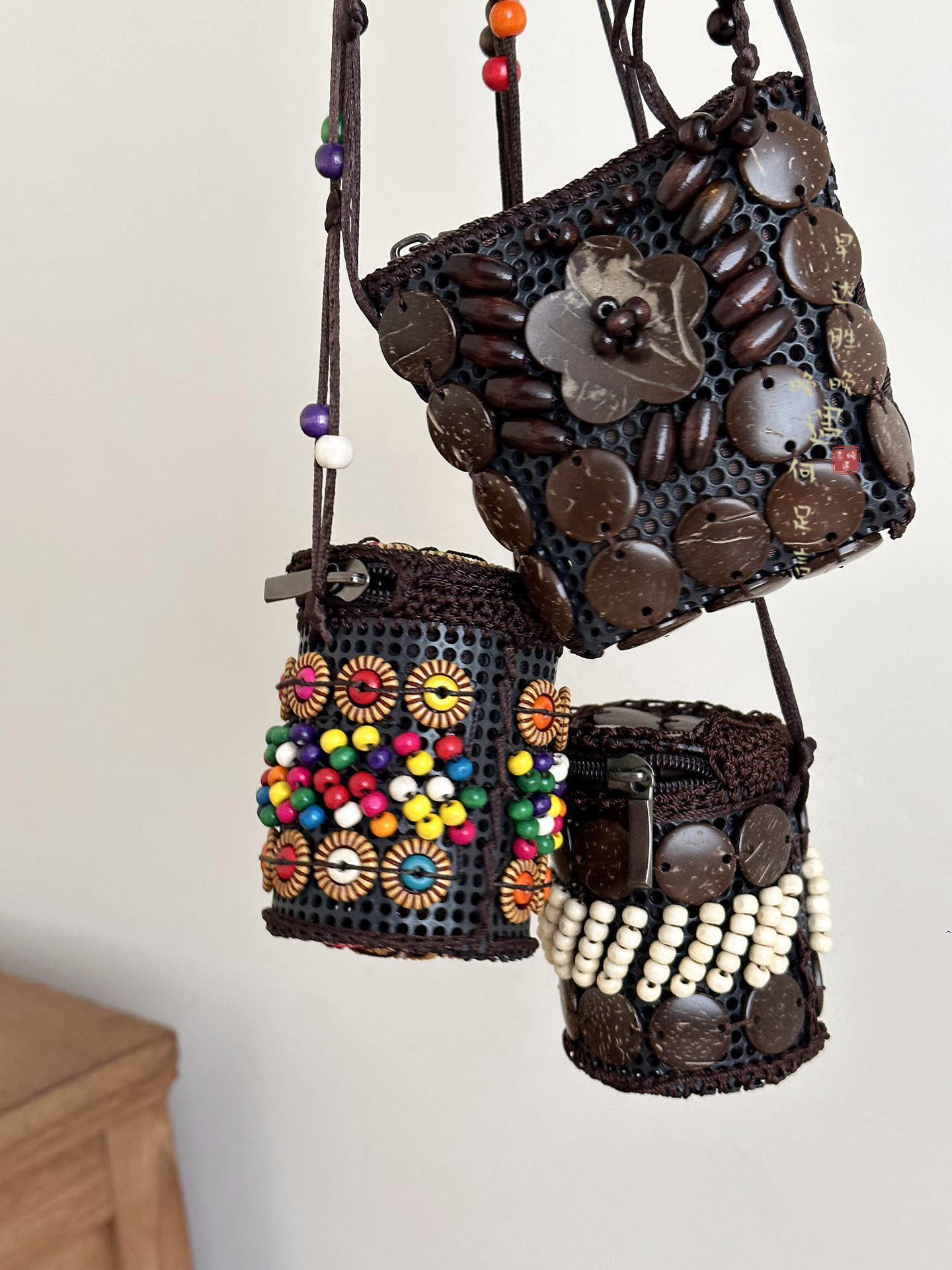 2025新款波西米亚民族风椰壳包包复古小众设计手工编织迷你零钱包