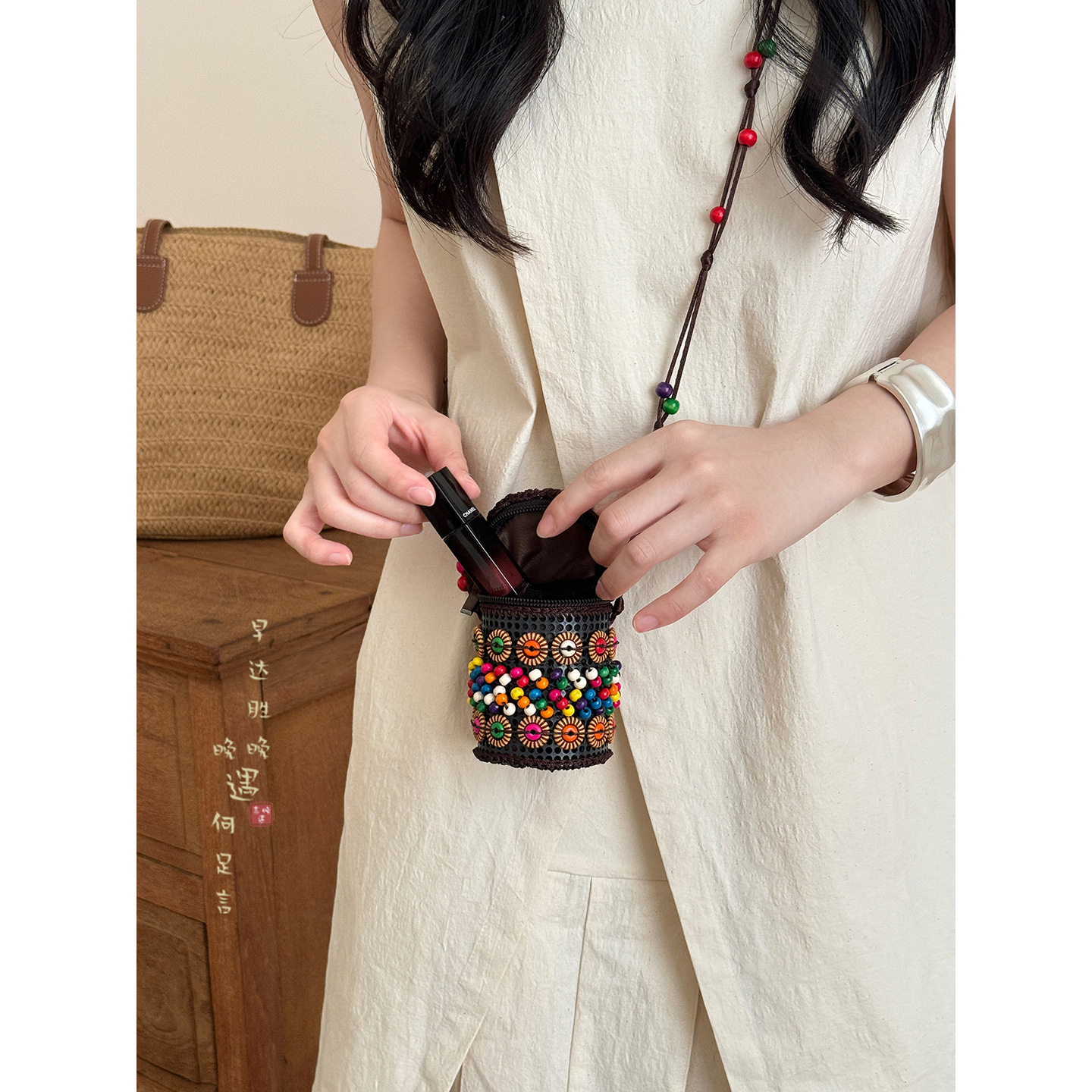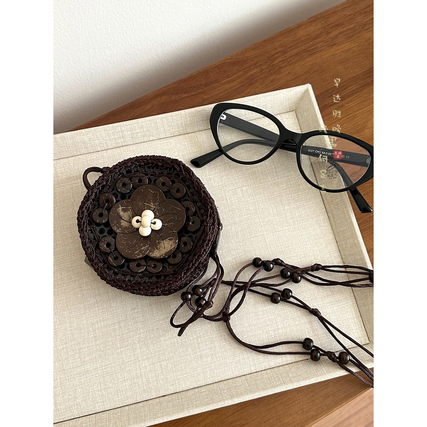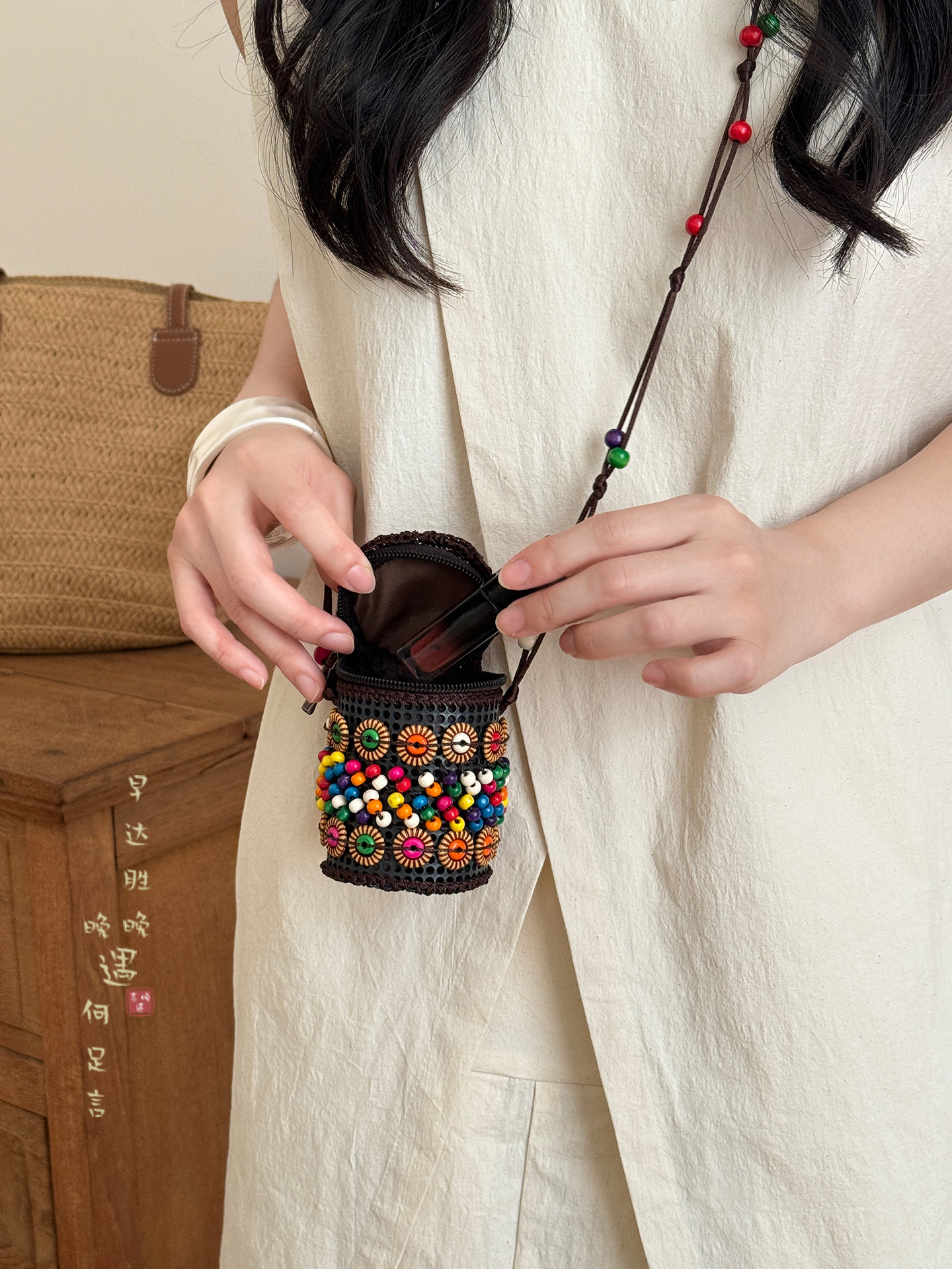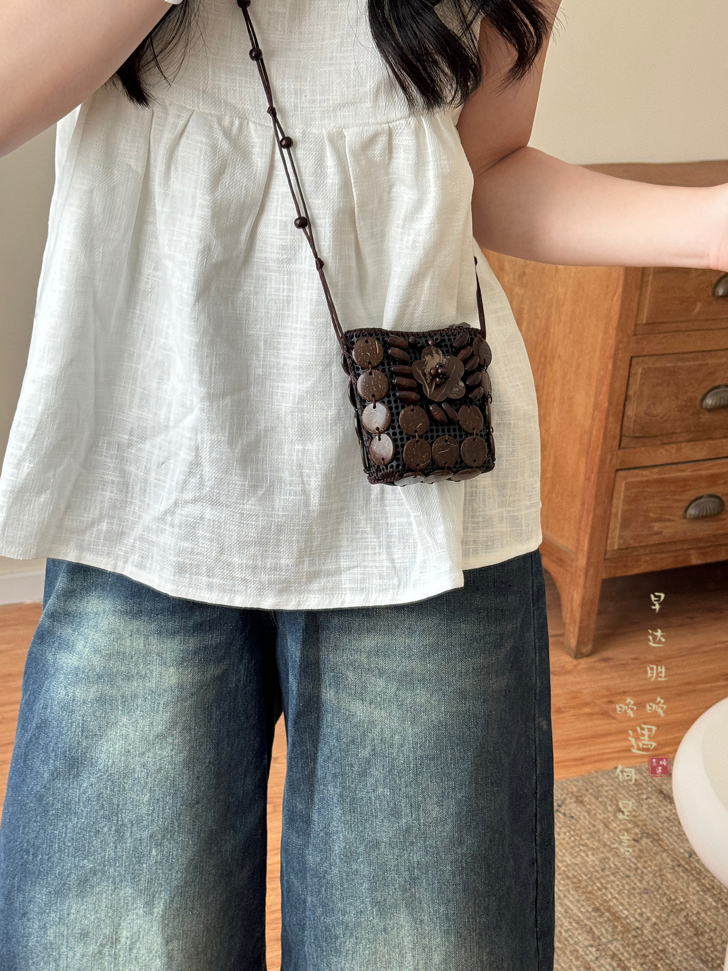 2025新款波西米亚民族风椰壳包包复古小众设计手工编织迷你零钱包