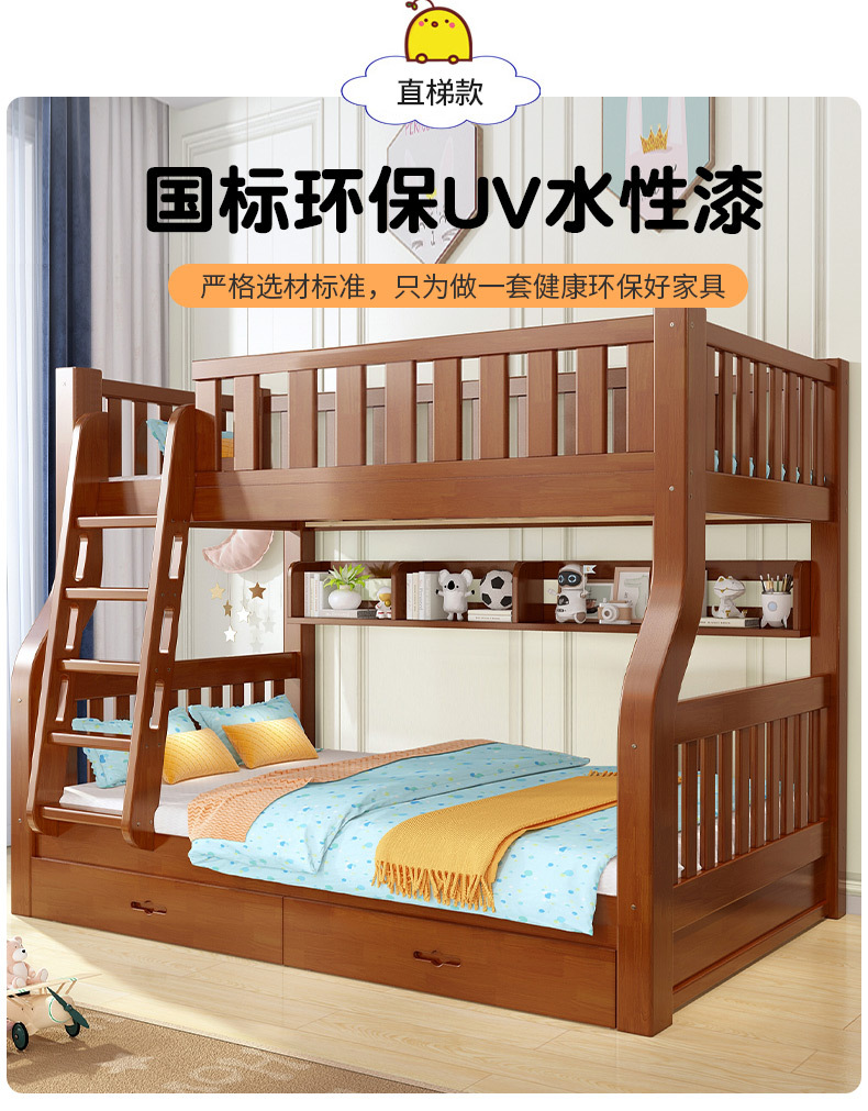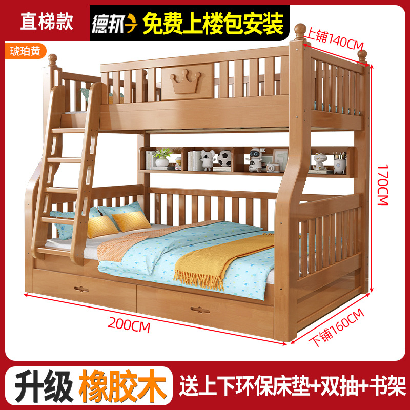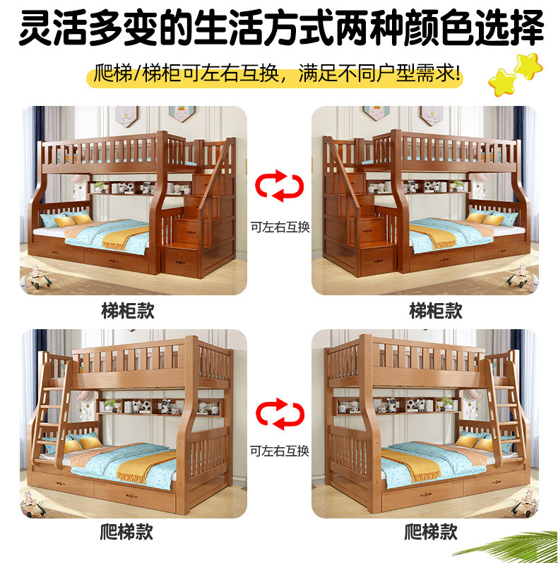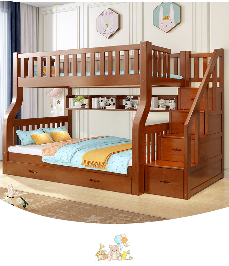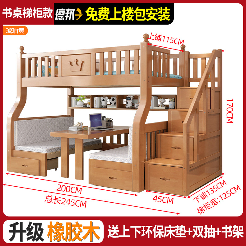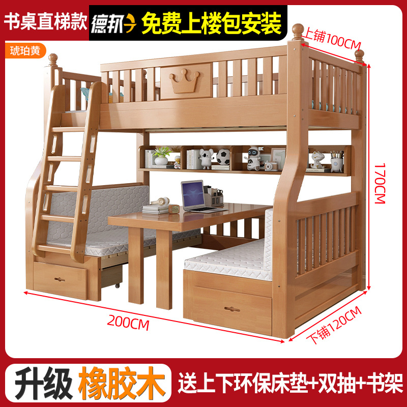 책상이 있는 원목 어린이 이층침대, 어머니용 침대, 성인용 이층침대, 오크 하이앤로우 침대