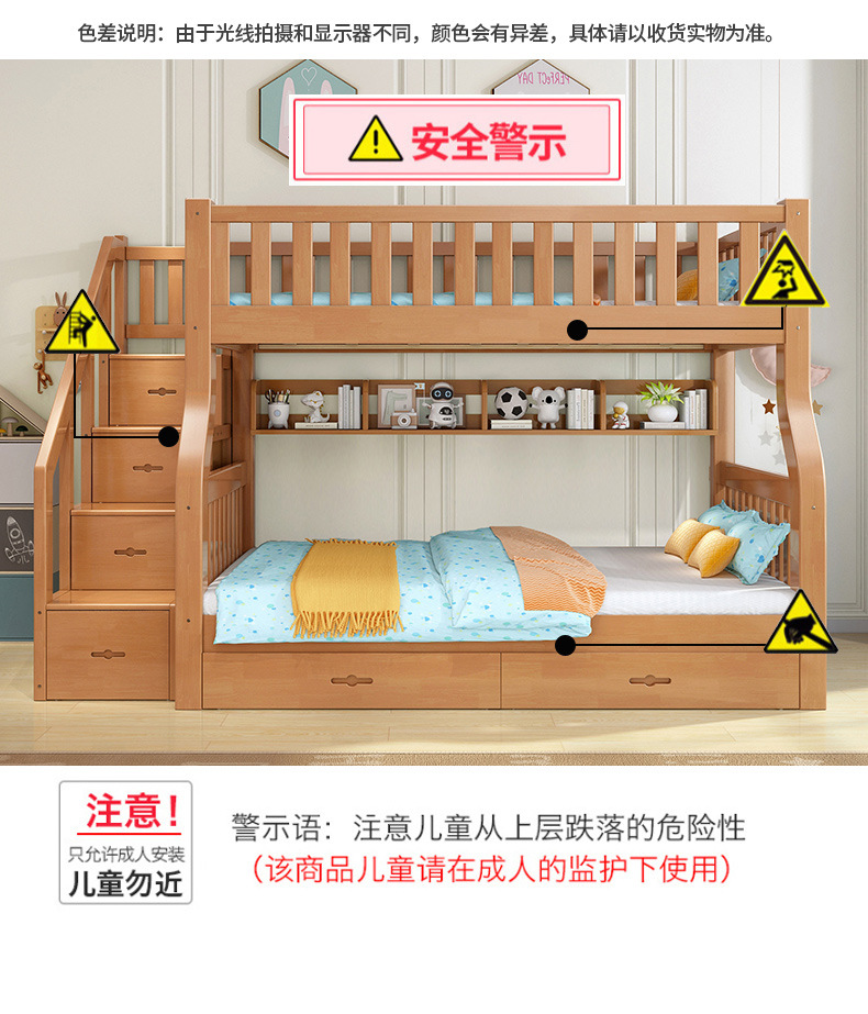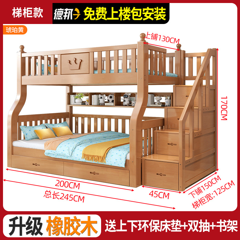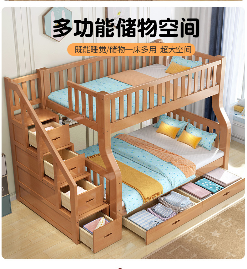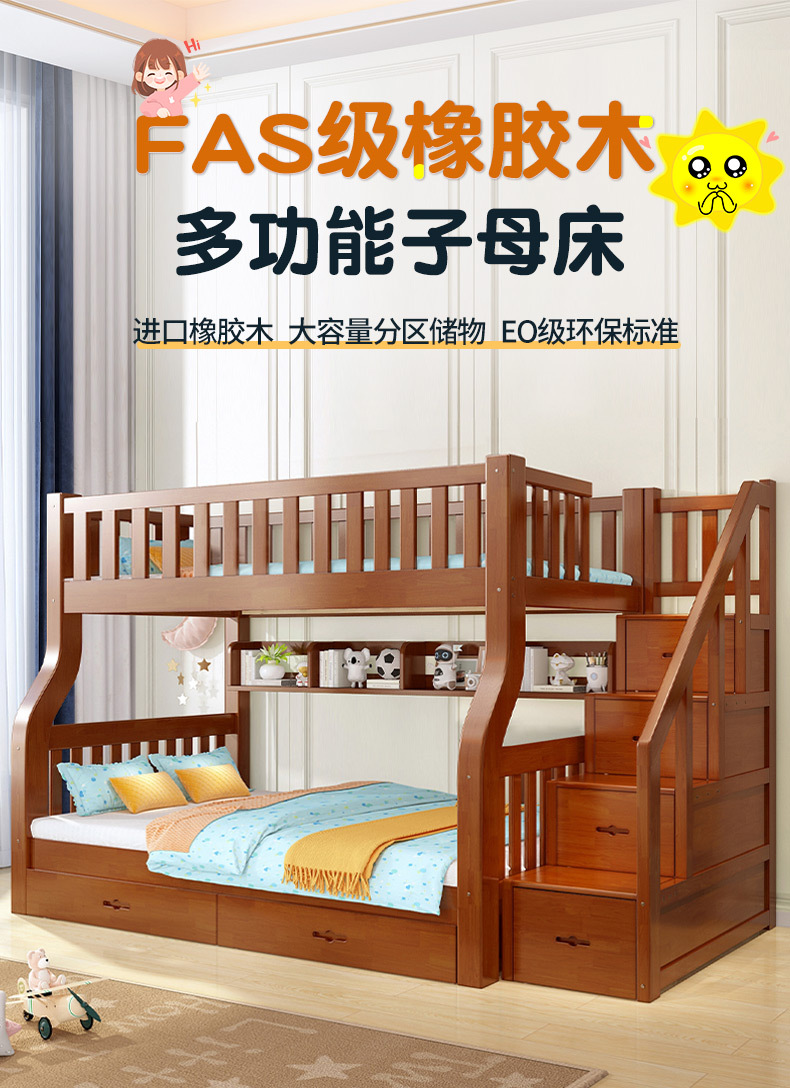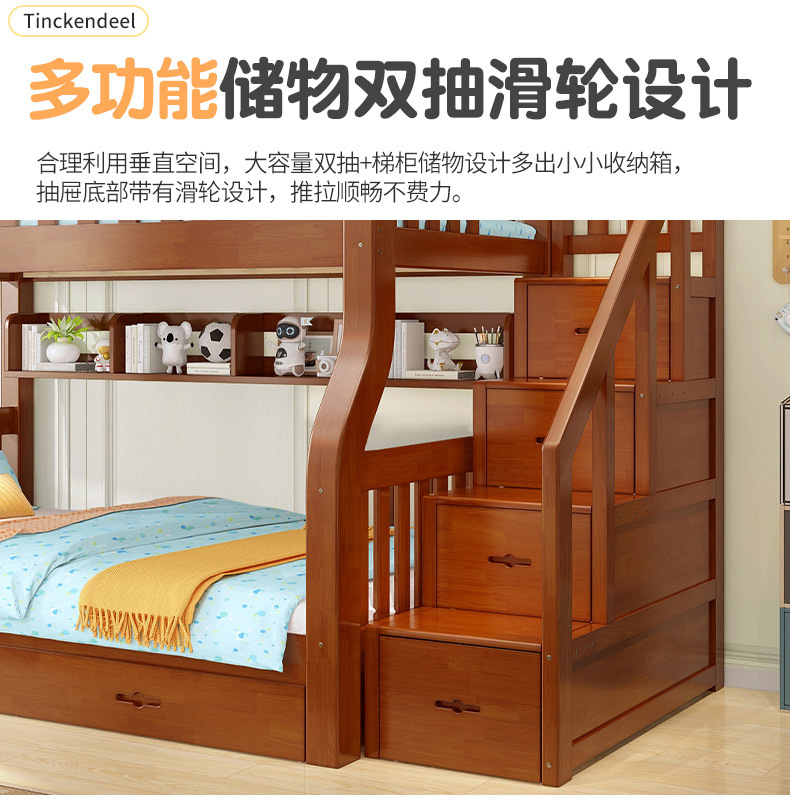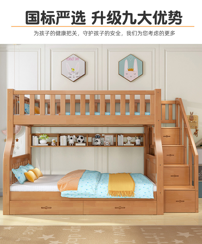 책상이 있는 원목 어린이 이층침대, 어머니용 침대, 성인용 이층침대, 오크 하이앤로우 침대