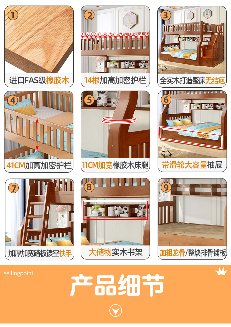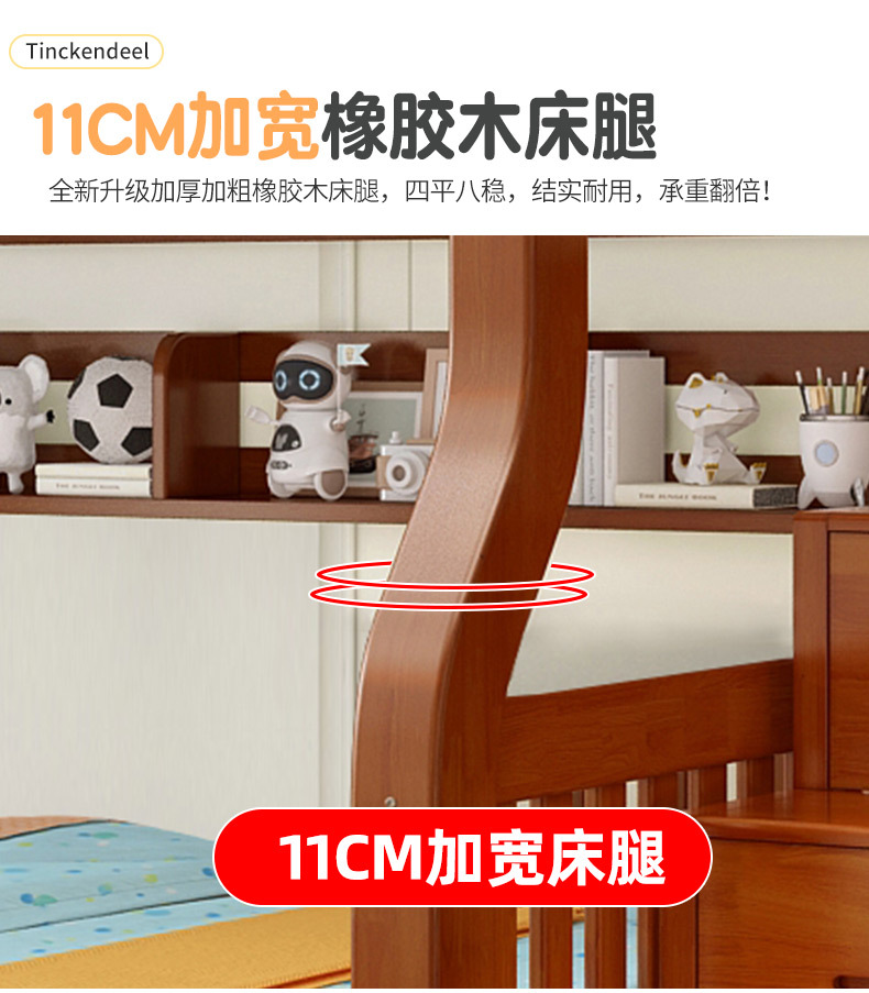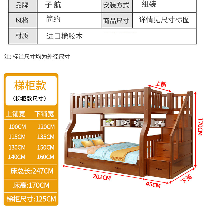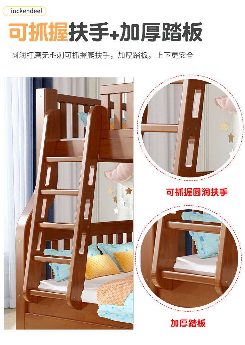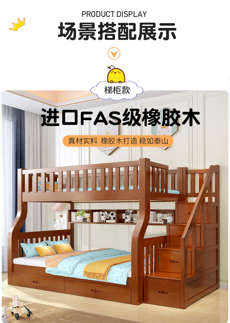 책상이 있는 원목 어린이 이층침대, 어머니용 침대, 성인용 이층침대, 오크 하이앤로우 침대