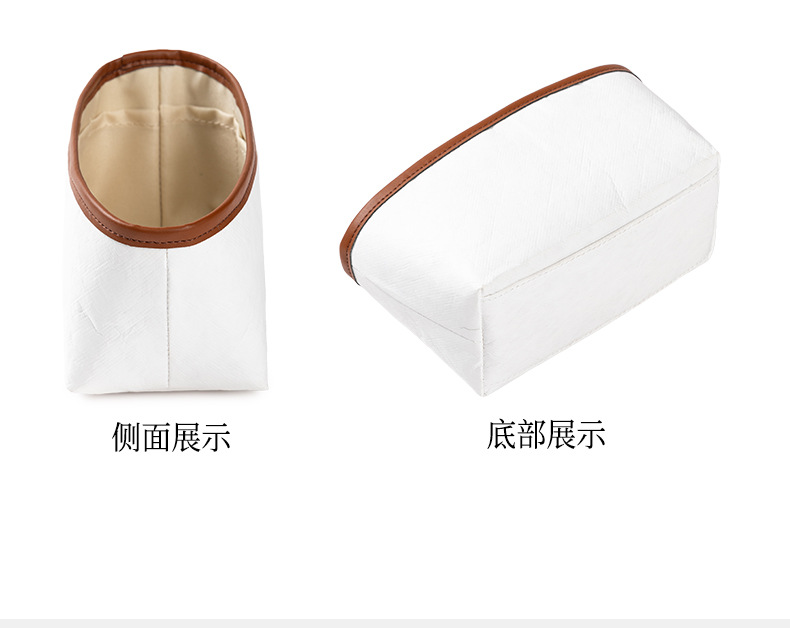 • 짧은 손잡이가 있는 중간 크기 [흰색 듀폰 종이] 내부에 지퍼백과 물컵 홀더가 있음