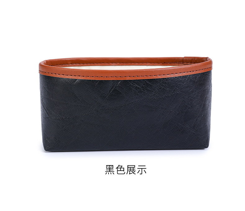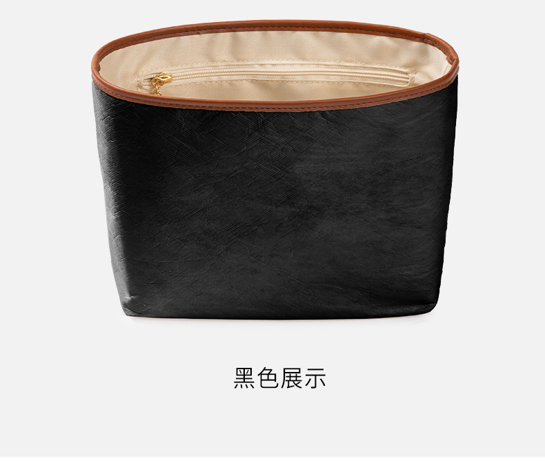 • 짧은 손잡이가 있는 중간 크기 [검은색 듀폰 종이] 내부에 지퍼백과 물컵 홀더가 있음