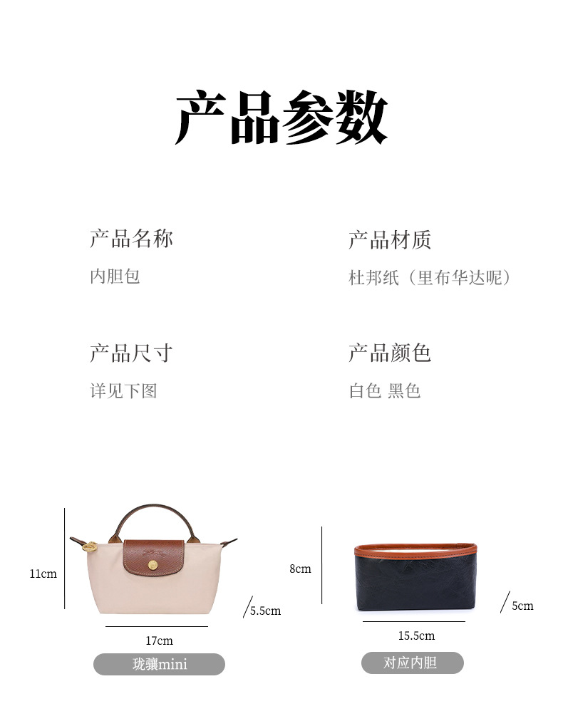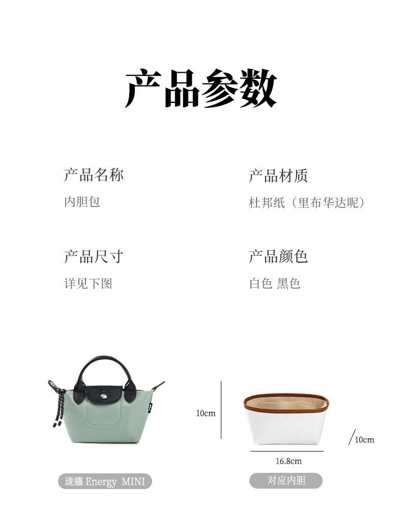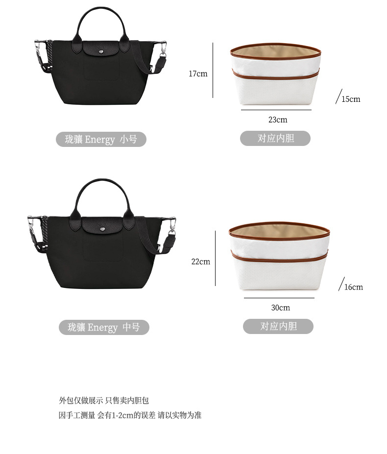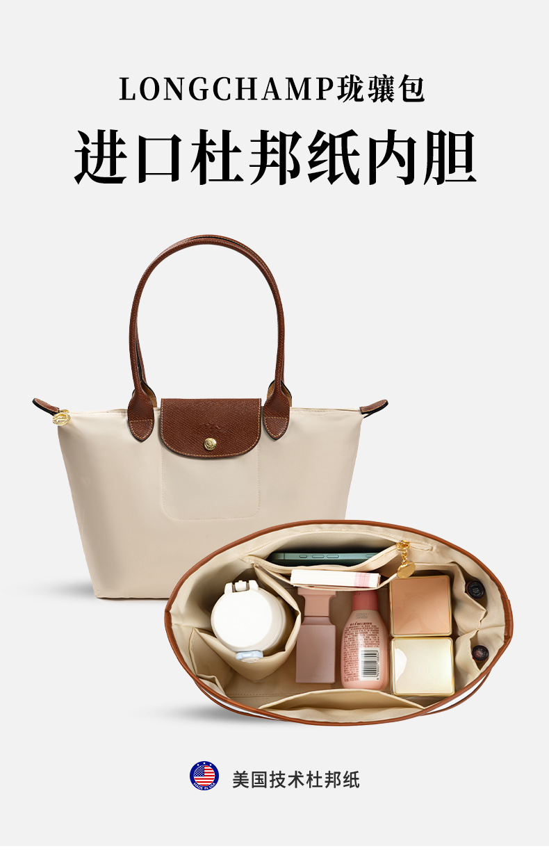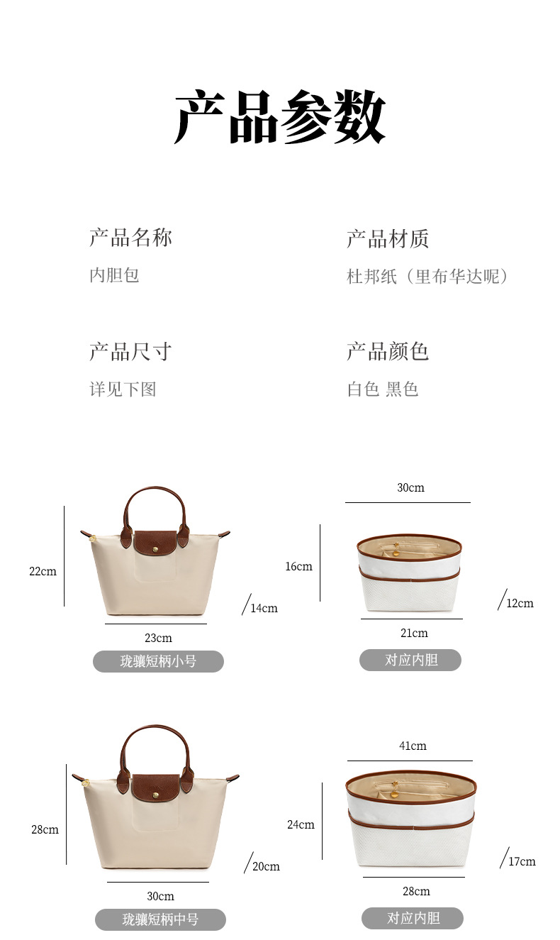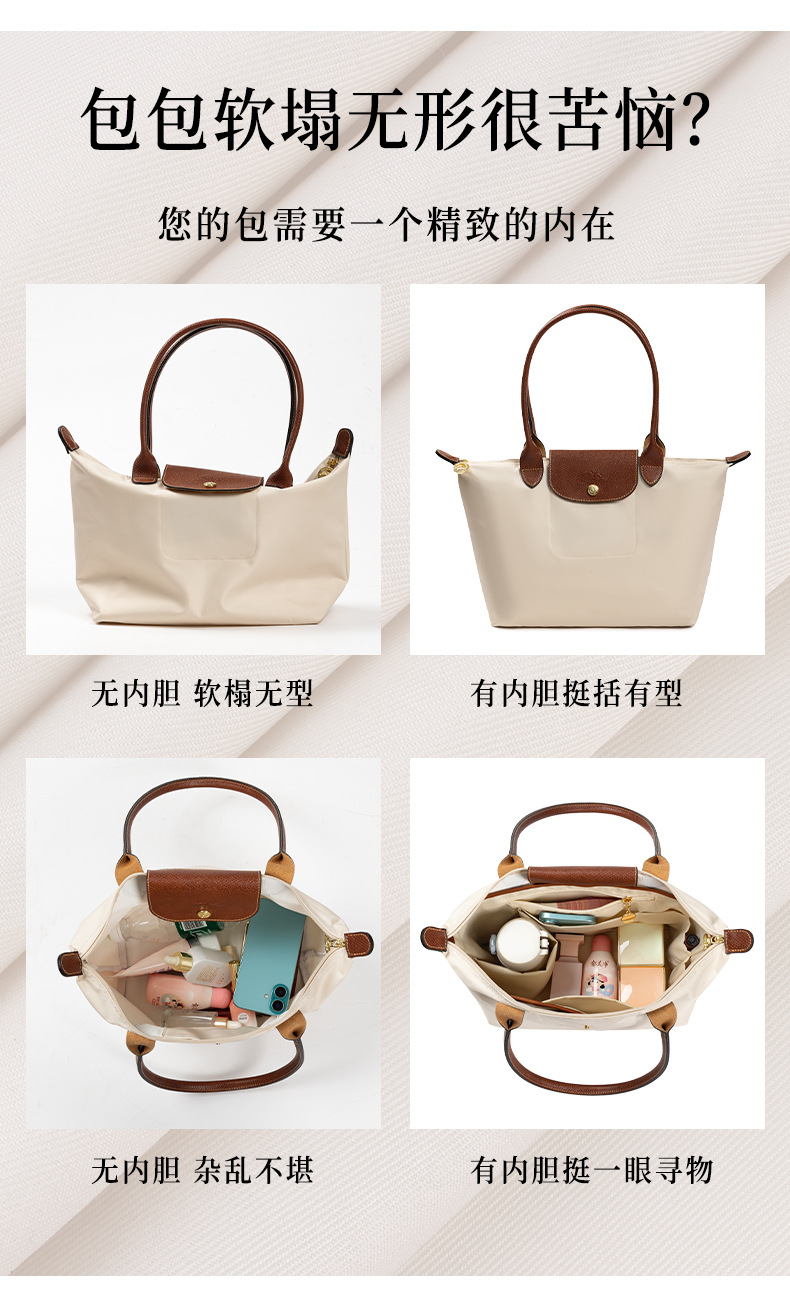 롱샤오백에 적합, 중간 가방, 듀폰 종이 라이너, 길고 짧은 손잡이, 대형, 중형 및 소형 내부 가방, 분리형 수납 가방 안감