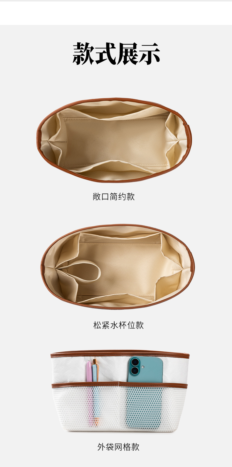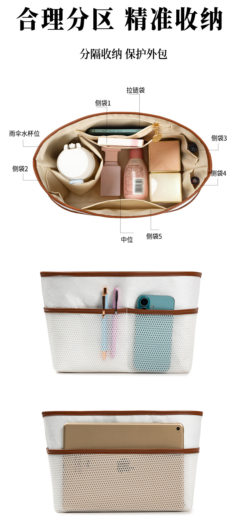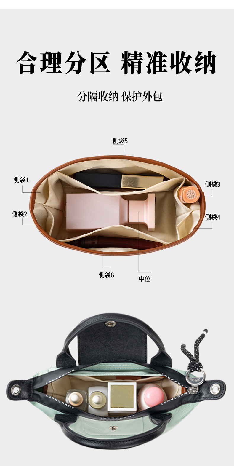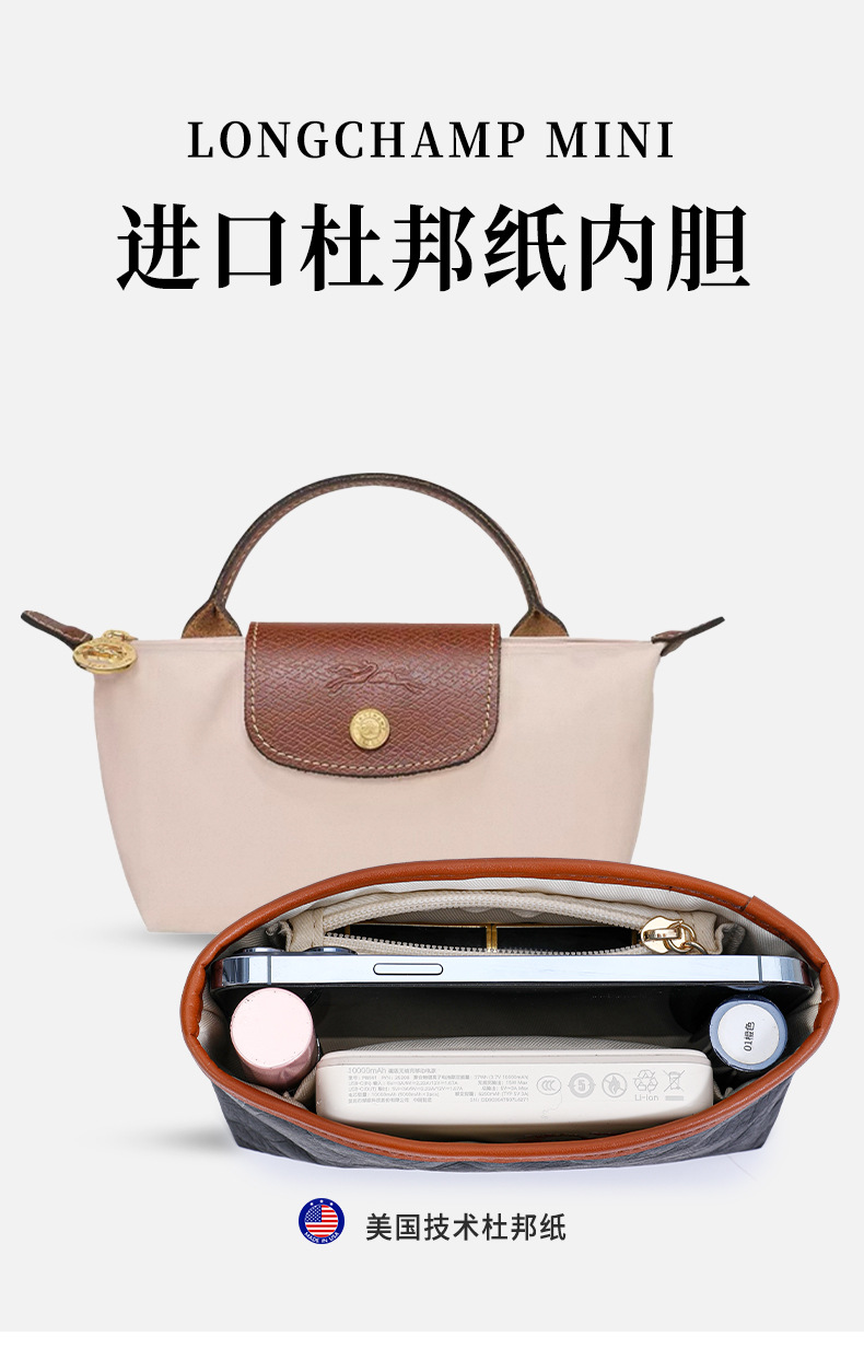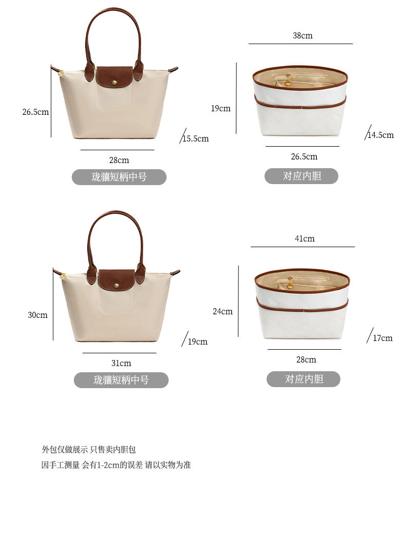 롱샤오백에 적합, 중간 가방, 듀폰 종이 라이너, 길고 짧은 손잡이, 대형, 중형 및 소형 내부 가방, 분리형 수납 가방 안감