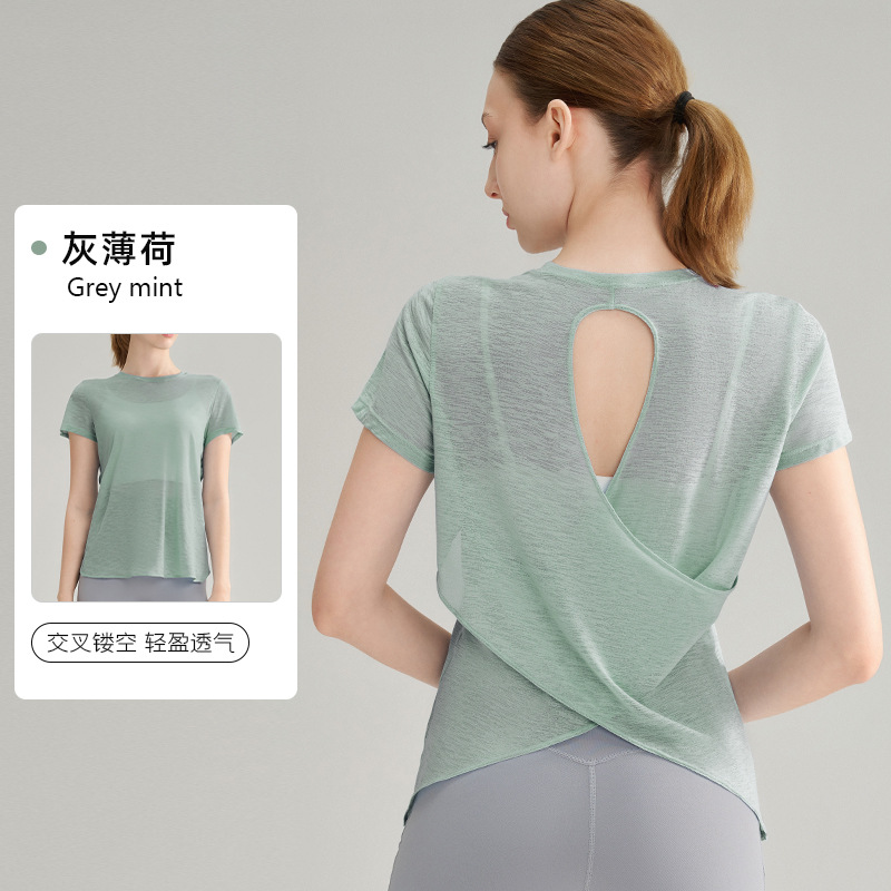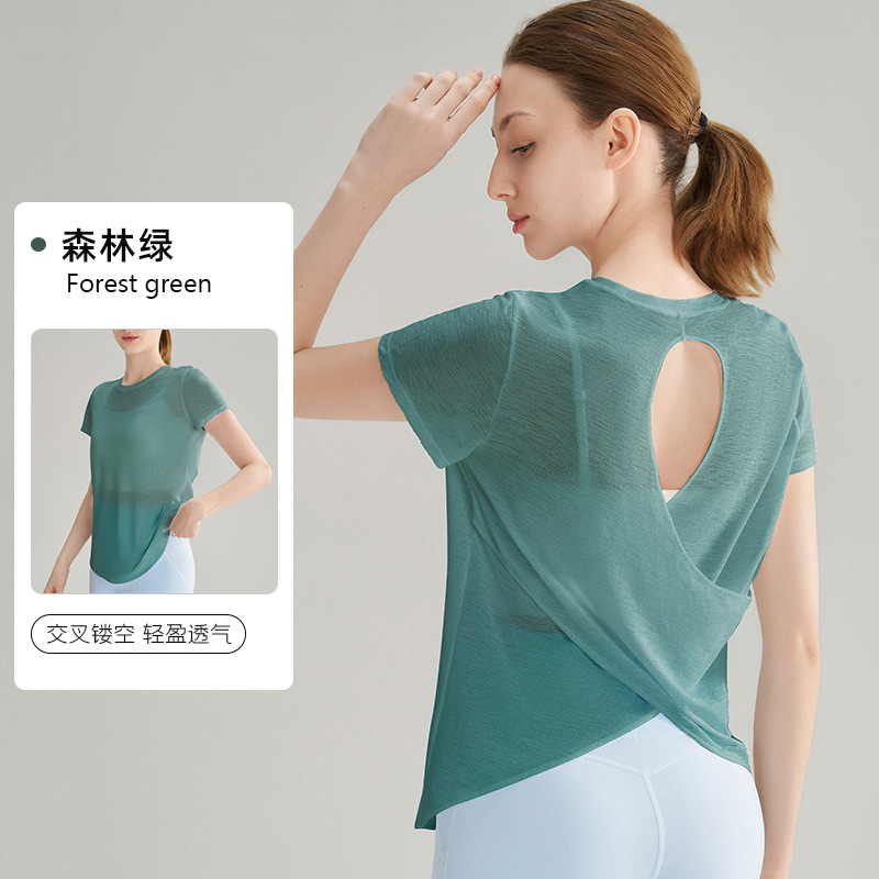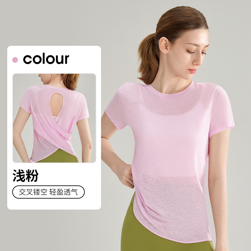 대나무 섬유 스포츠 반팔 상의, 통기성 좋은 피트니스 요가 커버업, 여성용 요가 조끼, 일체형 가슴 패드 포함스토어 가기