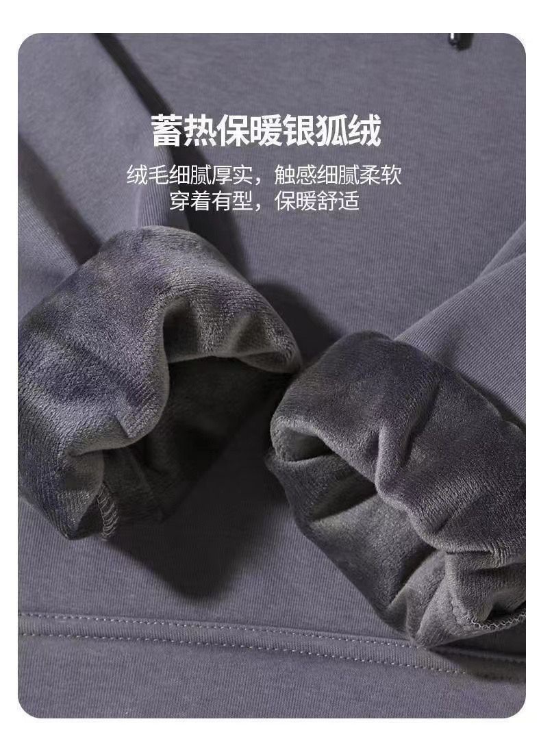 • 후드 스웨트셔츠 레터 체크 자수 플러스 벨벳 아이언 그레이