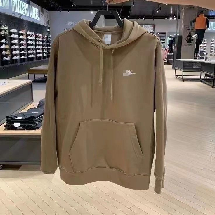 • 후드 스웨트셔츠 레터 체크 자수 플러스 벨벳 카키