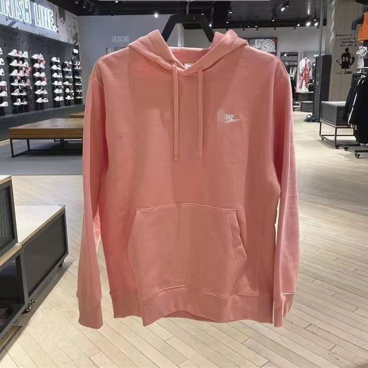 • 후드 스웨트셔츠 레터 체크 자수 플러스 벨벳 핑크