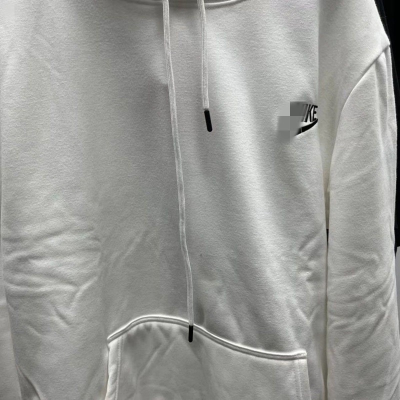 • 후드 스웨트셔츠 레터 체크 자수 플러스 벨벳 화이트