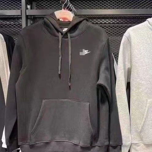 • 후드 스웨트셔츠 레터 체크 자수 플러스 벨벳 블랙