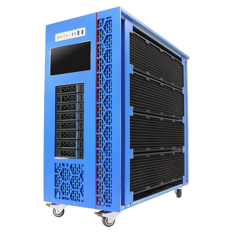 拓普龙塔式机箱尺寸为L633*W280*H570MM,硬盘背板:一组 8盘位3.5寸硬盘背板,支持4个480冷排位,采用分水器方式,在计算性能、拓展能力、温度控制、稳定性等方面都显示出超凡的实力,能最大程度满足人工智能等新兴领域的开发与应用,适用于HPC、大数据分析、3D 图形应用、视频解码、深度学习、科学计算等应用场景。