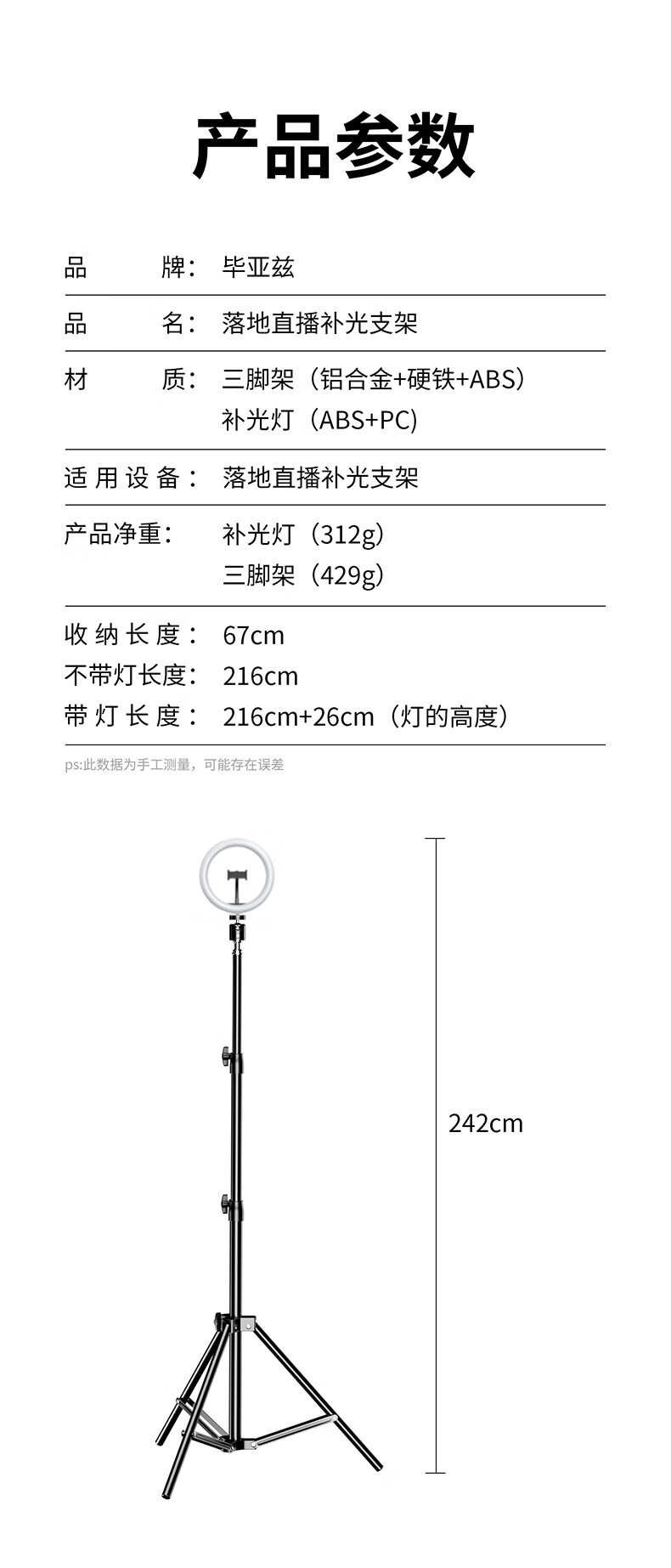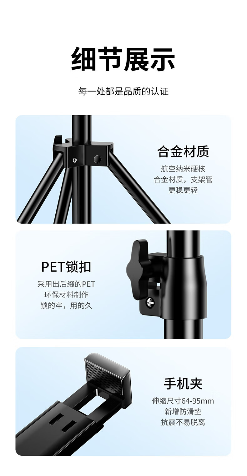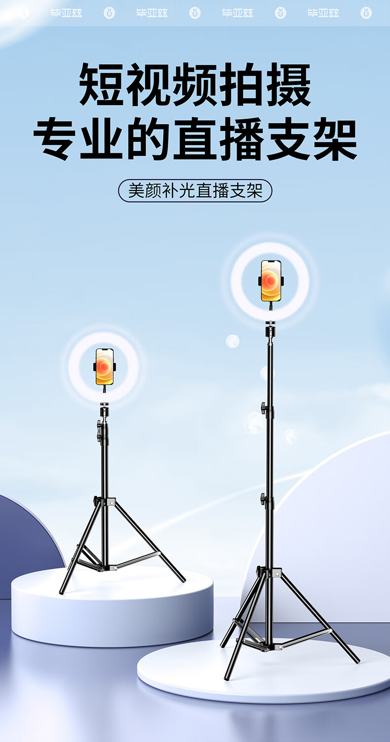 Biaz 2.1m + 뷰티 필 라이트 휴대 전화 라이브 방송 스탠드 삼각대 휴대용 리프팅 인터넷 연예인 Douyin B56스토어 가기