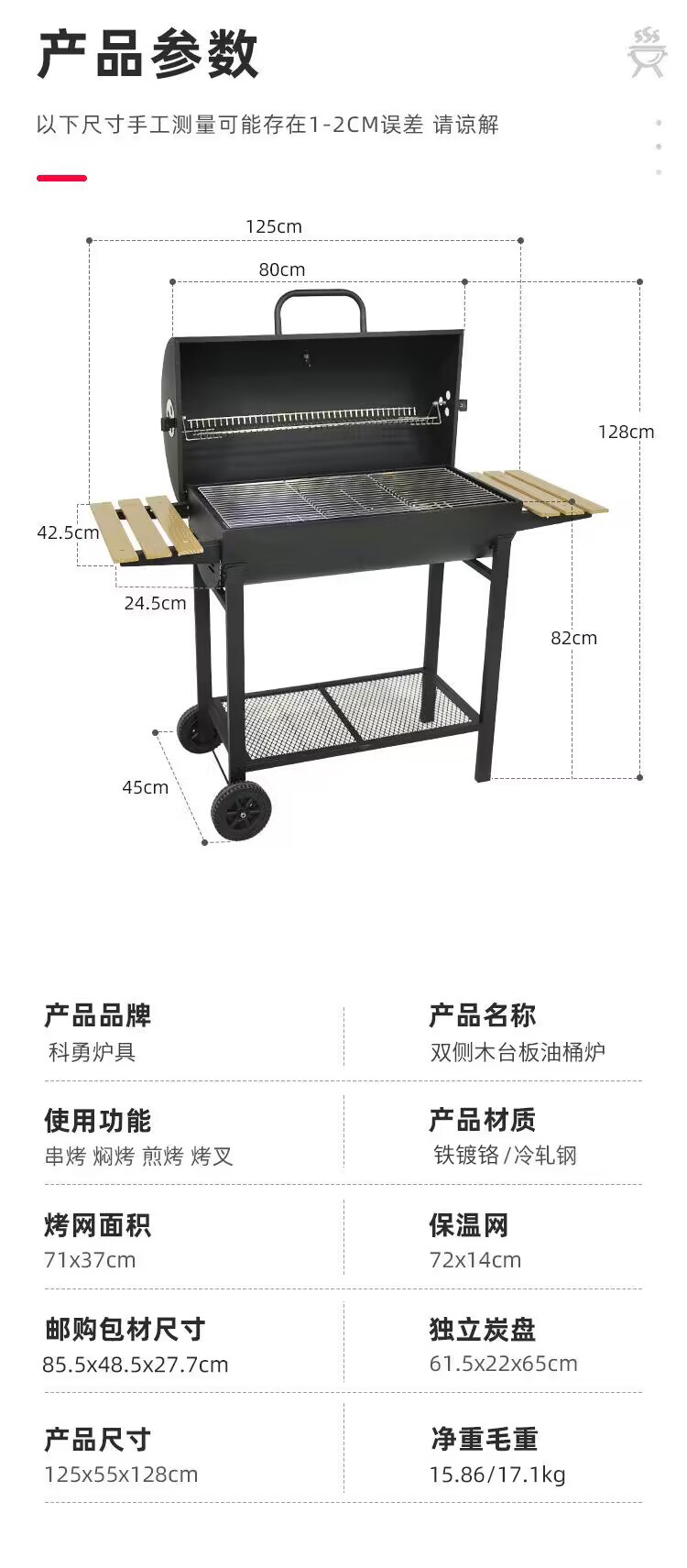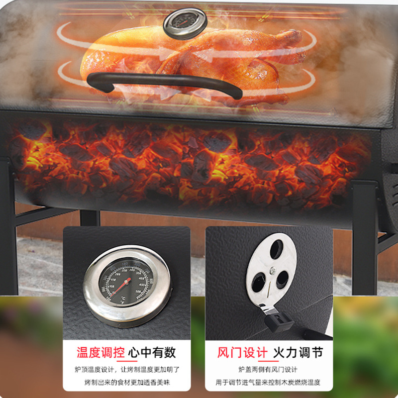 ♔ 양측 테이블 플레이트 대형 숯불 훈제 오븐 가정용 바베큐 오븐 야외 두꺼운 미국식 캠핑 숯불 오븐