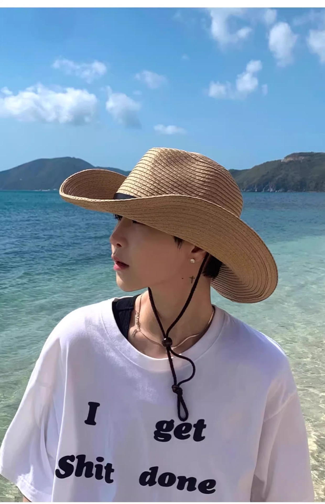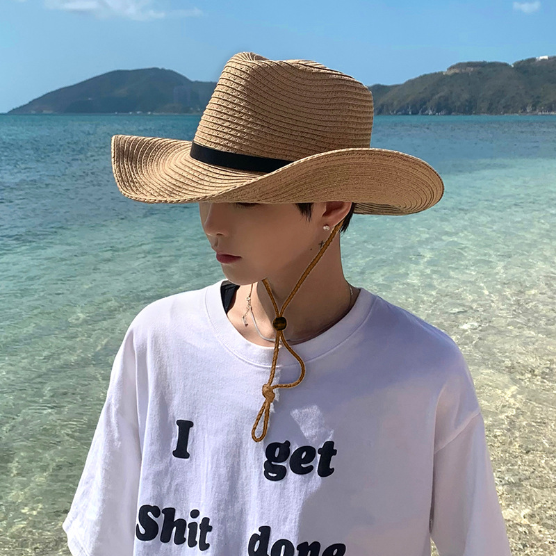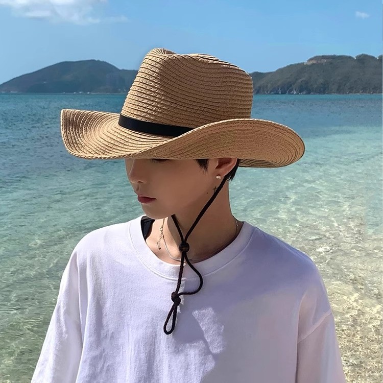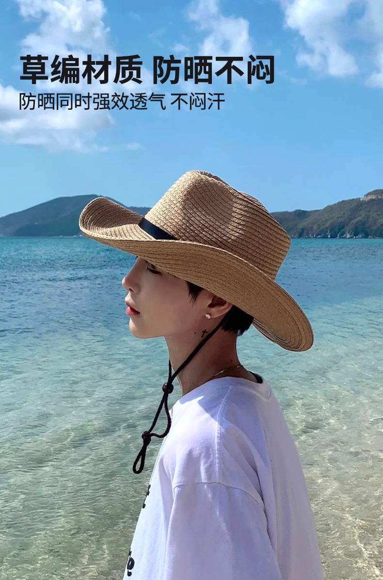 밀짚모자 남성 여름 얼굴 가리개 비치 모자 남성 자외선 차단 모자 등산용 태양 모자 남성 여행용 태양 모자 건설 현장스토어 가기