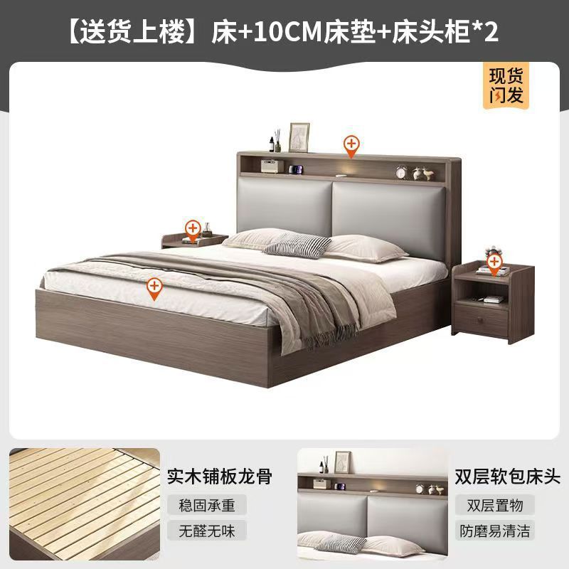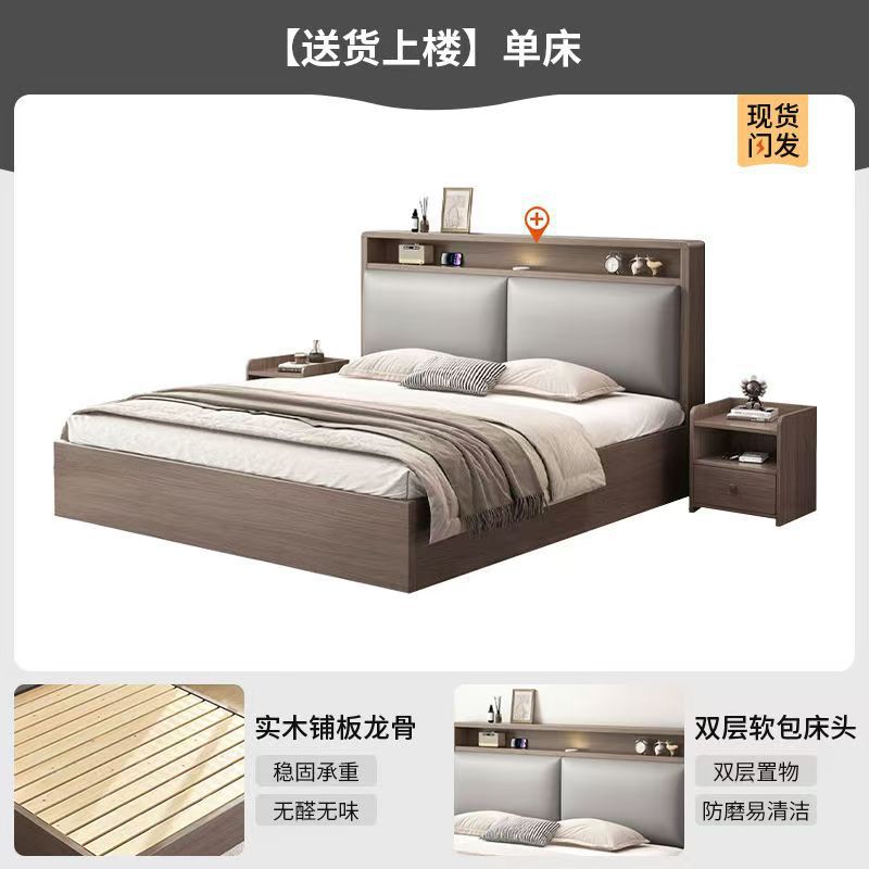 원목 침대 더블 1.82m 마스터 침실 홈 1.5m 소형 아파트 임대 B&B 1.2 심플 싱글 침대스토어 가기