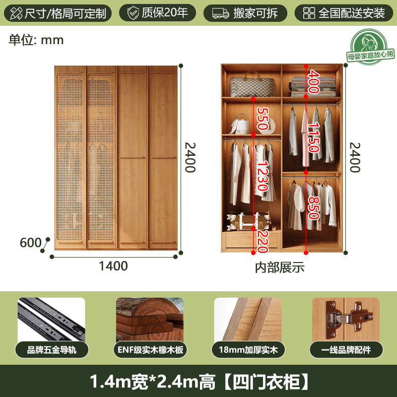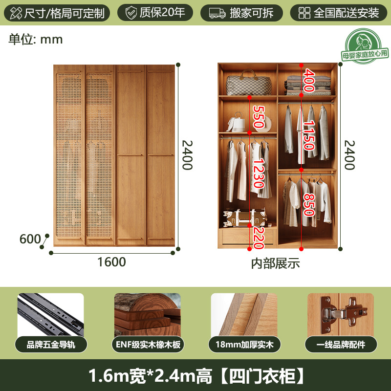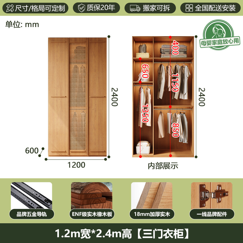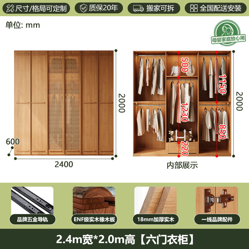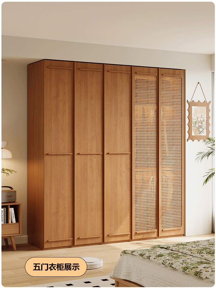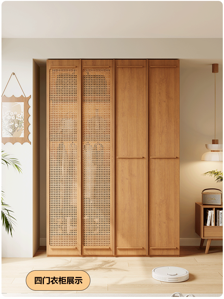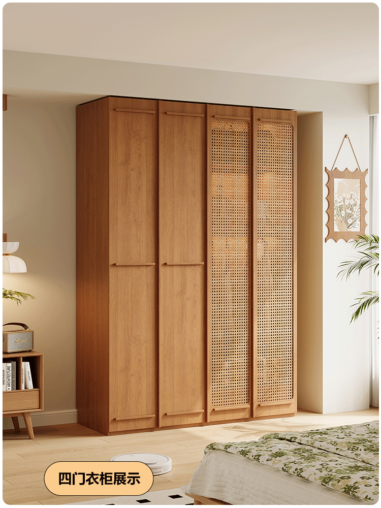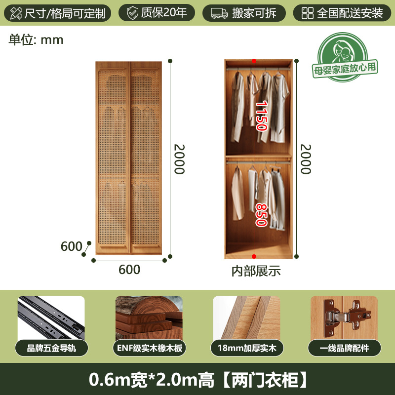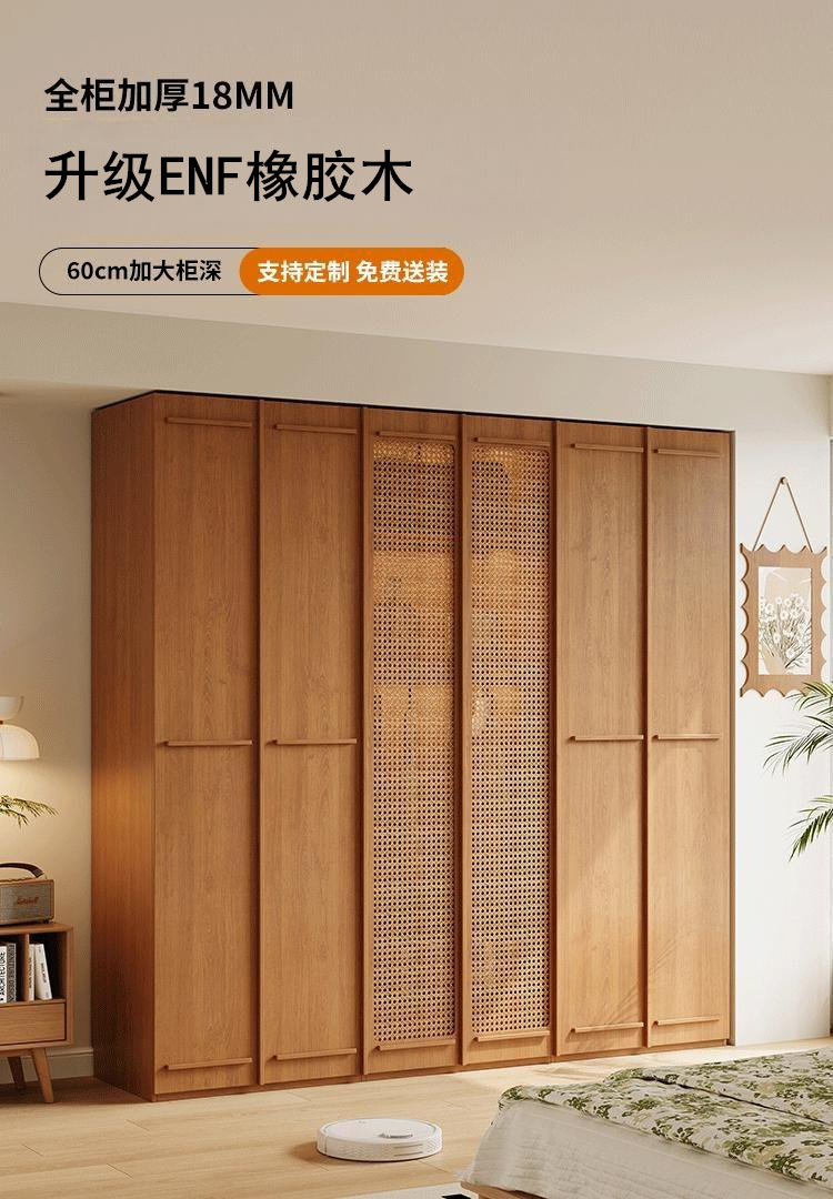 ENF 등급 단단한 나무 옷장 2025 새로운 스타일의 등나무 문 뼈대 침실 보관 캐비닛 원 도어 대형 옷장스토어 가기