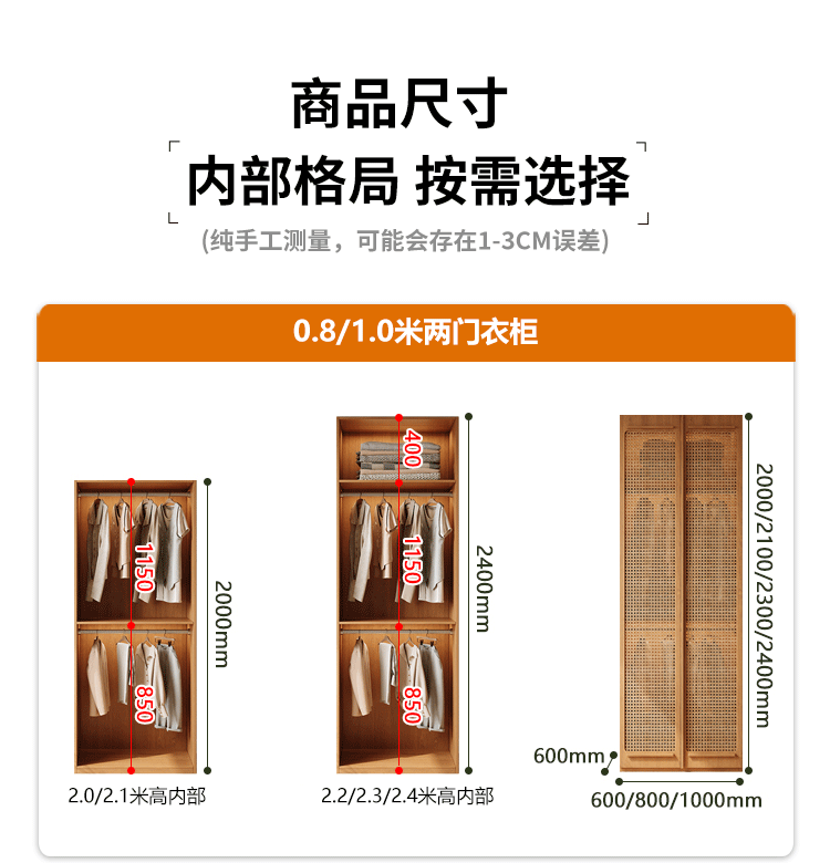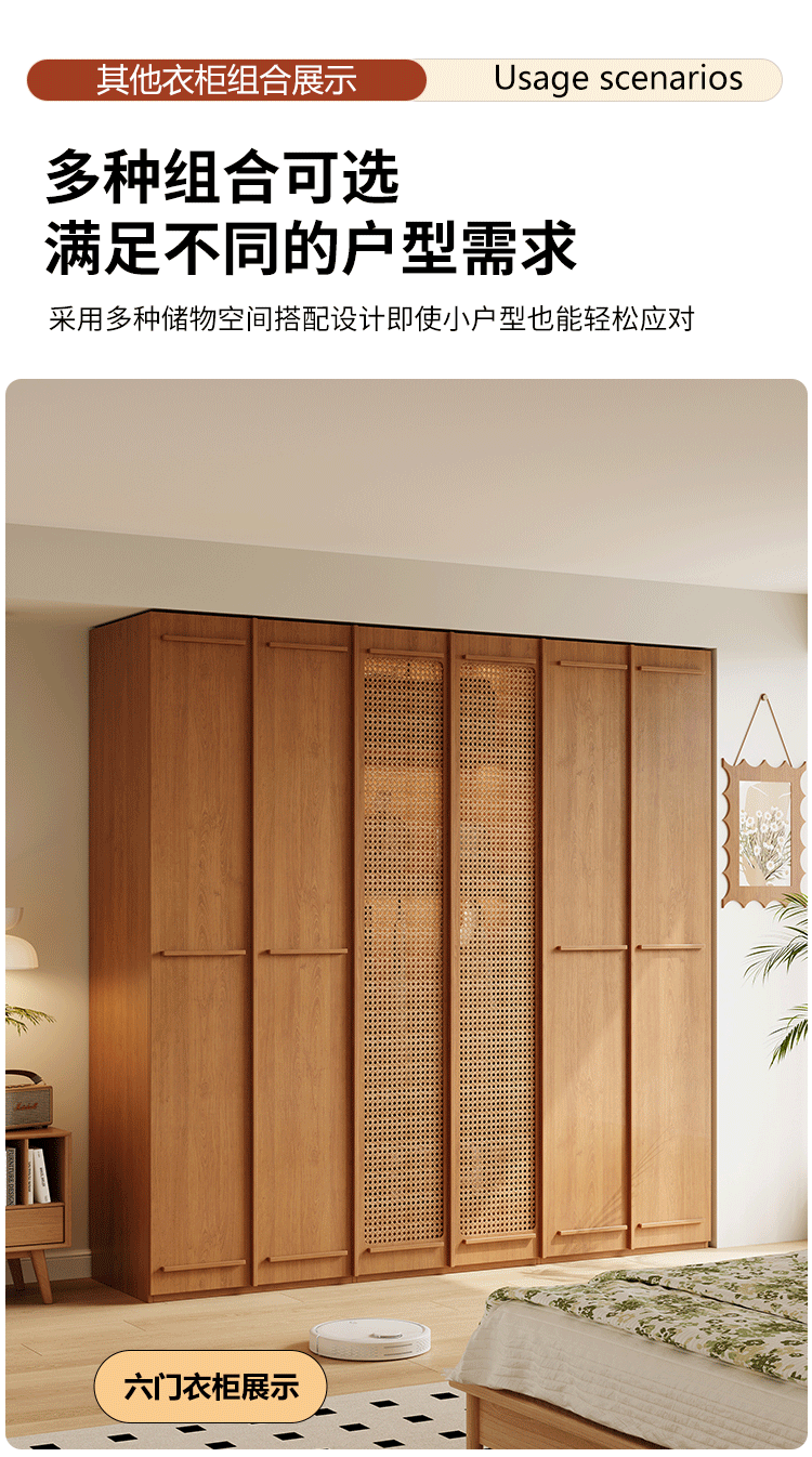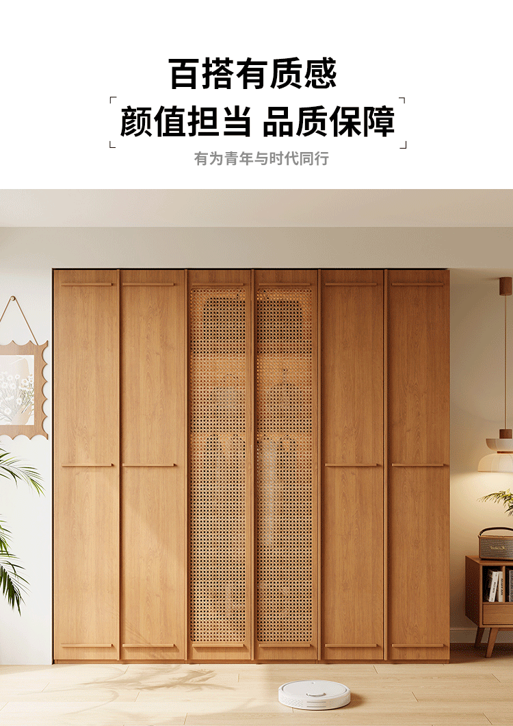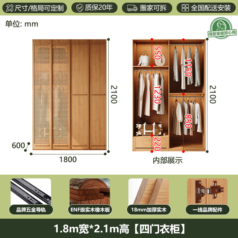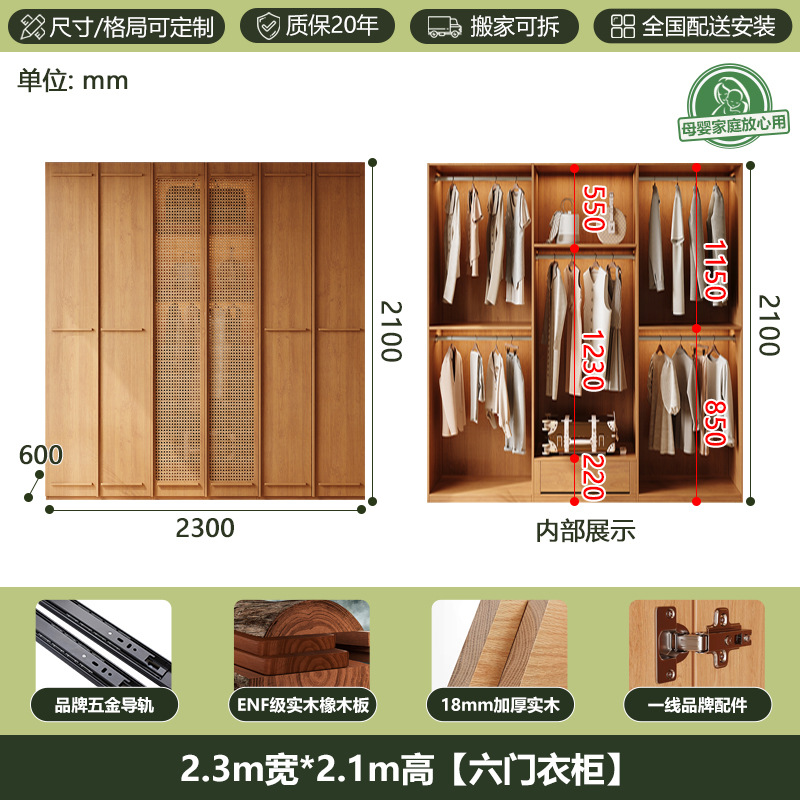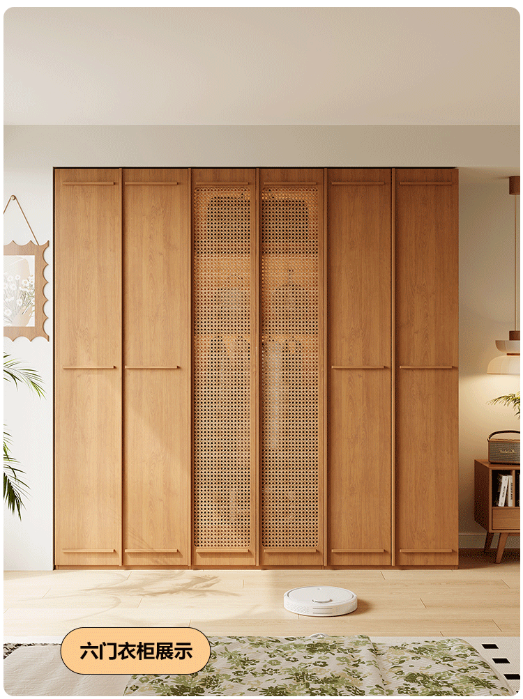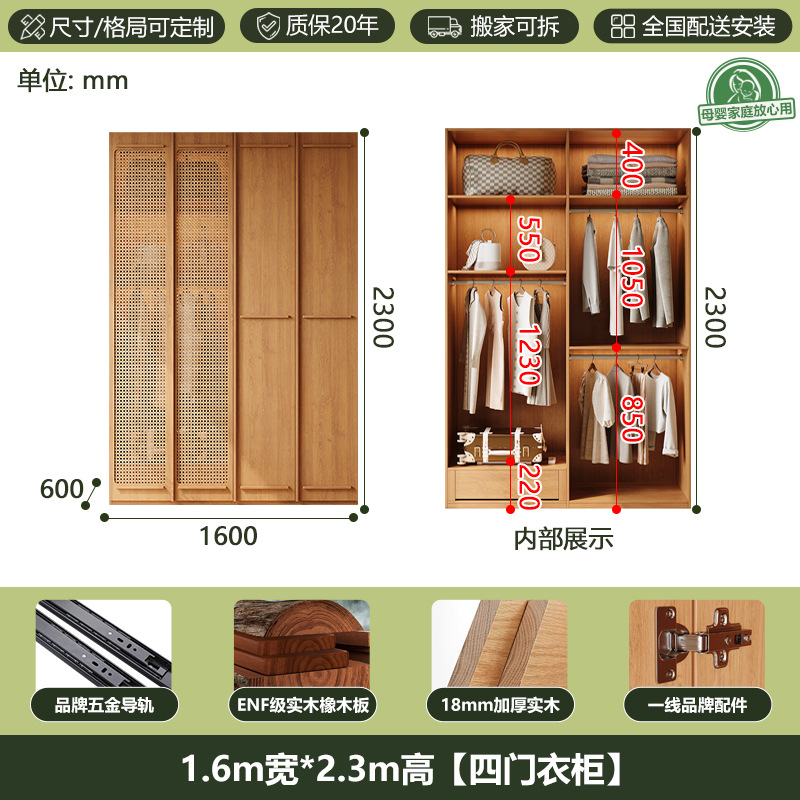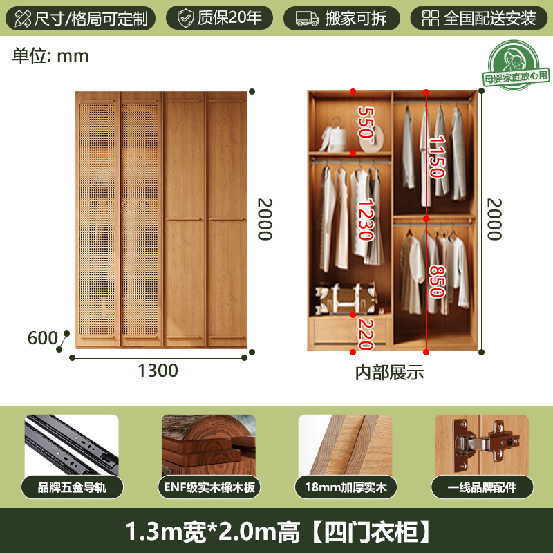 ENF 등급 단단한 나무 옷장 2025 새로운 스타일의 등나무 문 뼈대 침실 보관 캐비닛 원 도어 대형 옷장스토어 가기