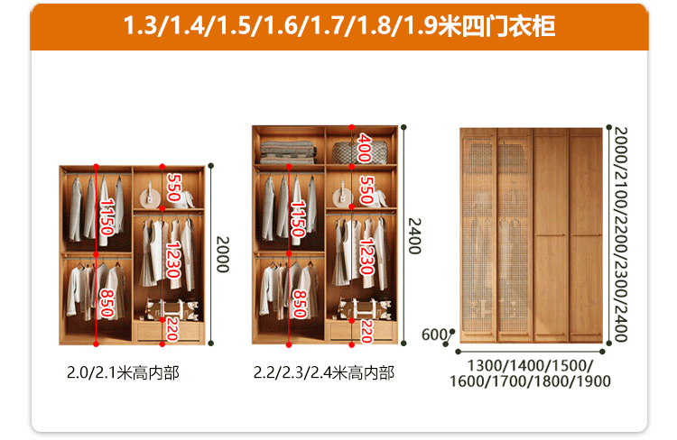 • [폭 1.8m*높이 2.4m] 4도어 옷장, 모두 원목 ENF 등급