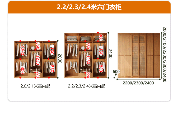 • [폭 2.2m*높이 2.4m] 6도어 옷장, 모두 원목 ENF 등급