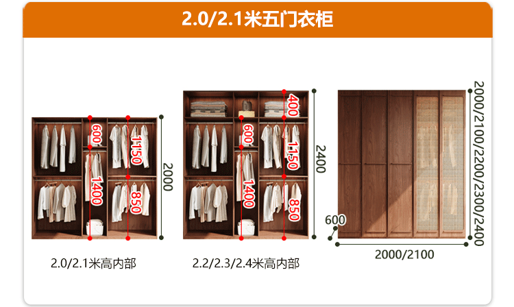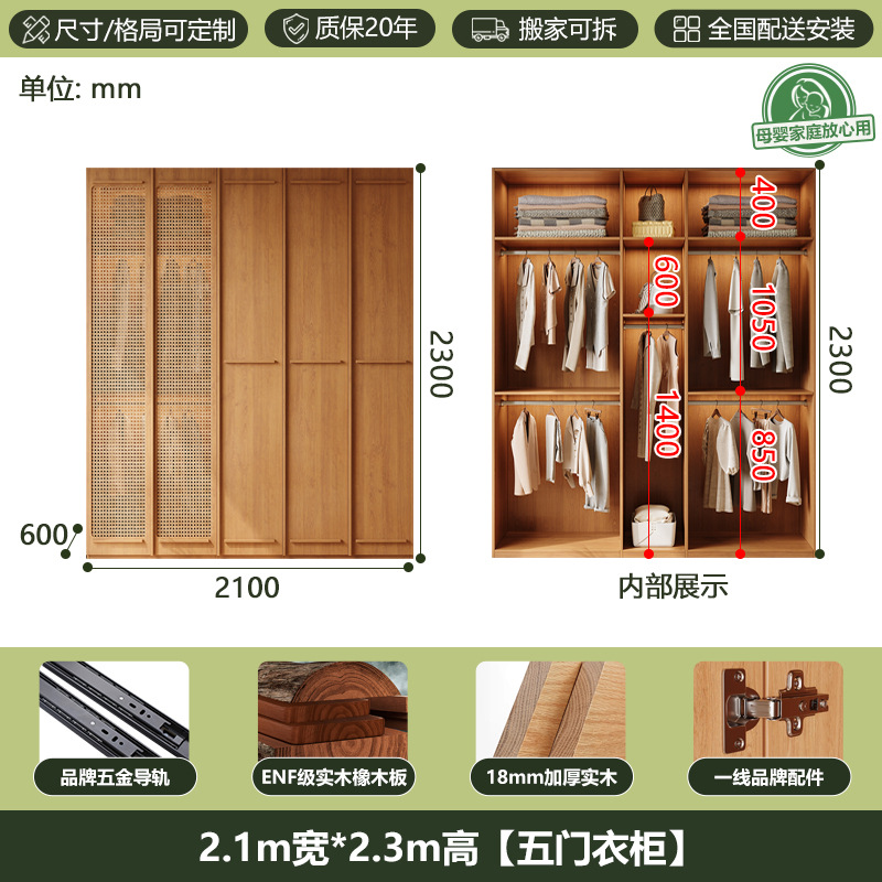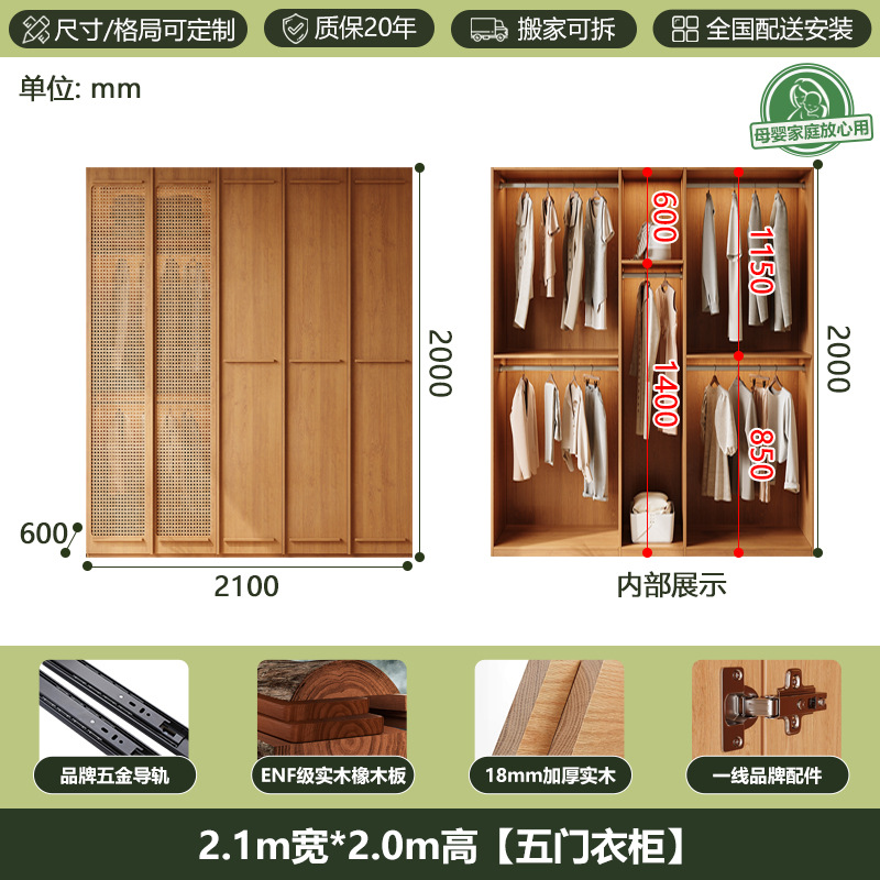 • [폭 2.0m*높이 2.0m] 5도어 옷장, 모두 원목 ENF 등급