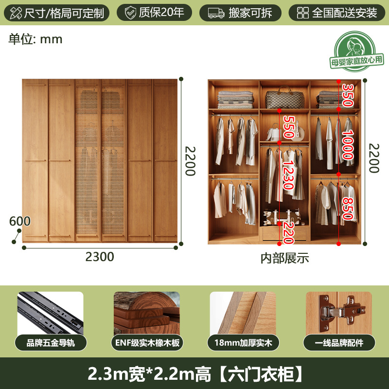 • [폭 2.2m*높이 2.2m] 6도어 옷장, 모두 원목 ENF 등급