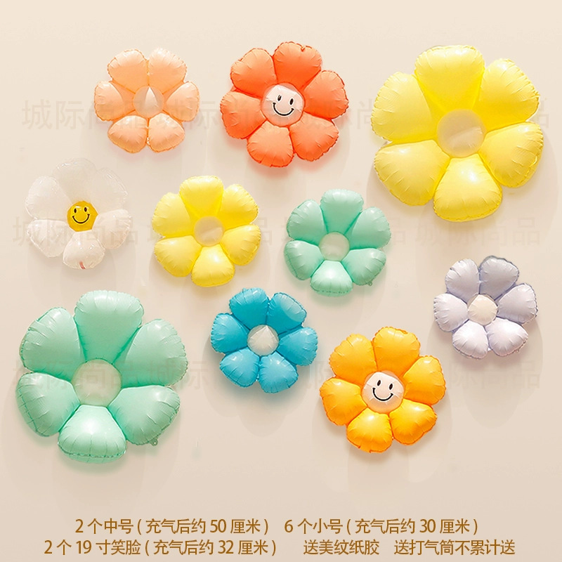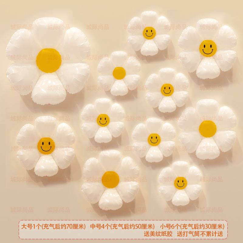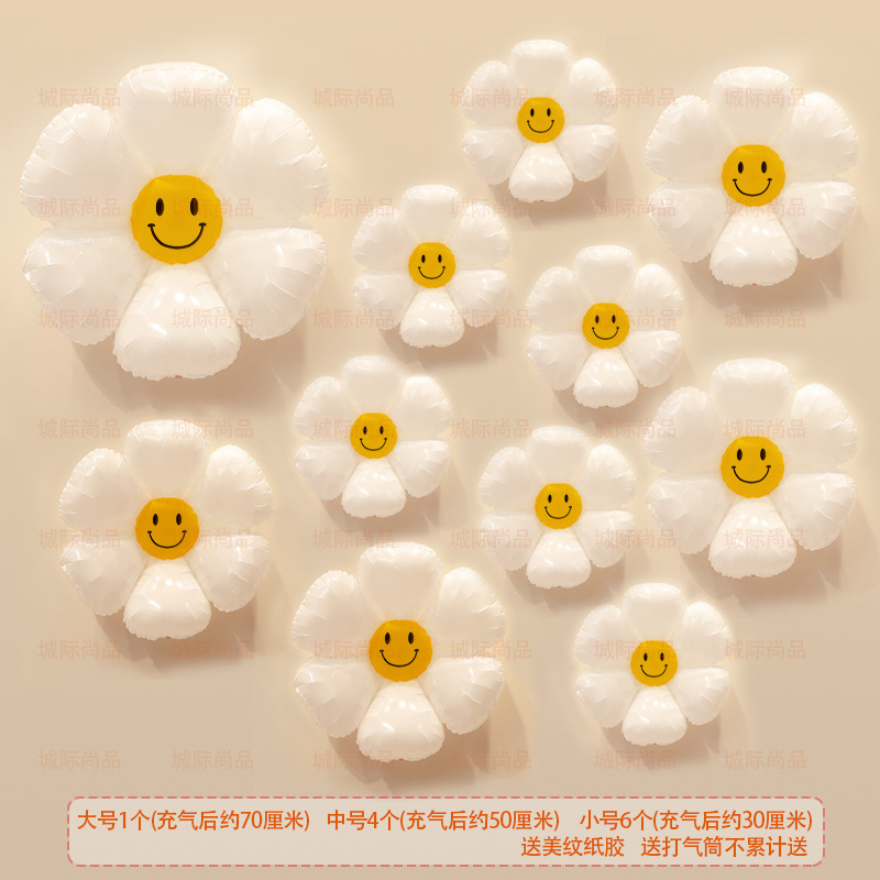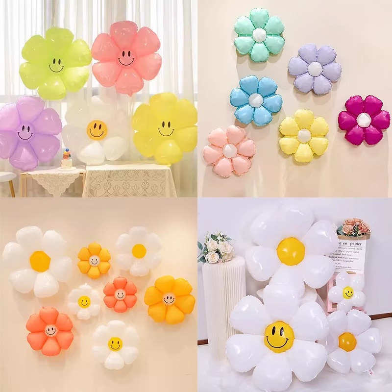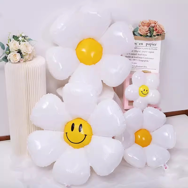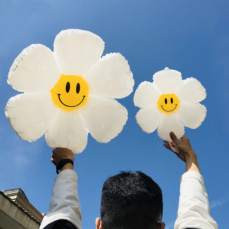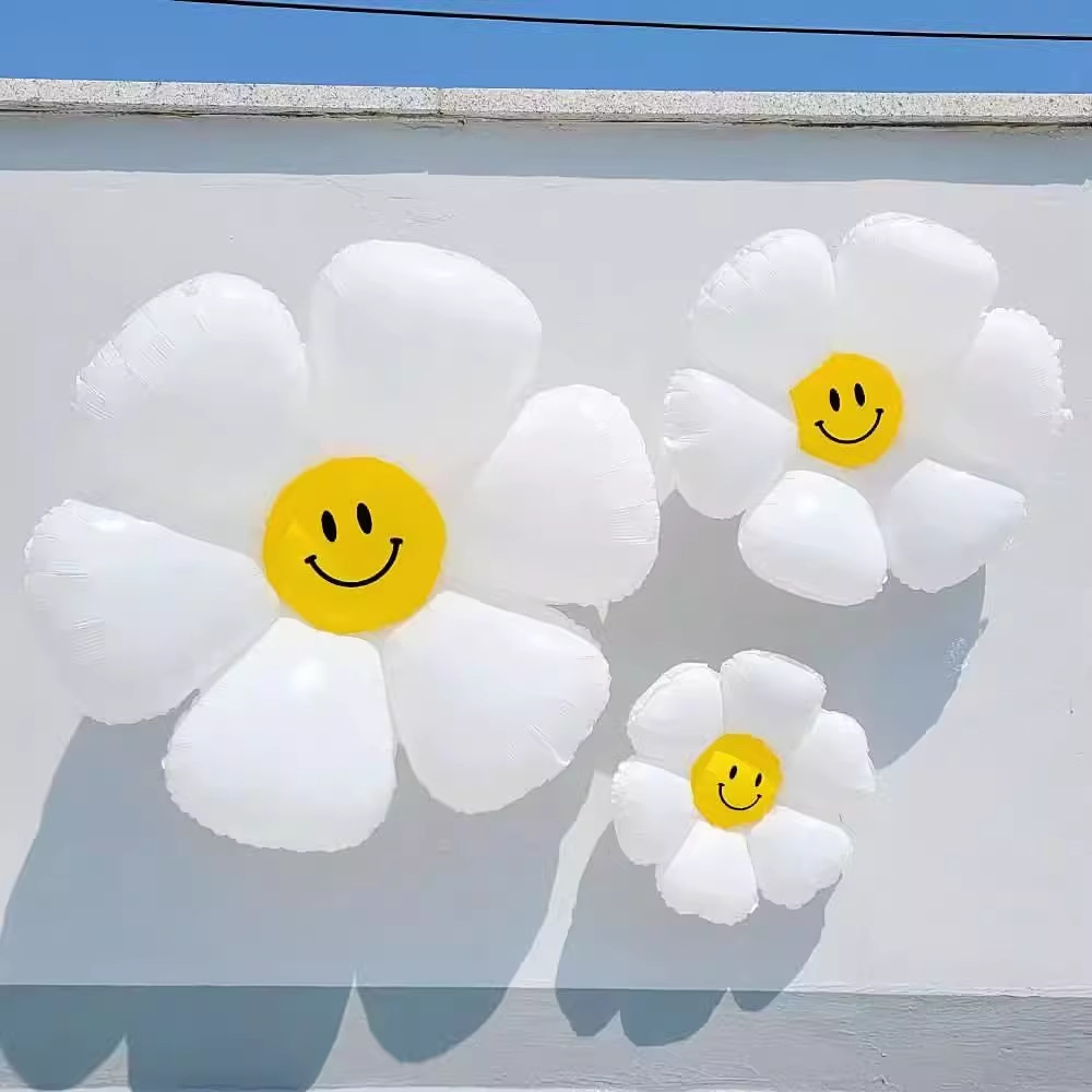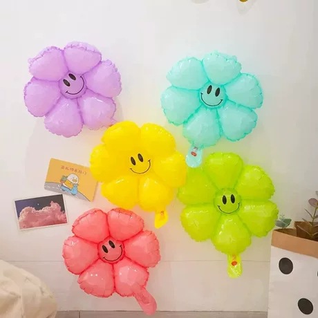 인기 스마일 데이지 알루미늄 필름 풍선 꽃 스마일 꽃 풍선 캠핑 생일 100일 기념 개학 매장 기념 장식