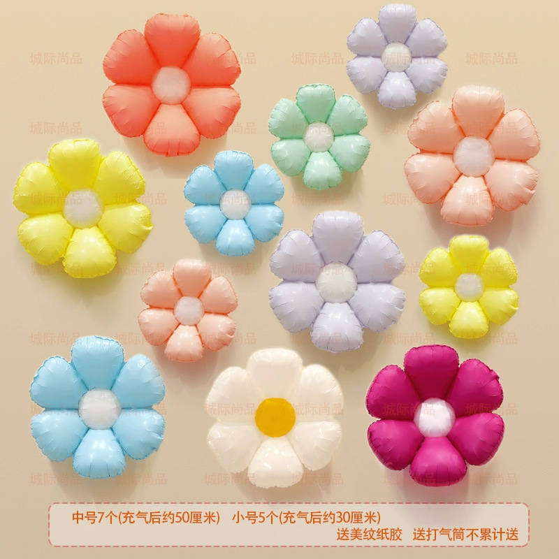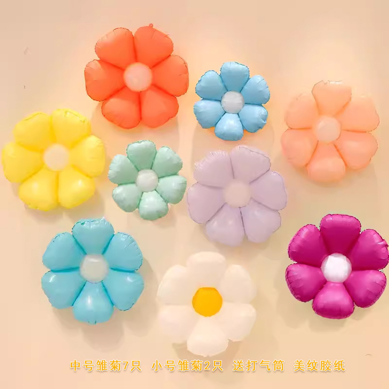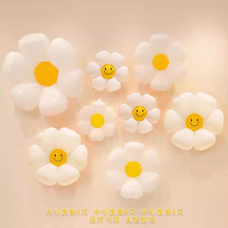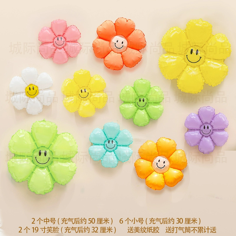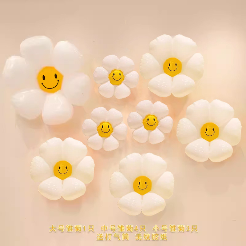 인기 스마일 데이지 알루미늄 필름 풍선 꽃 스마일 꽃 풍선 캠핑 생일 100일 기념 개학 매장 기념 장식스토어 가기