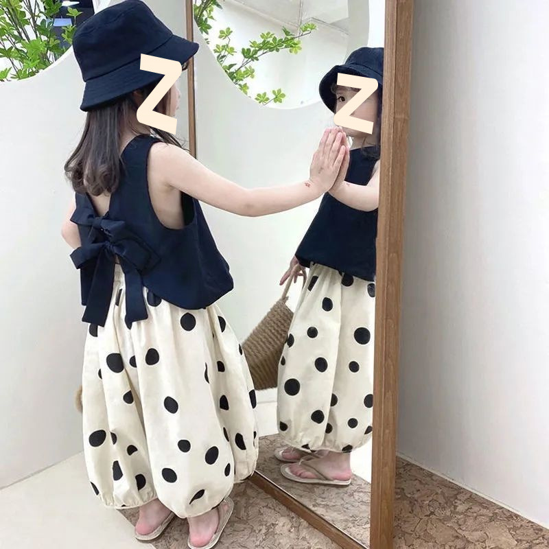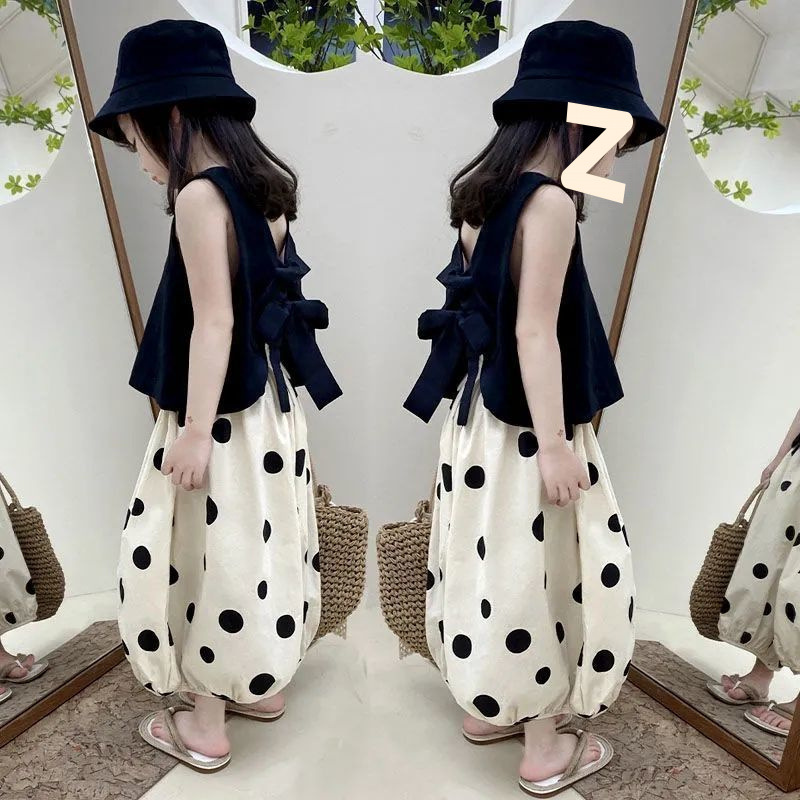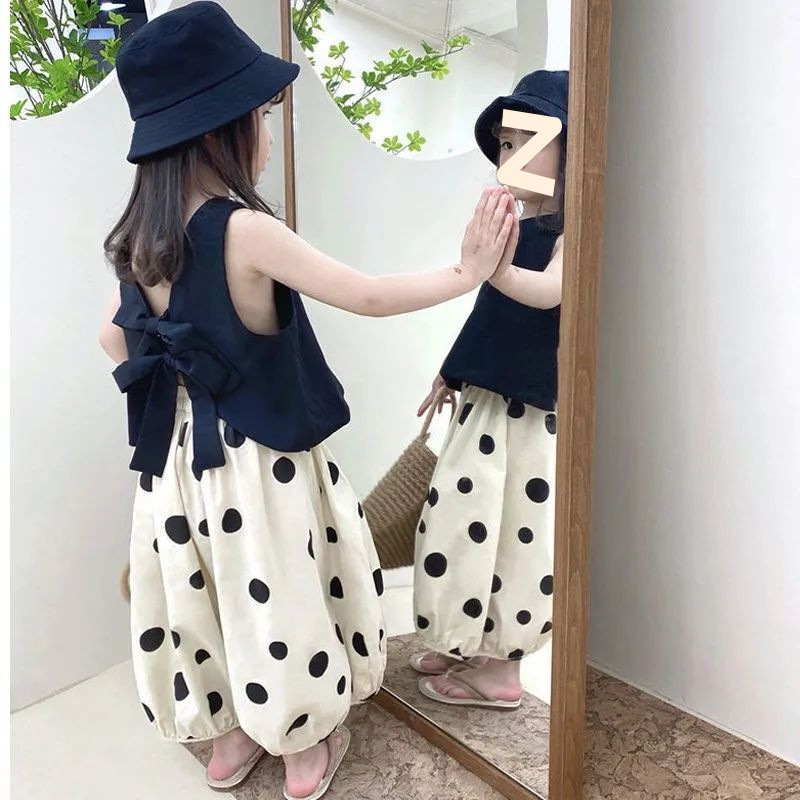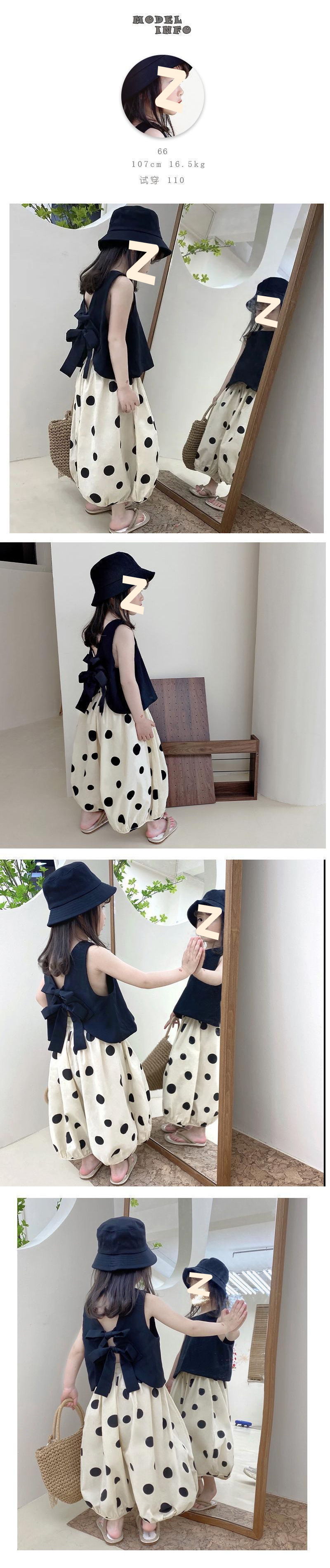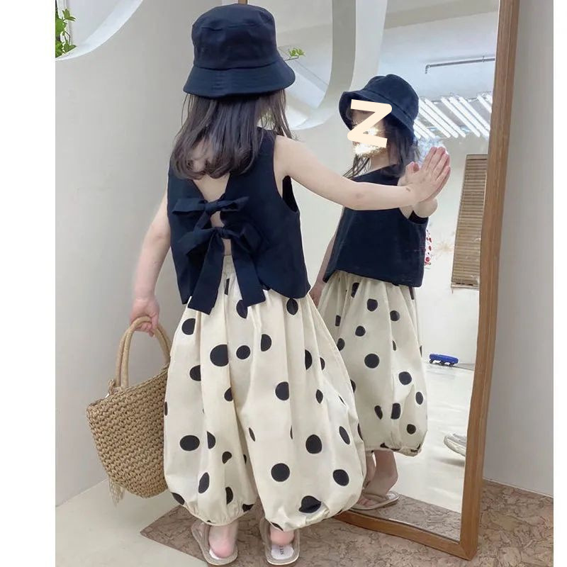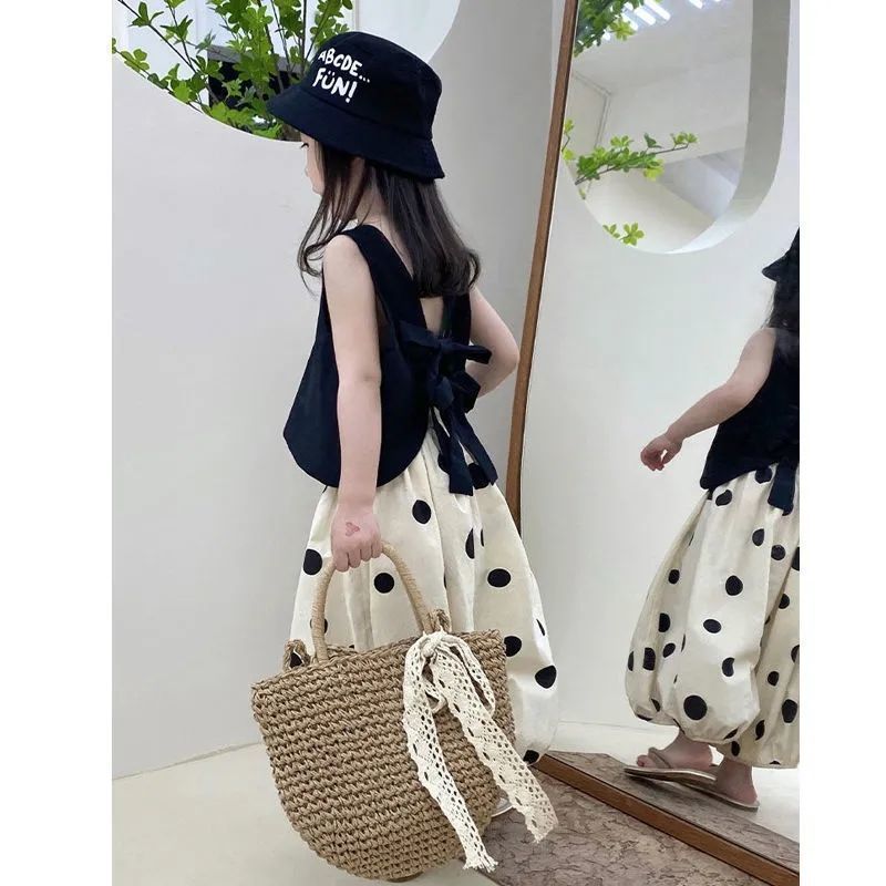 여아 정장 여름 옷 2025 루즈한 투피스 조끼 반팔 캐주얼 폴카 도트 바지 얇은 랜턴 와이드 팬츠 트렌디스토어 가기