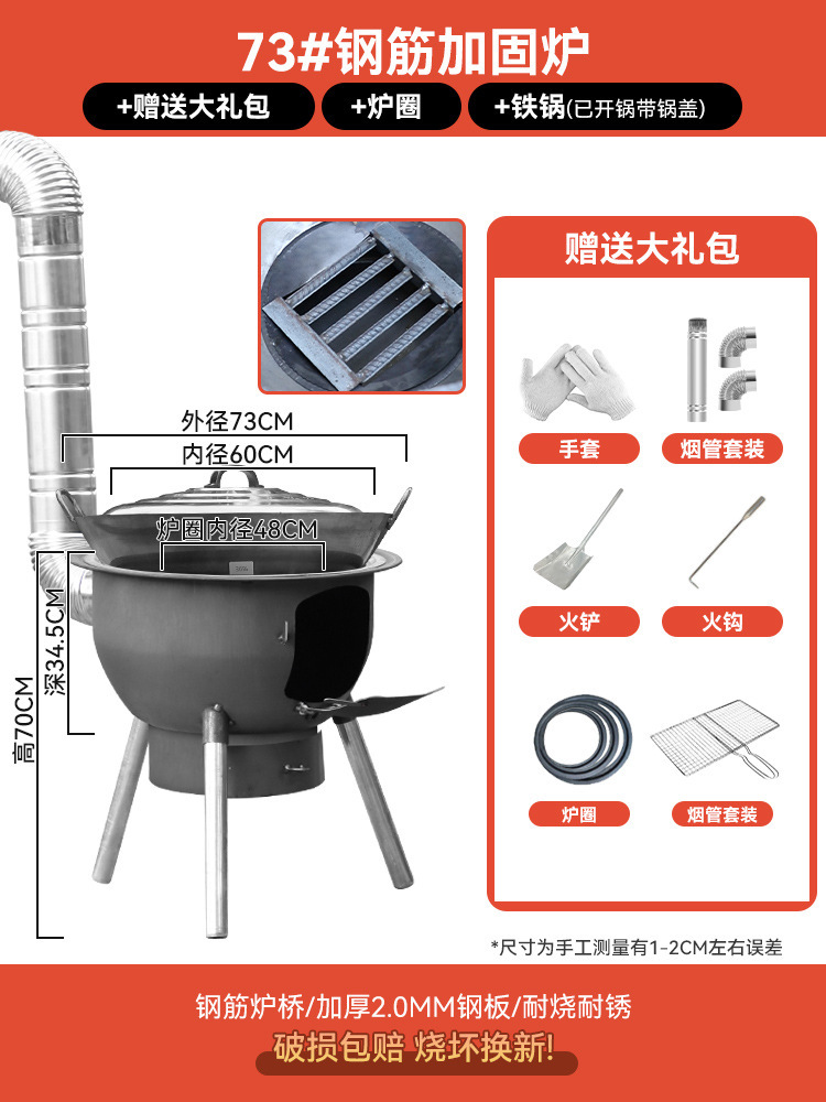 장작 난로, 농촌 장작 가정용 야외 난로, 간단한 대형 냄비 난로, 무연 철 냄비 난로, 장작 난로