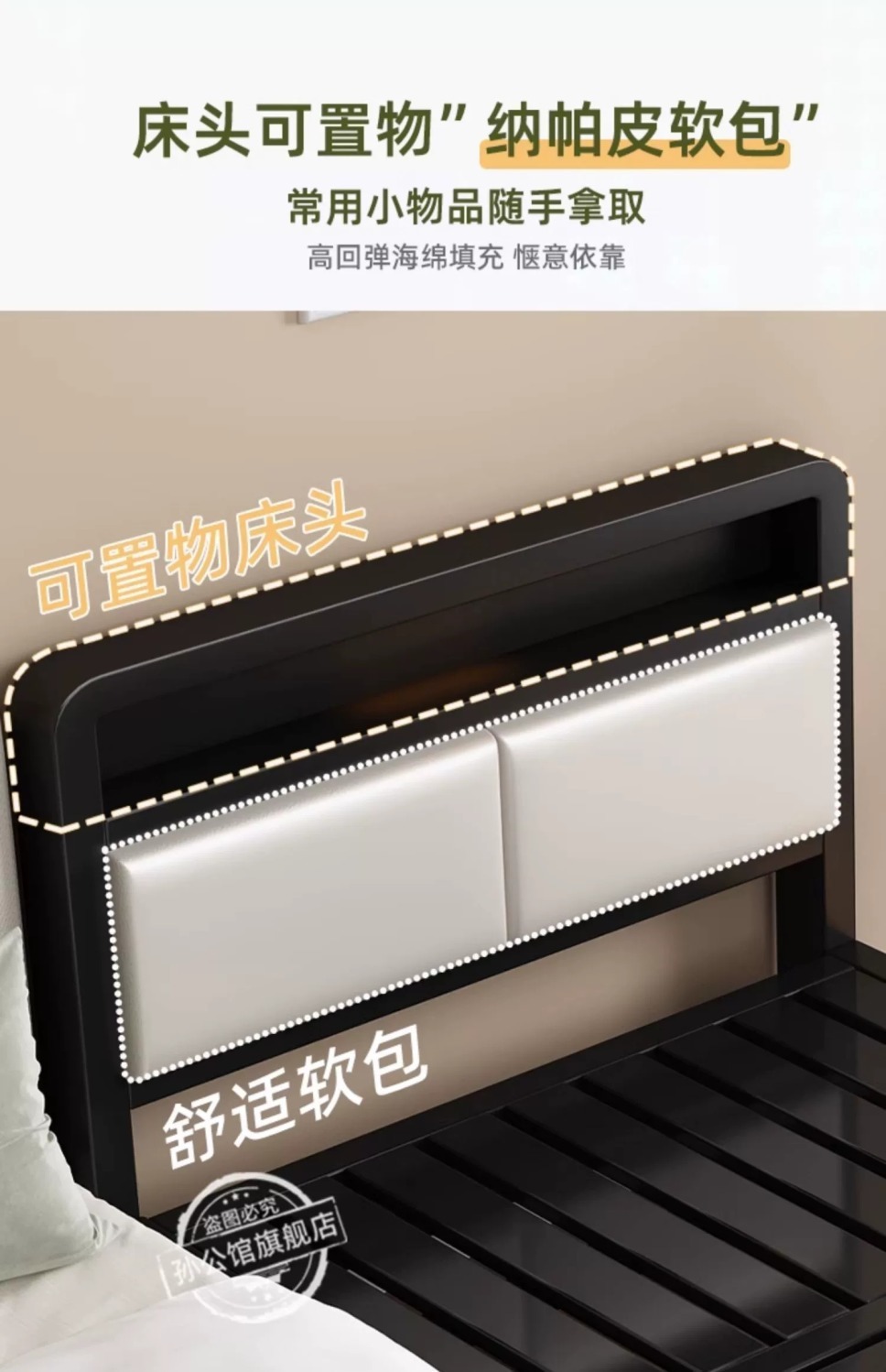 • [크림화이트] 싱글 침대헤드 모델 - 침대헤드 이중 수납공간 (고양이귀 모델)
